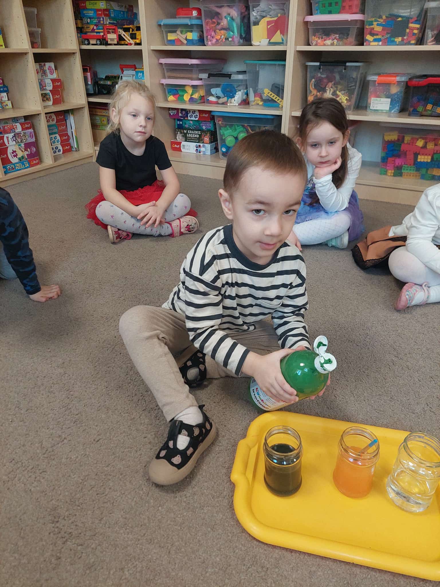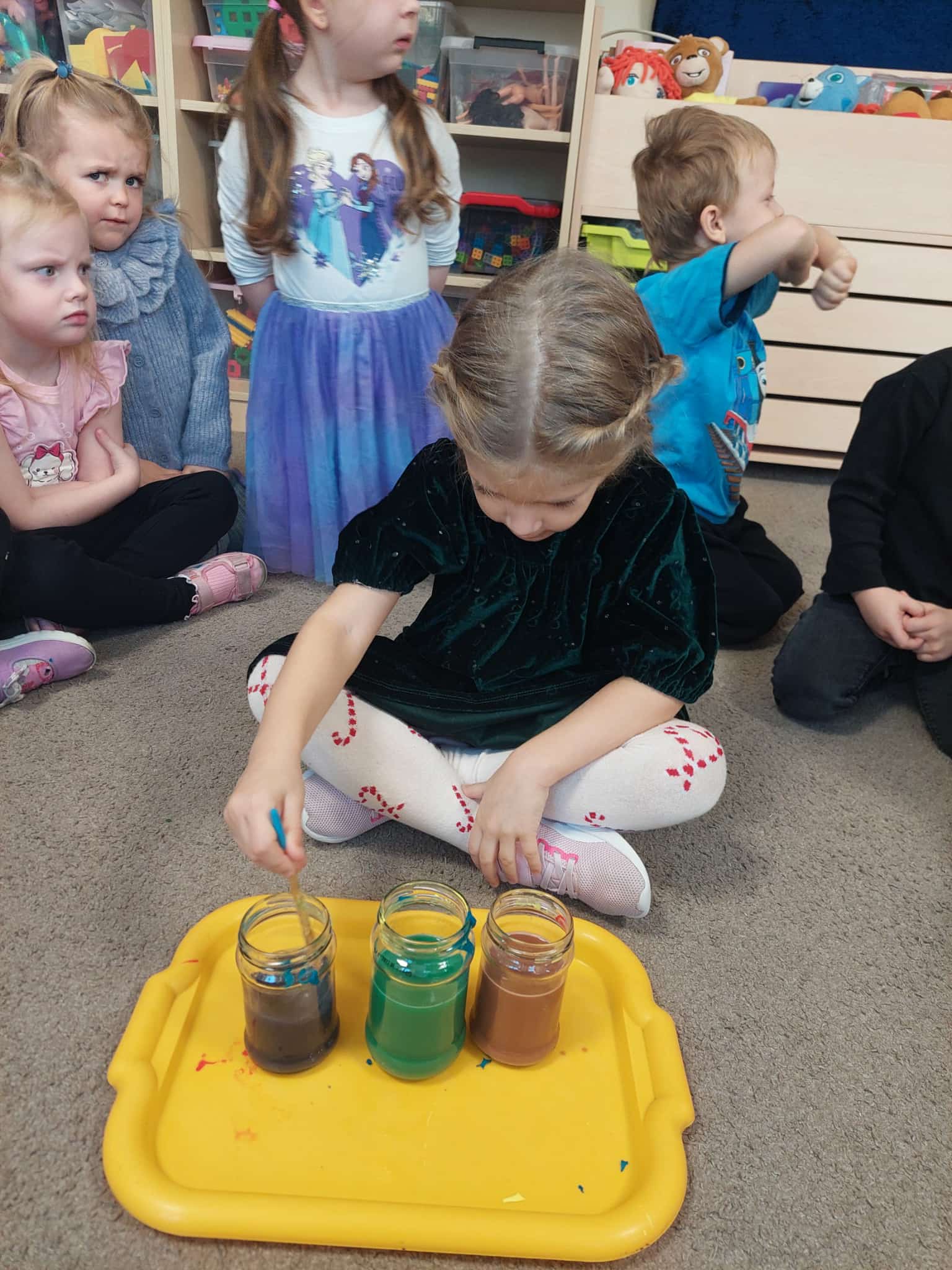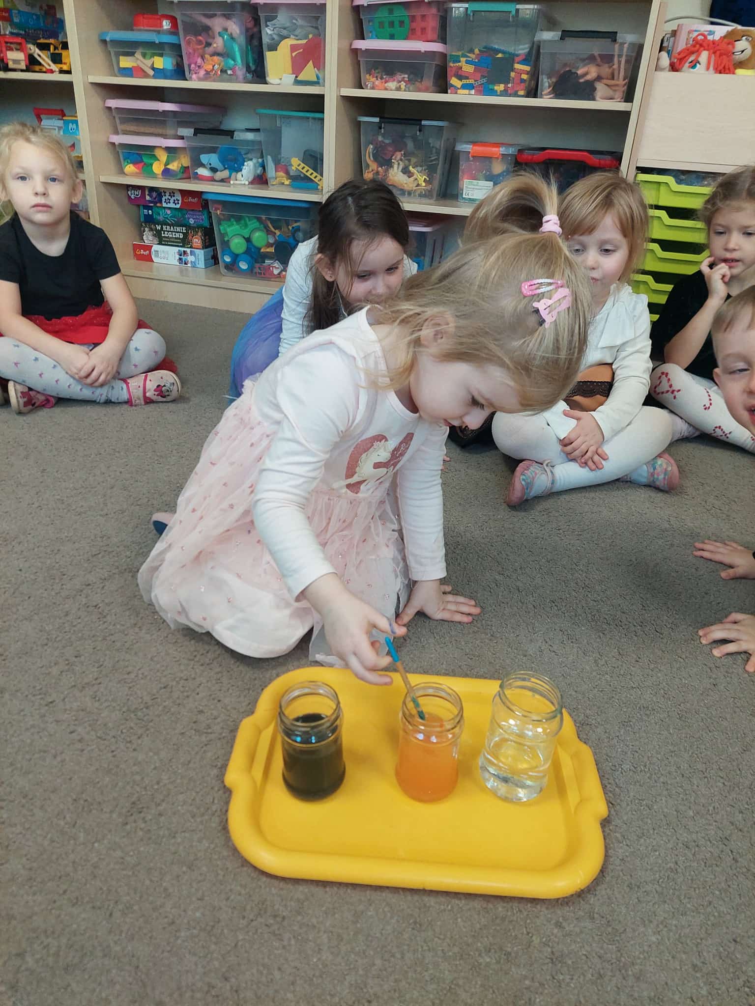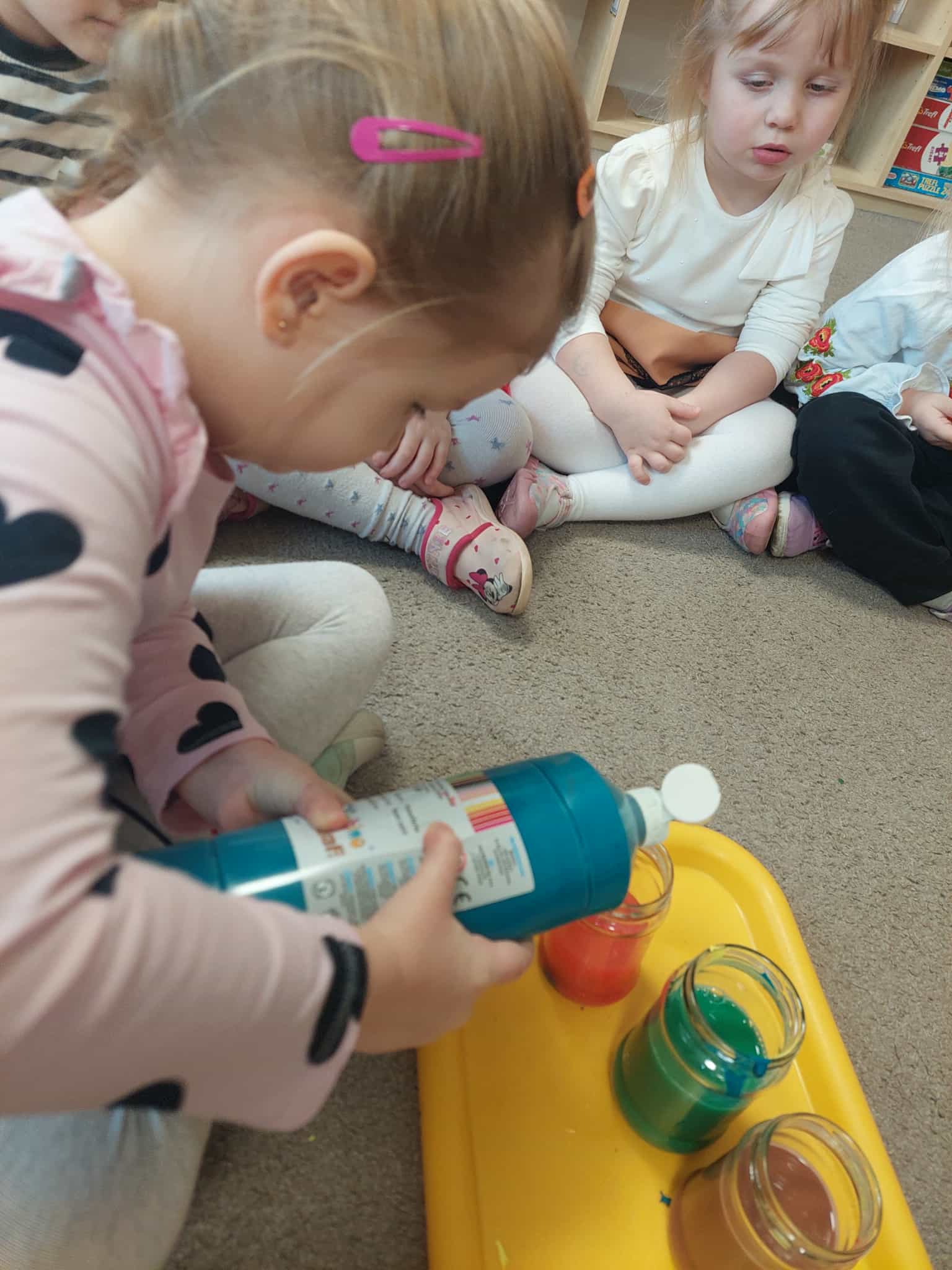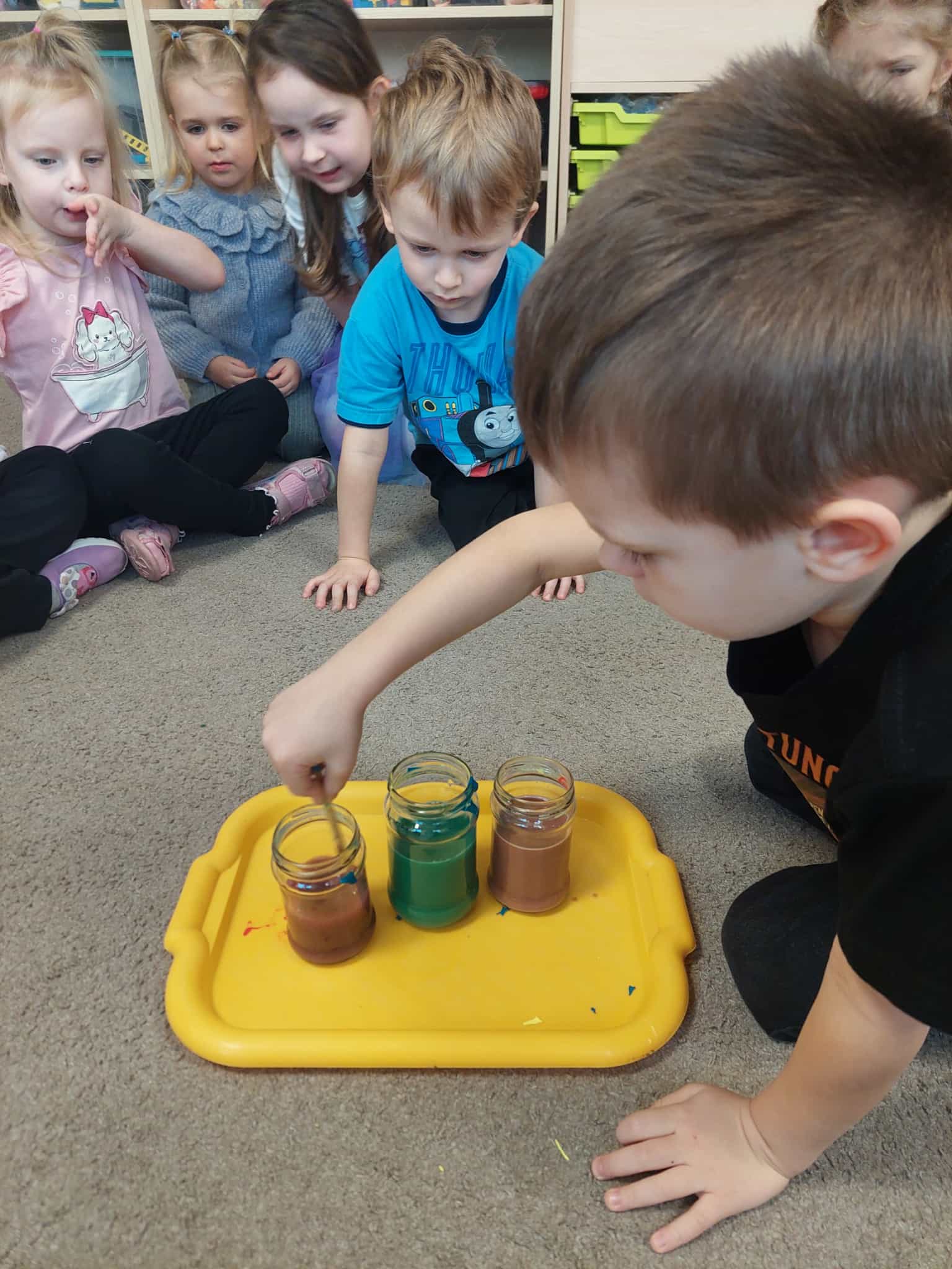 Dziś grupa Pszczółki obchodziła Andrzejki w sportowym stylu. Dzieci brały udział w wesołych zabawach ruchowych, a następnie wykonywały ciekawe doświadczenia związane z kolorami, które wzbudziły mnóstwo radości i zainteresowania.