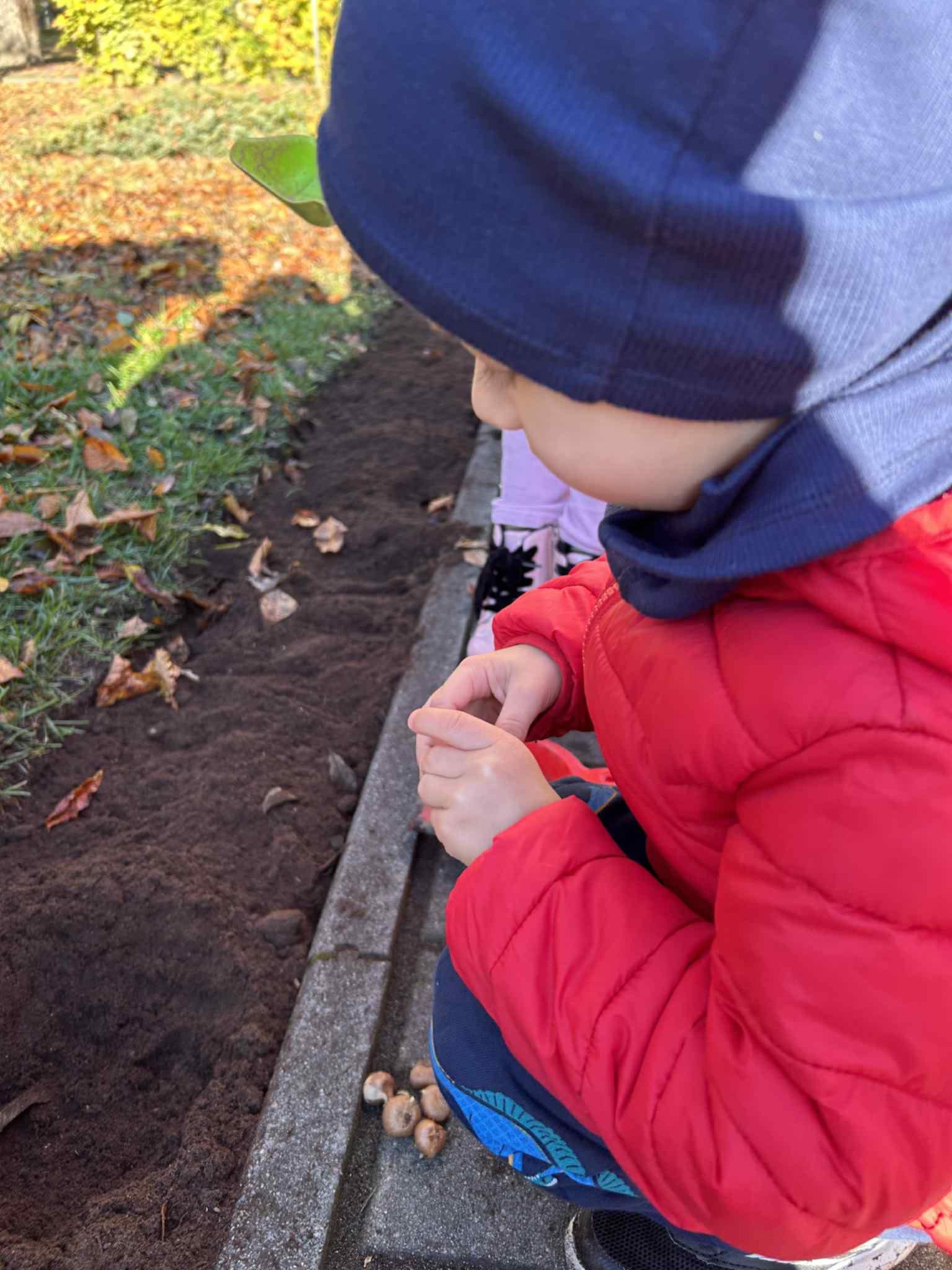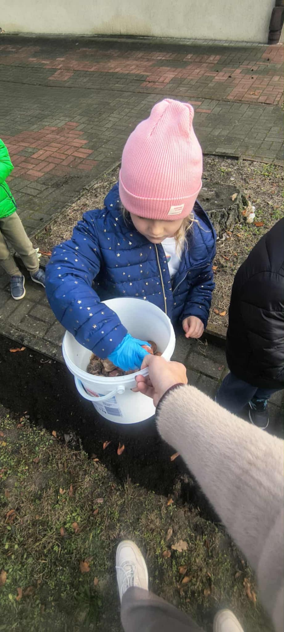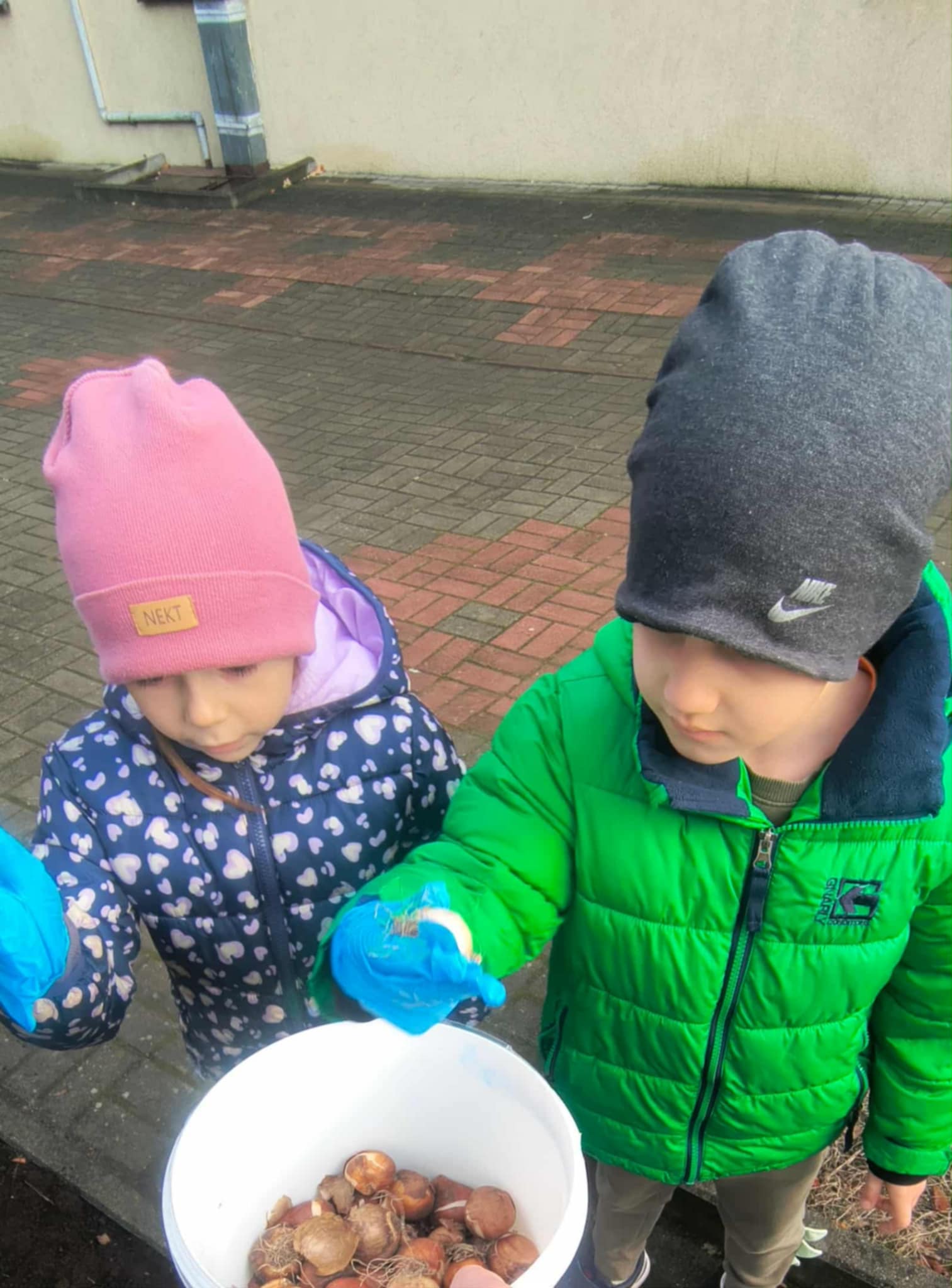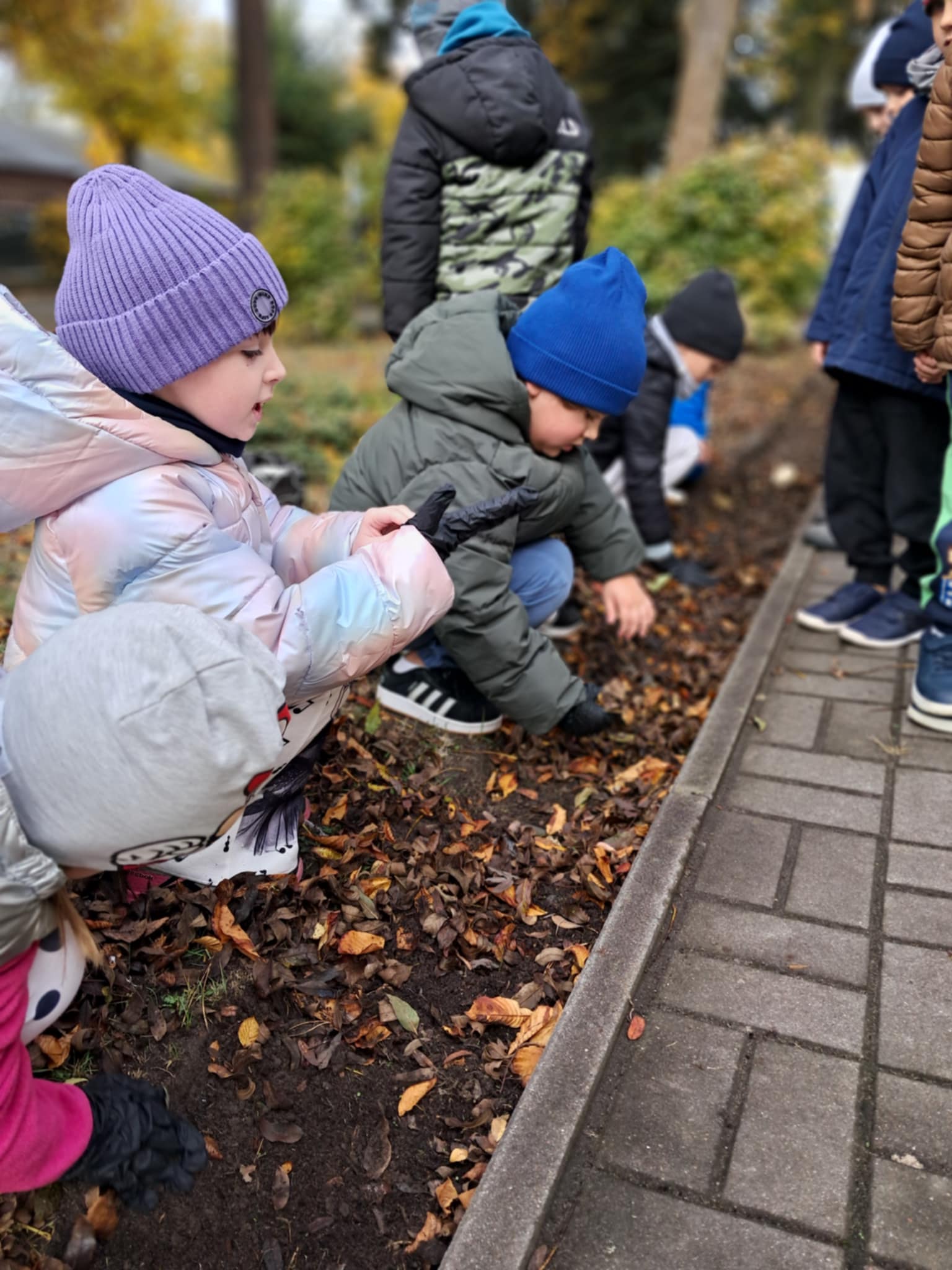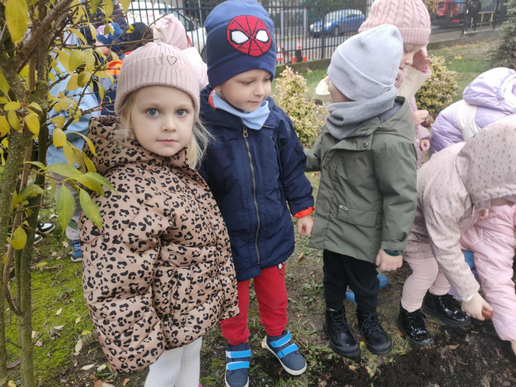 Jesienią przedszkolaki wzięły się do pracy — sadziły cebulki tulipanów, żonkili i krokusów. Teraz ogródek odpoczywa pod zimową kołderką, a wiosną zakwitnie kolorami! Dzieci już nie mogą się doczekać, by zobaczyć efekty swojej pracy.
