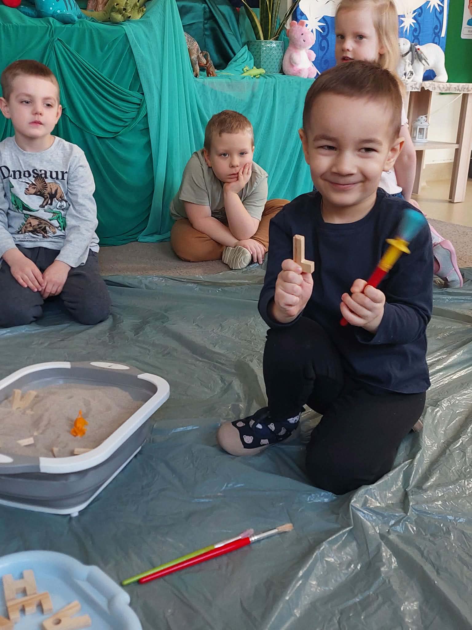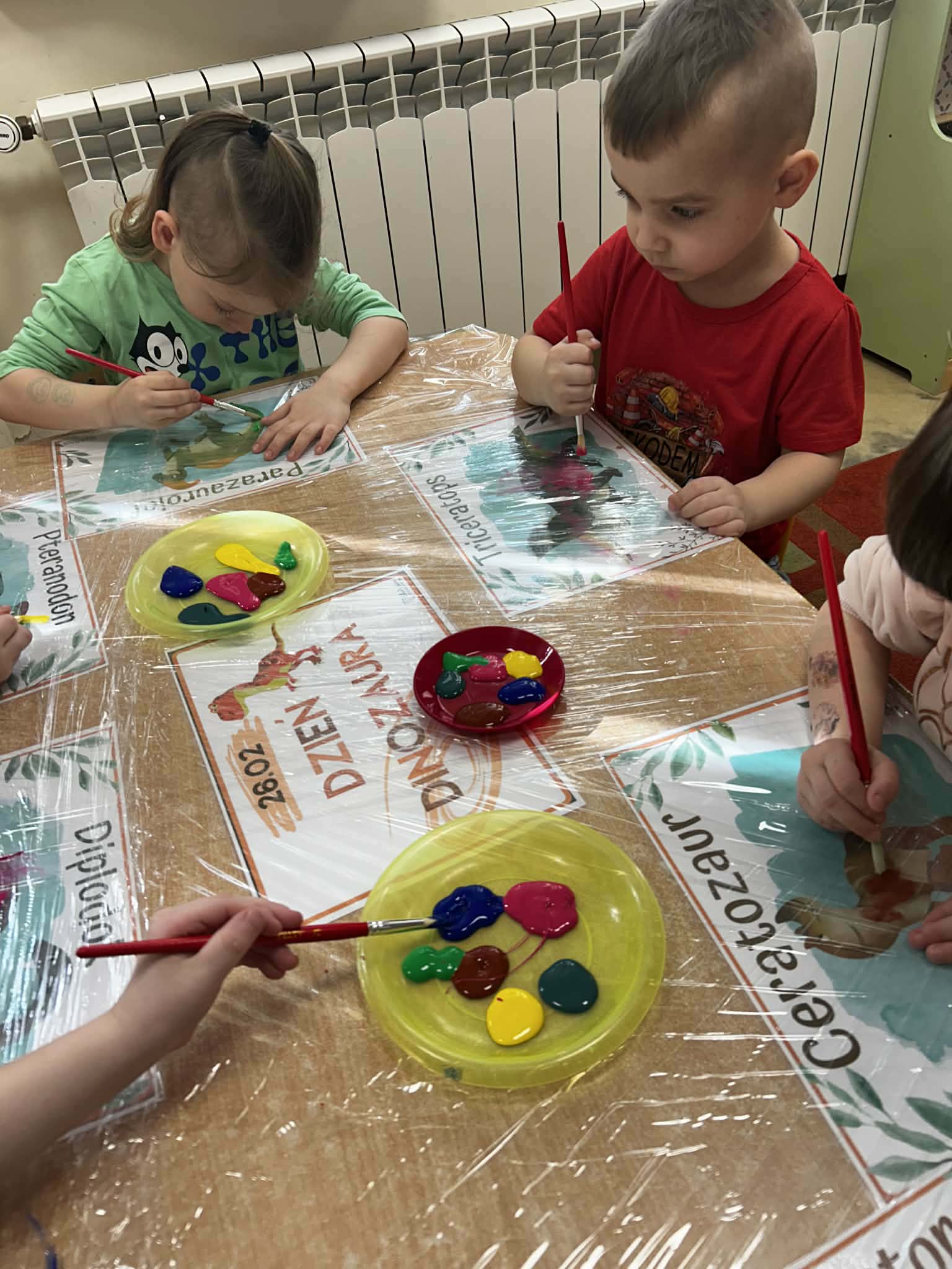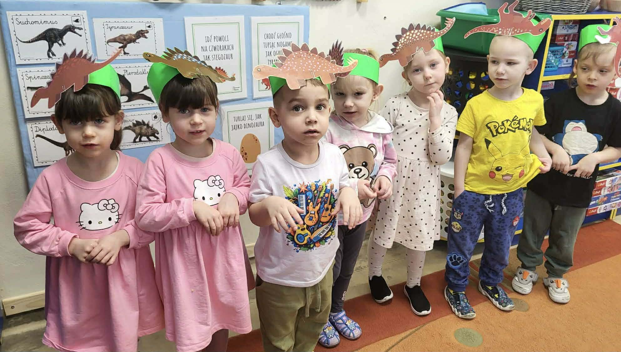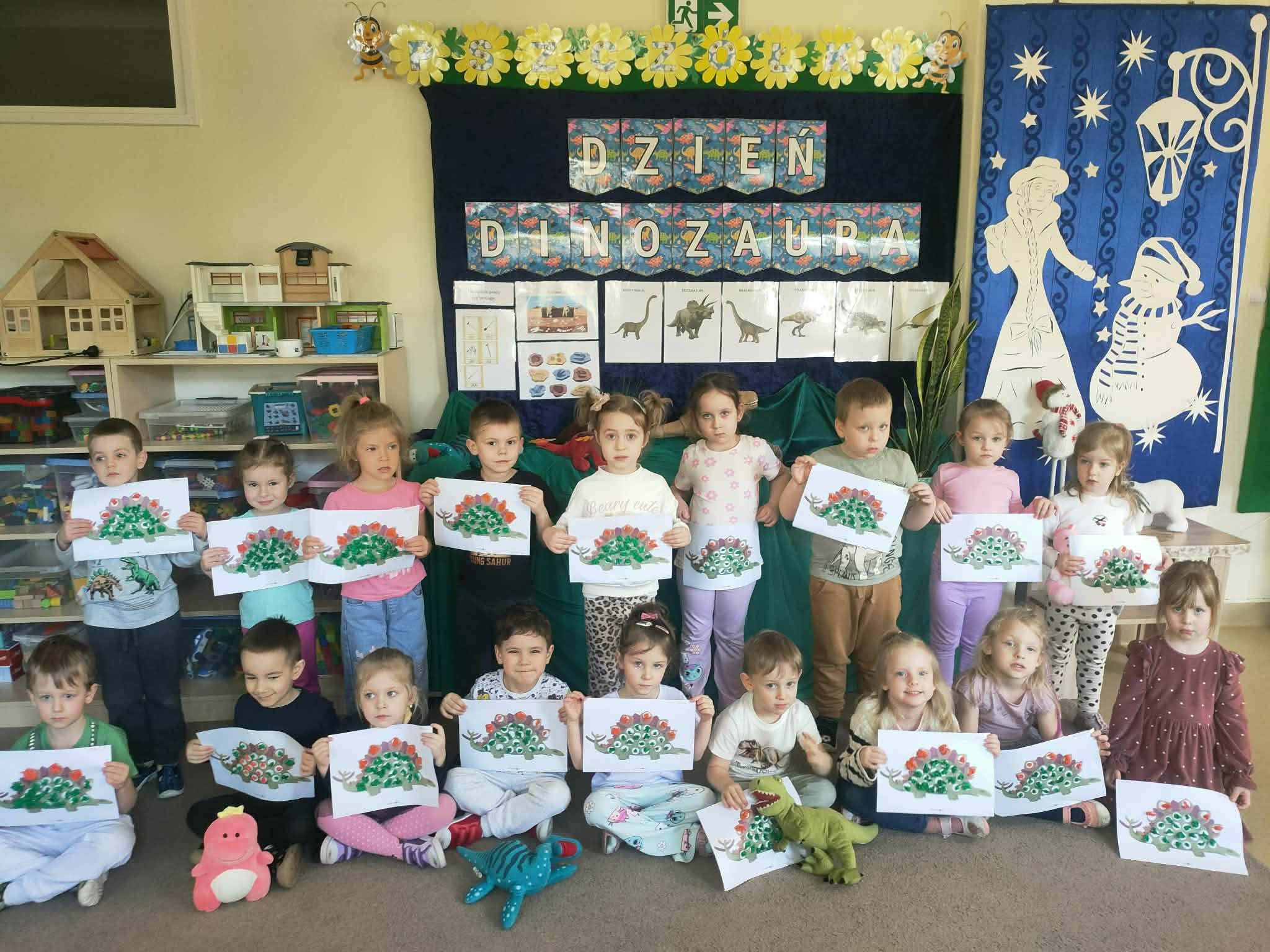 Dnia 26 lutego w naszym przedszkolu obchodziliśmy Dzień Dinozaura. Tego dnia dzieci przeniosły się w niezwykły, prehistoryczny świat dinozaurów. Poznaliśmy ciekawostki o takich gatunkach jak Tyrannosaurus rex, Triceratops oraz Stegosaurus. Dzieci dowiedziały się, kim jest paleontolog i jak powstają skamieniałości. Wspólnie oglądaliśmy ilustracje dinozaurów, bawiliśmy się w „wykopaliska”, a także wykonywaliśmy prace plastyczne – kolorowaliśmy i wycinaliśmy dinozaury, tworzylismy szkielety z makaronów. Nie zabrakło zabaw ruchowych, tańców oraz quizów sprawdzających wiedzę o prehistorycznych gadach. Dzieci z wielkim zaangażowaniem uczestniczyły w zajęciach i chętnie dzieliły się swoimi ciekawostkami.