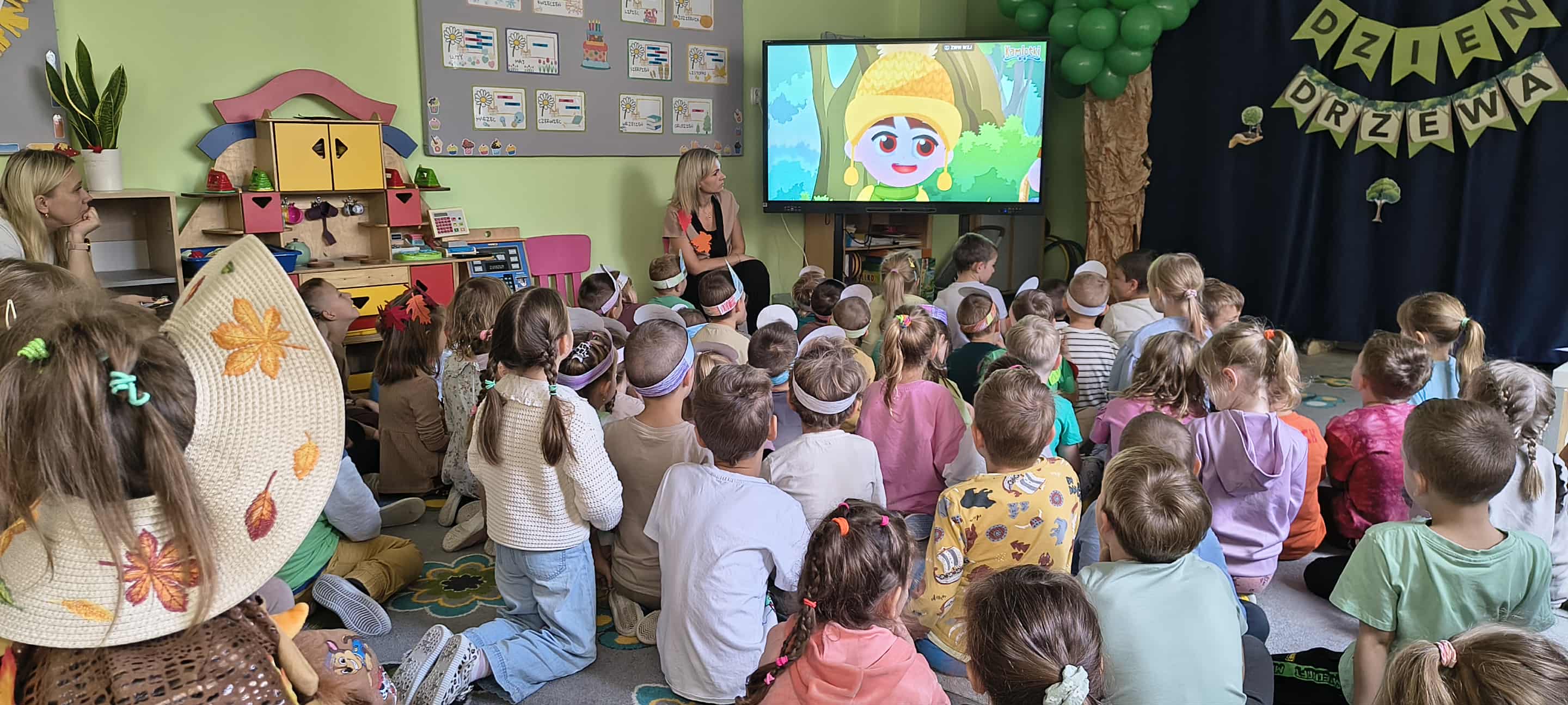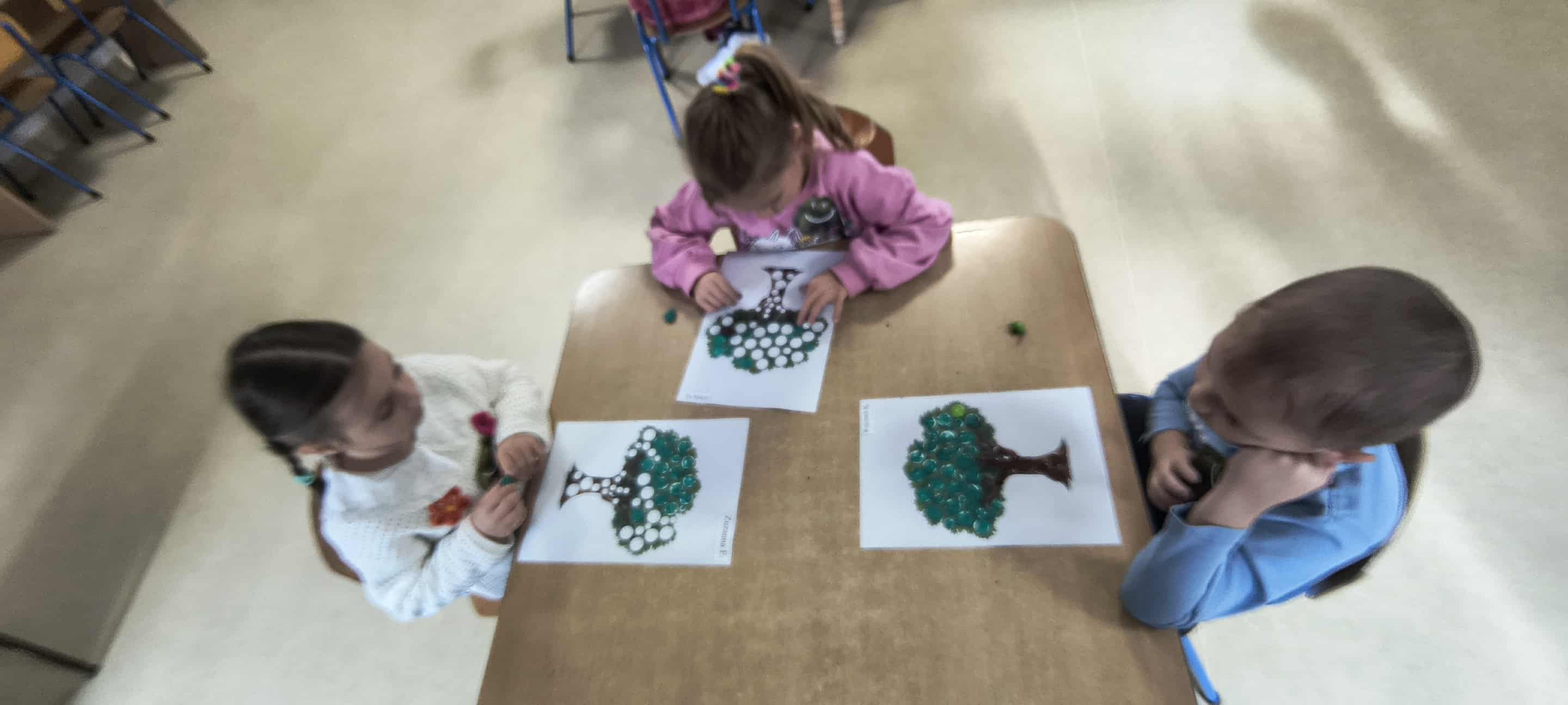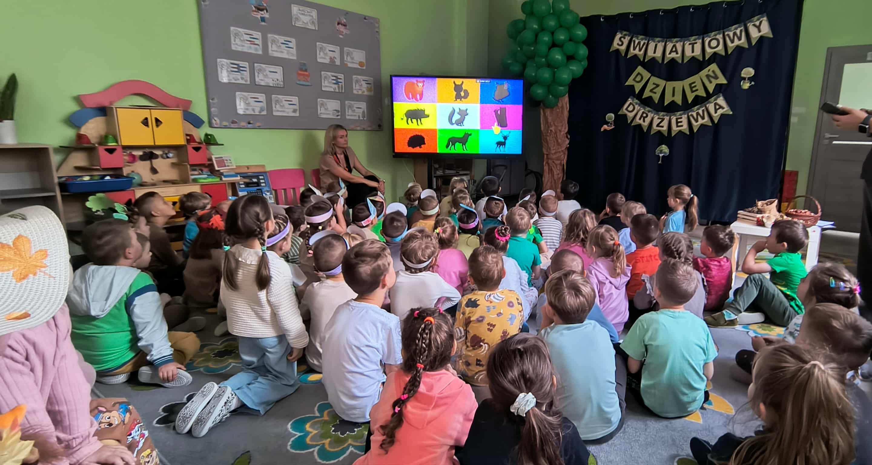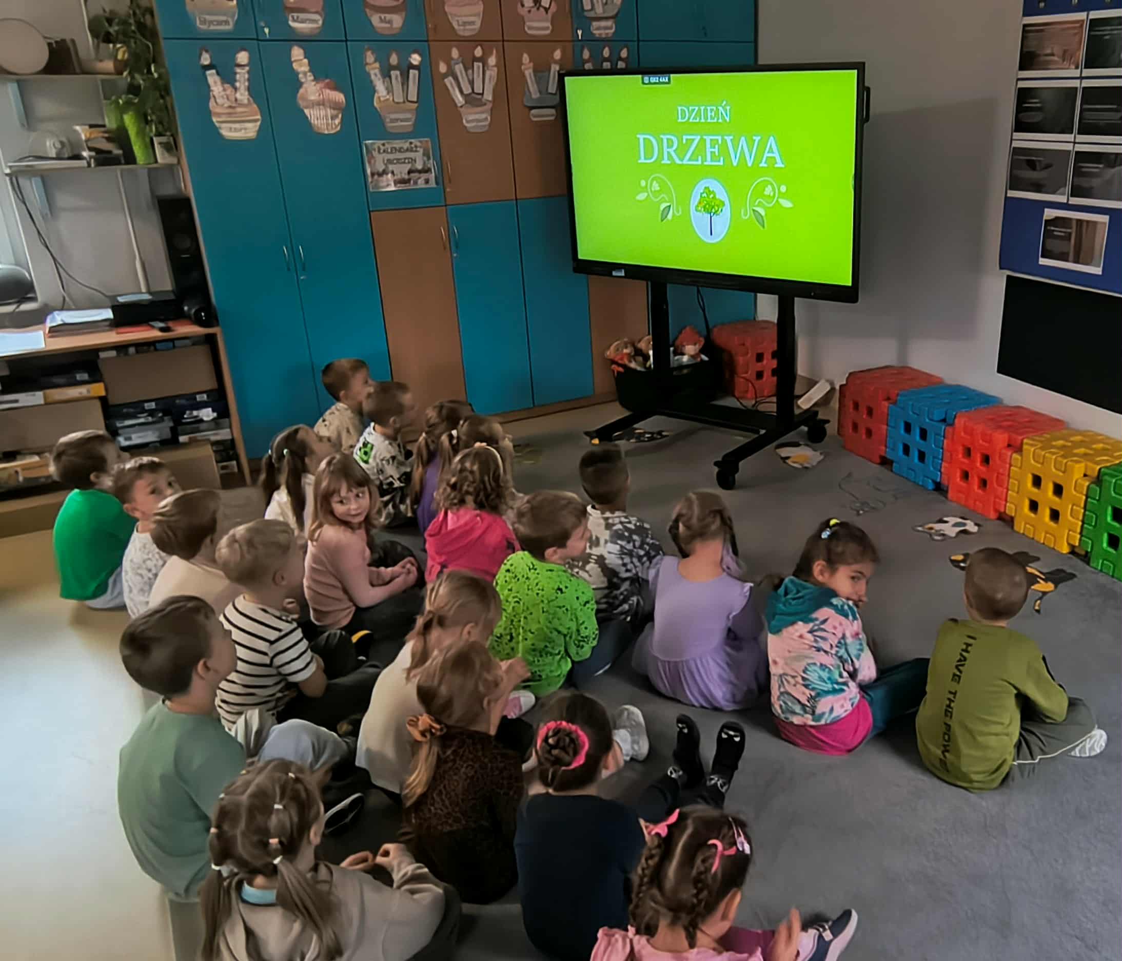 Dzieci z wielkim zainteresowaniem uczestniczyły w rozmowach o tym, dlaczego warto sadzić i chronić drzewa, a także poznały różne ich gatunki. Przedszkolaki z radością rozwiązywały zagadki przyrodnicze, oglądały film edukacyjny.