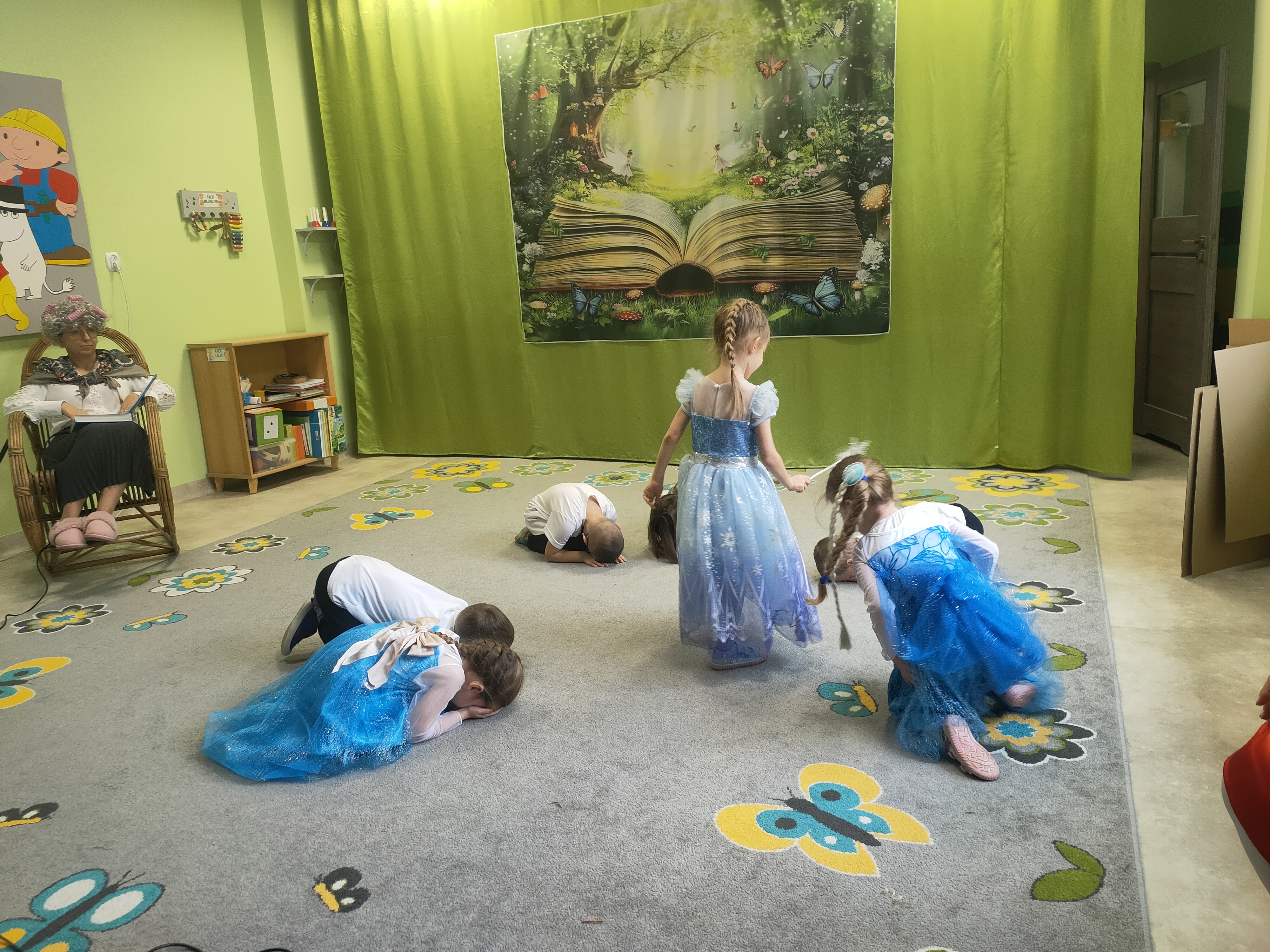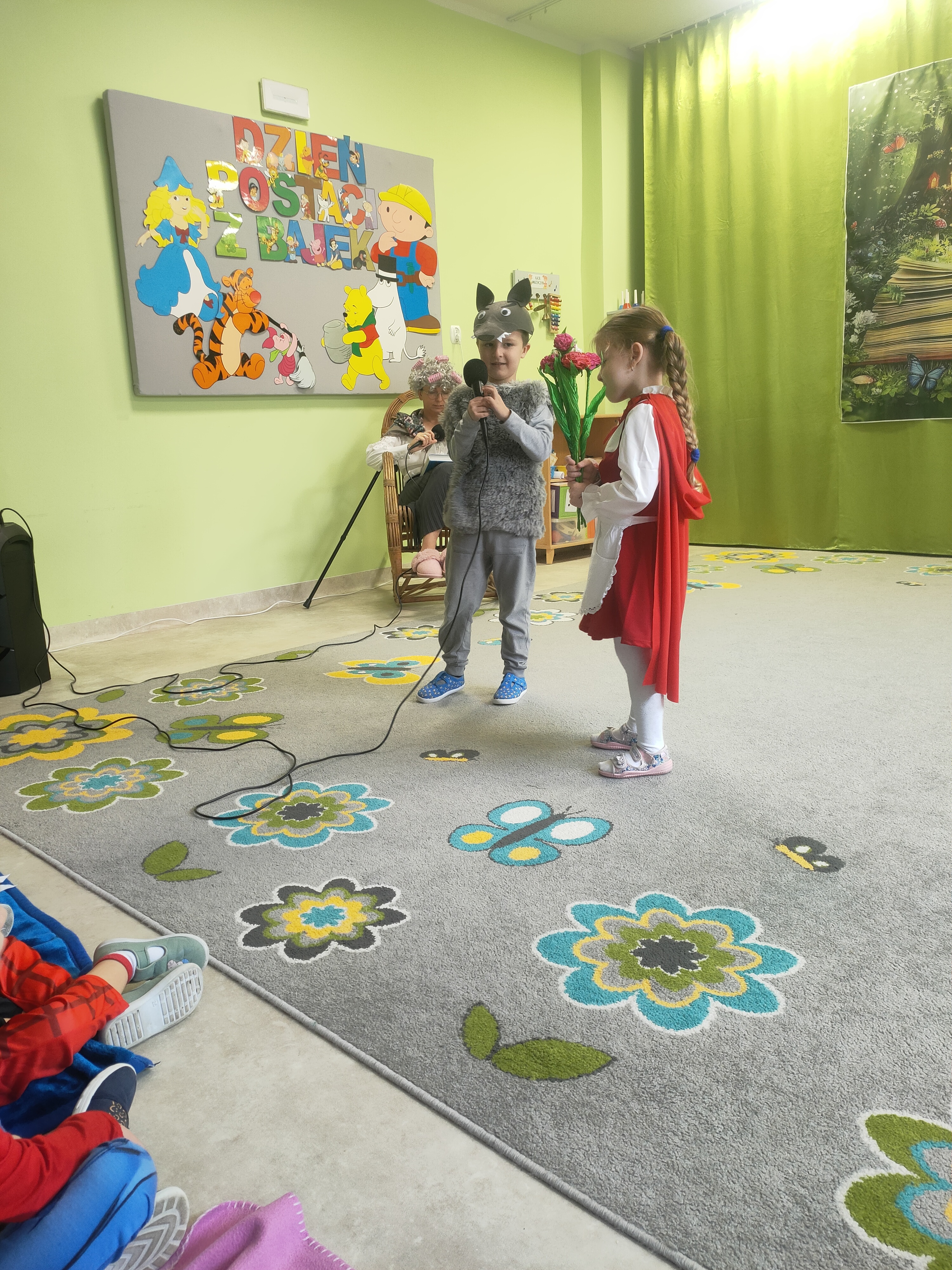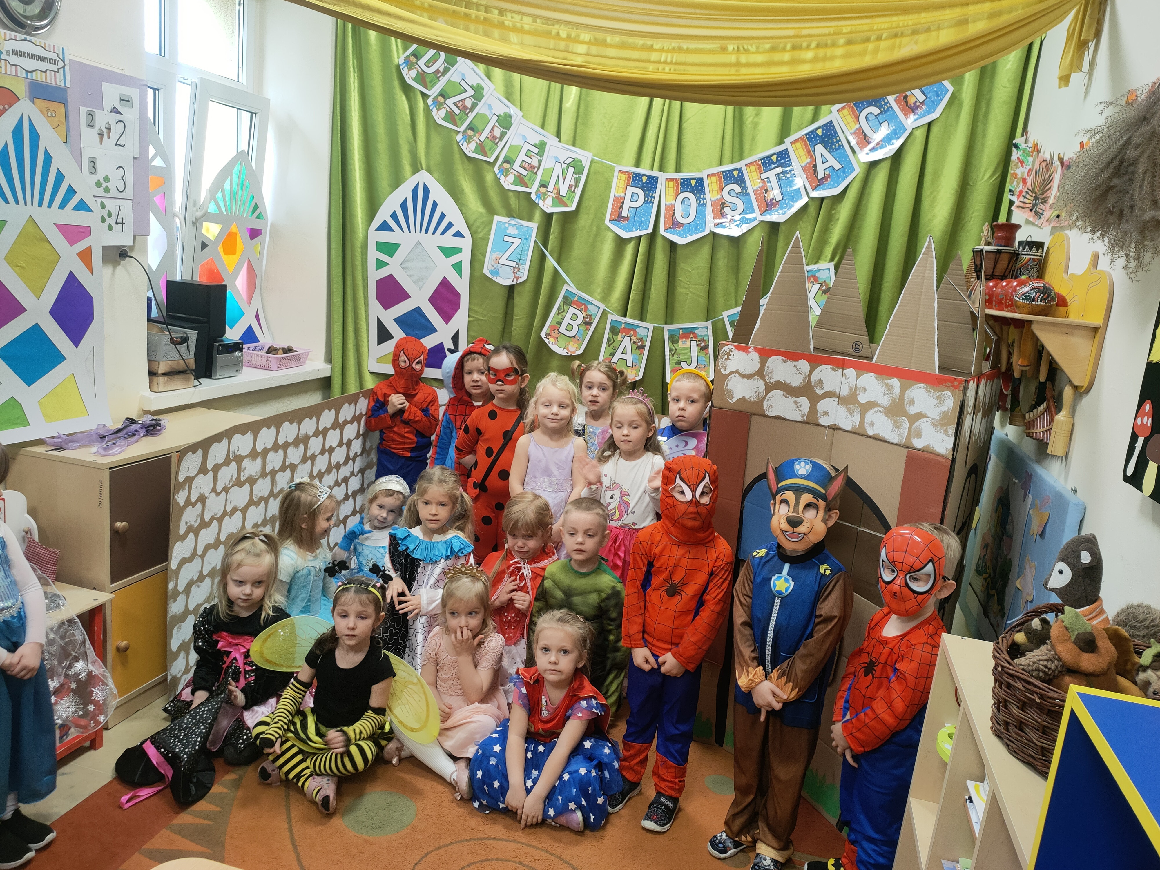 Dziś świętowaliśmy Międzynarodowy Dzień Postaci z Bajek! Dzięki uprzejmości grupy Stokrotki, która zaprosiła nas do siebie, mogliśmy przenieść się do magicznego świata bajek. Dzieci miały okazję przypomnieć sobie najbardziej znane i lubiane bajkowe opowieści oraz ich bohaterów.