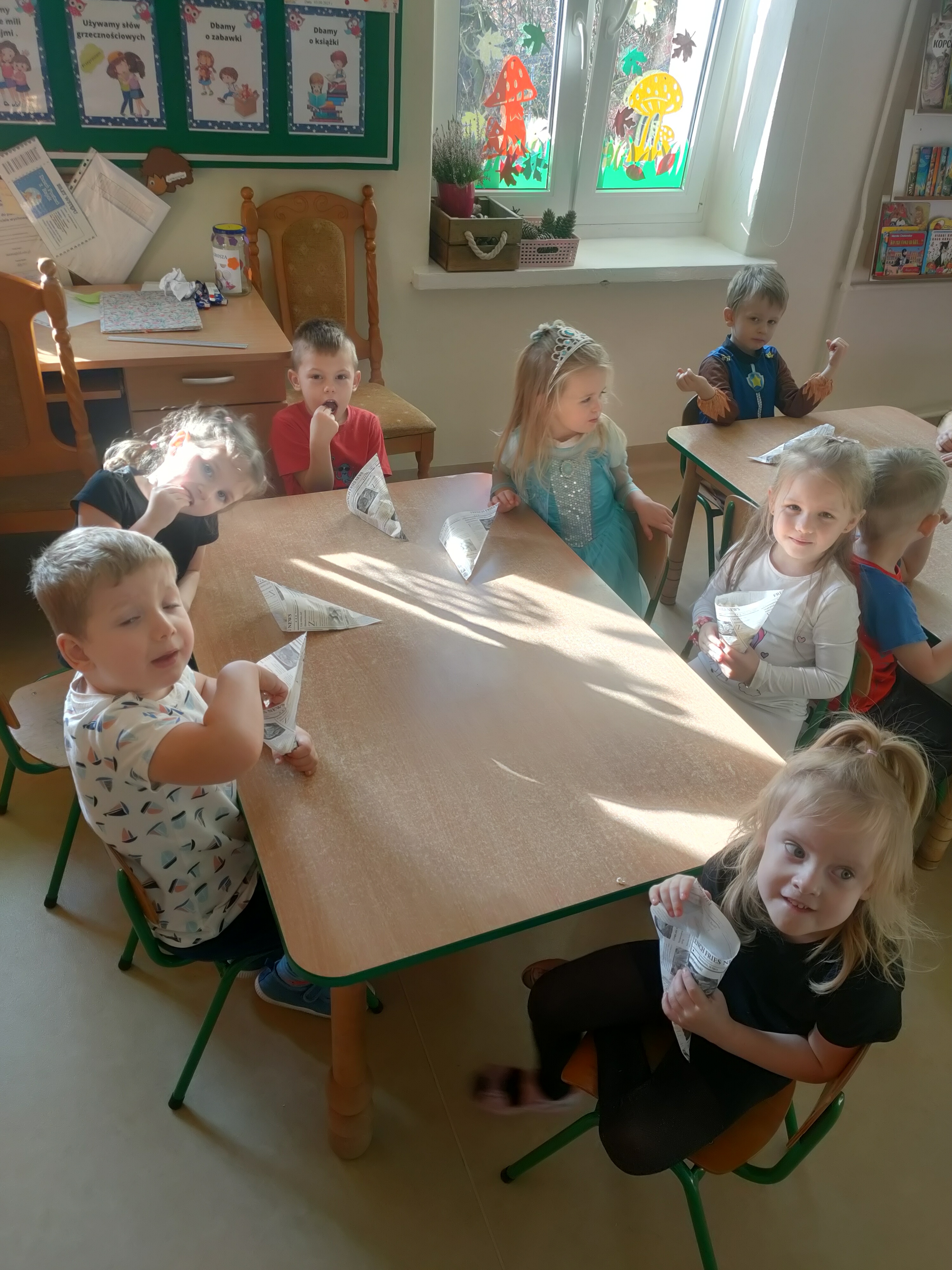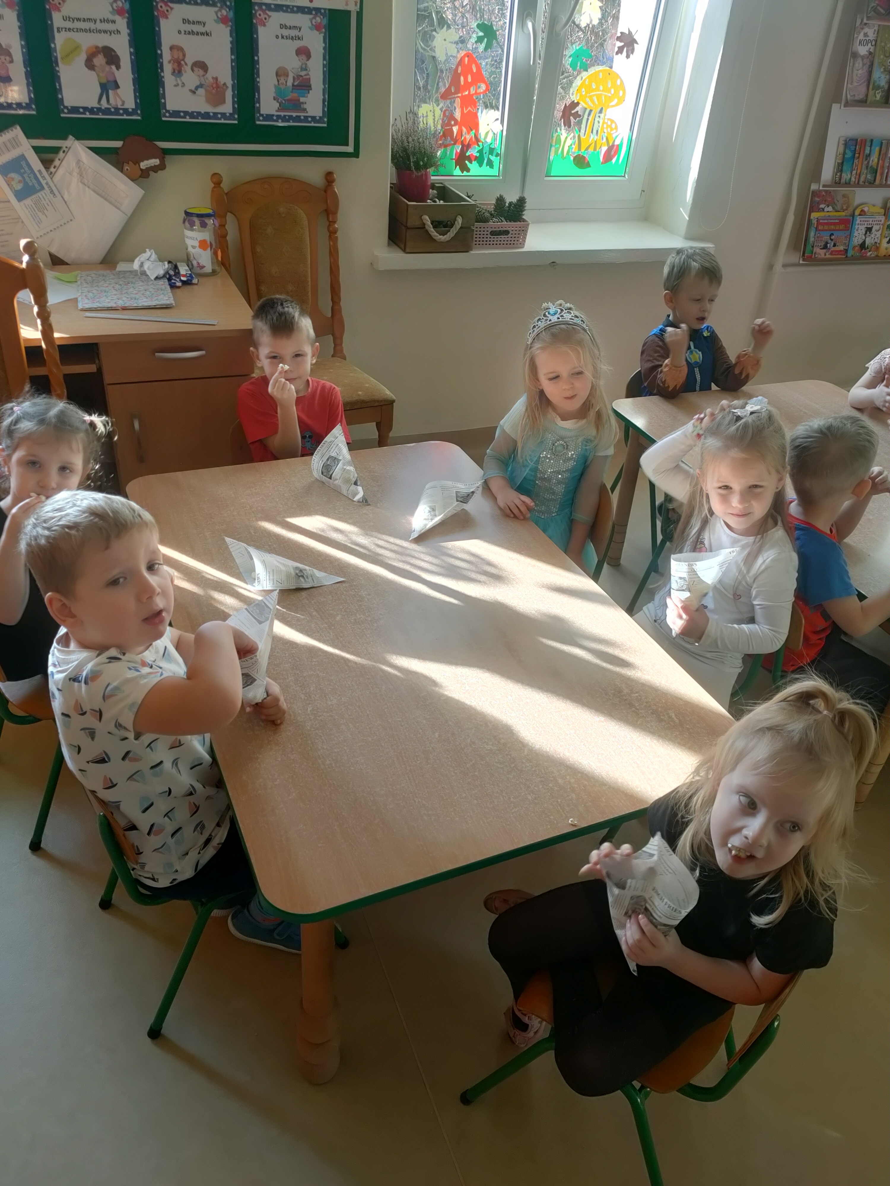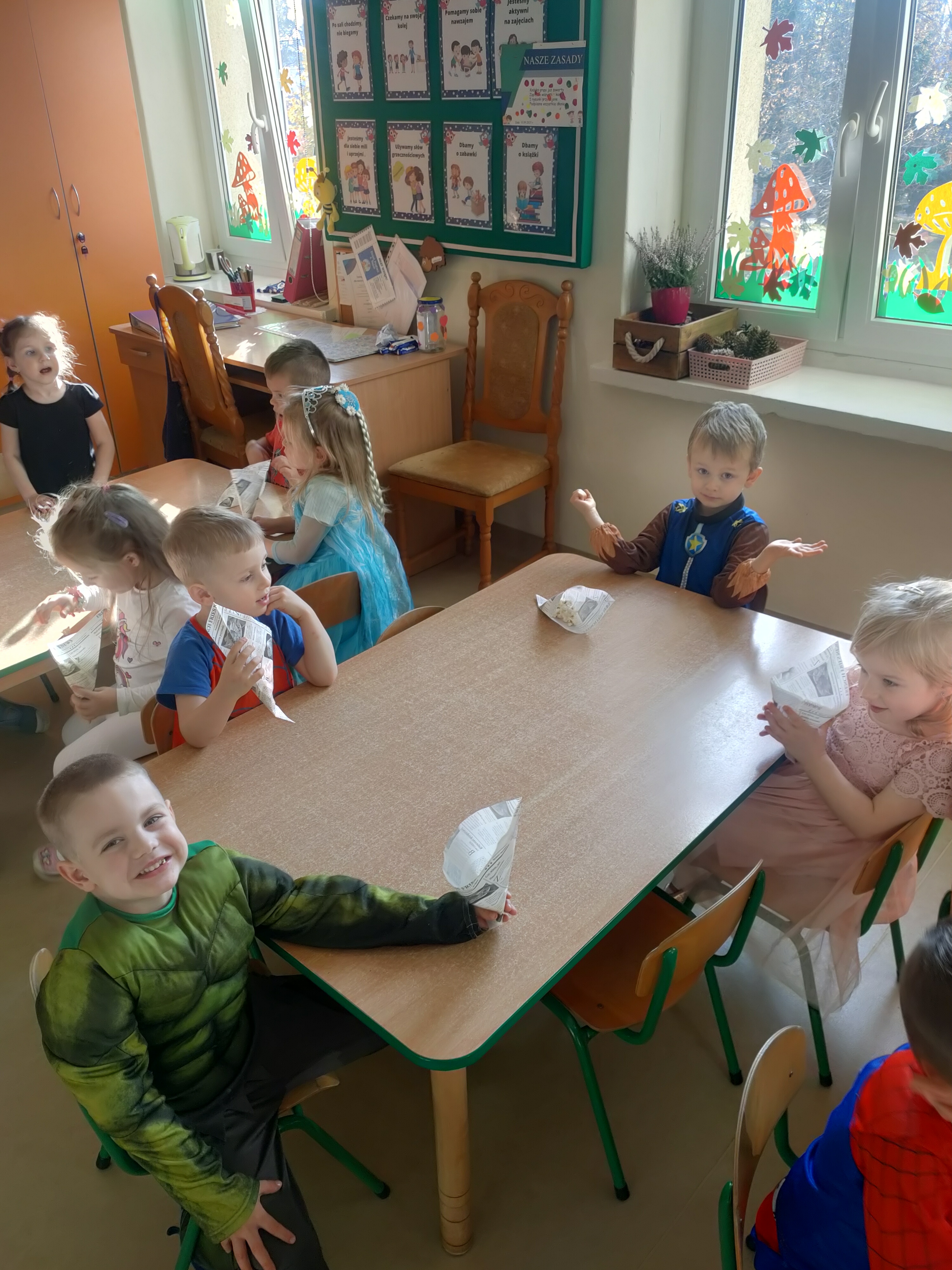 Dziś świętowaliśmy Międzynarodowy Dzień Postaci z Bajek! Dzięki uprzejmości grupy Stokrotki, która zaprosiła nas do siebie, mogliśmy przenieść się do magicznego świata bajek. Dzieci miały okazję przypomnieć sobie najbardziej znane i lubiane bajkowe opowieści oraz ich bohaterów.