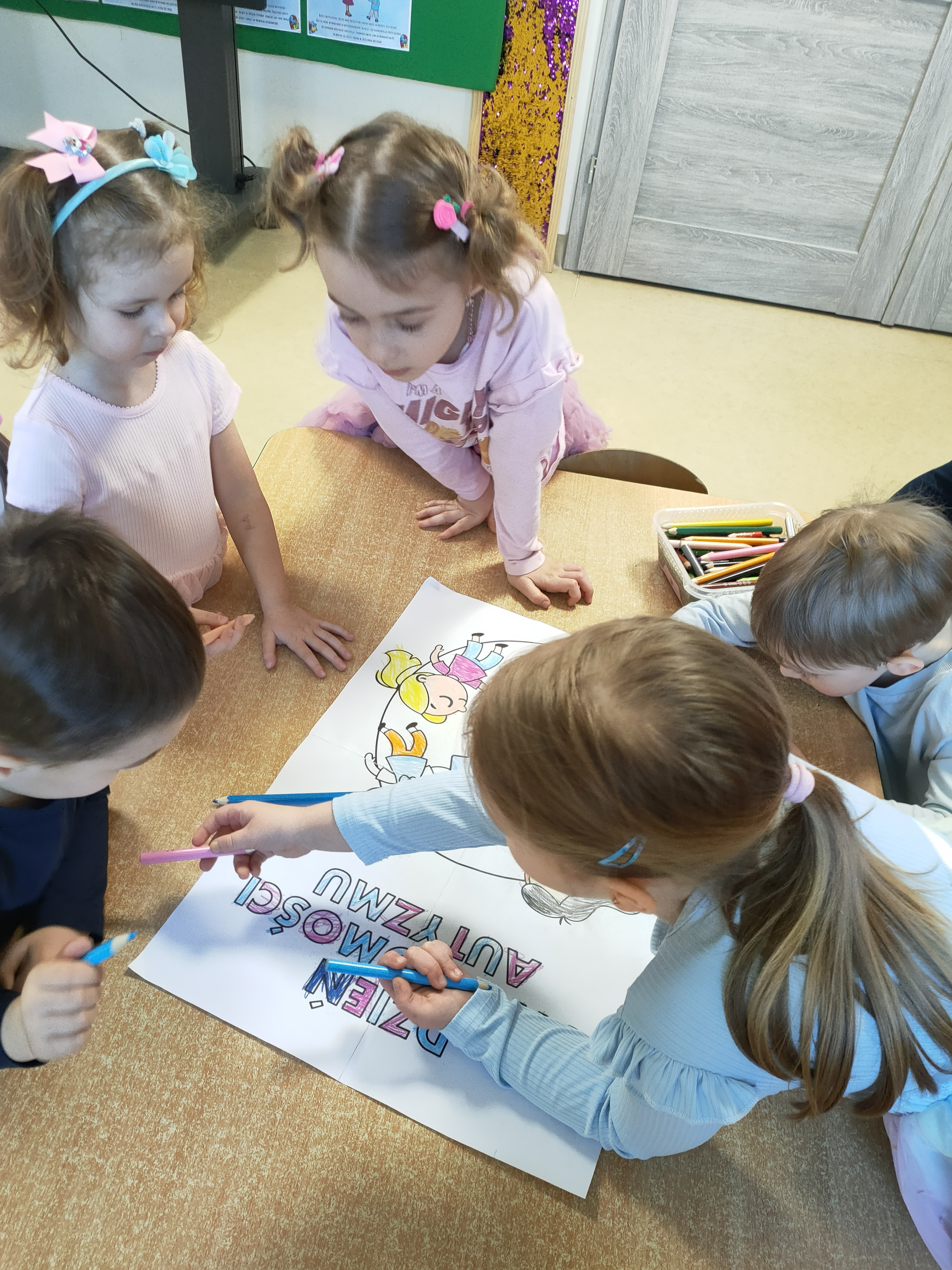 Przedszkolaki dowiedziały się, że każdy z nas jest wyjątkowy i może w różny sposób postrzegać świat. Rozmawialiśmy o tym, jak możemy wspierać kolegów i koleżanki oraz jak ważna jest empatia i wzajemny szacunek.
