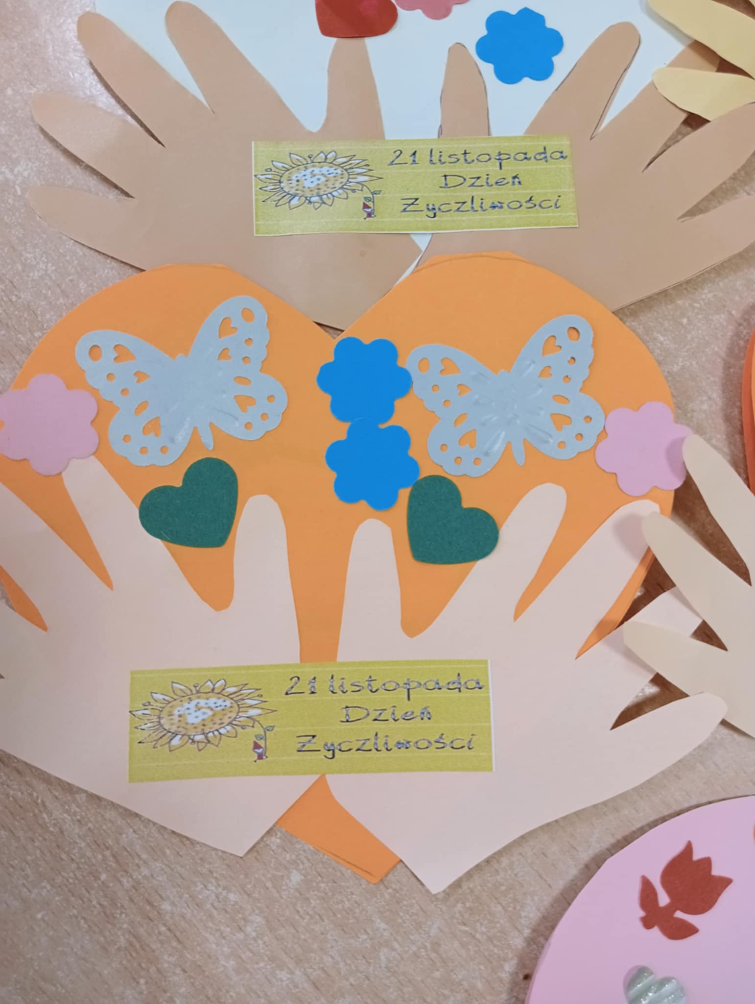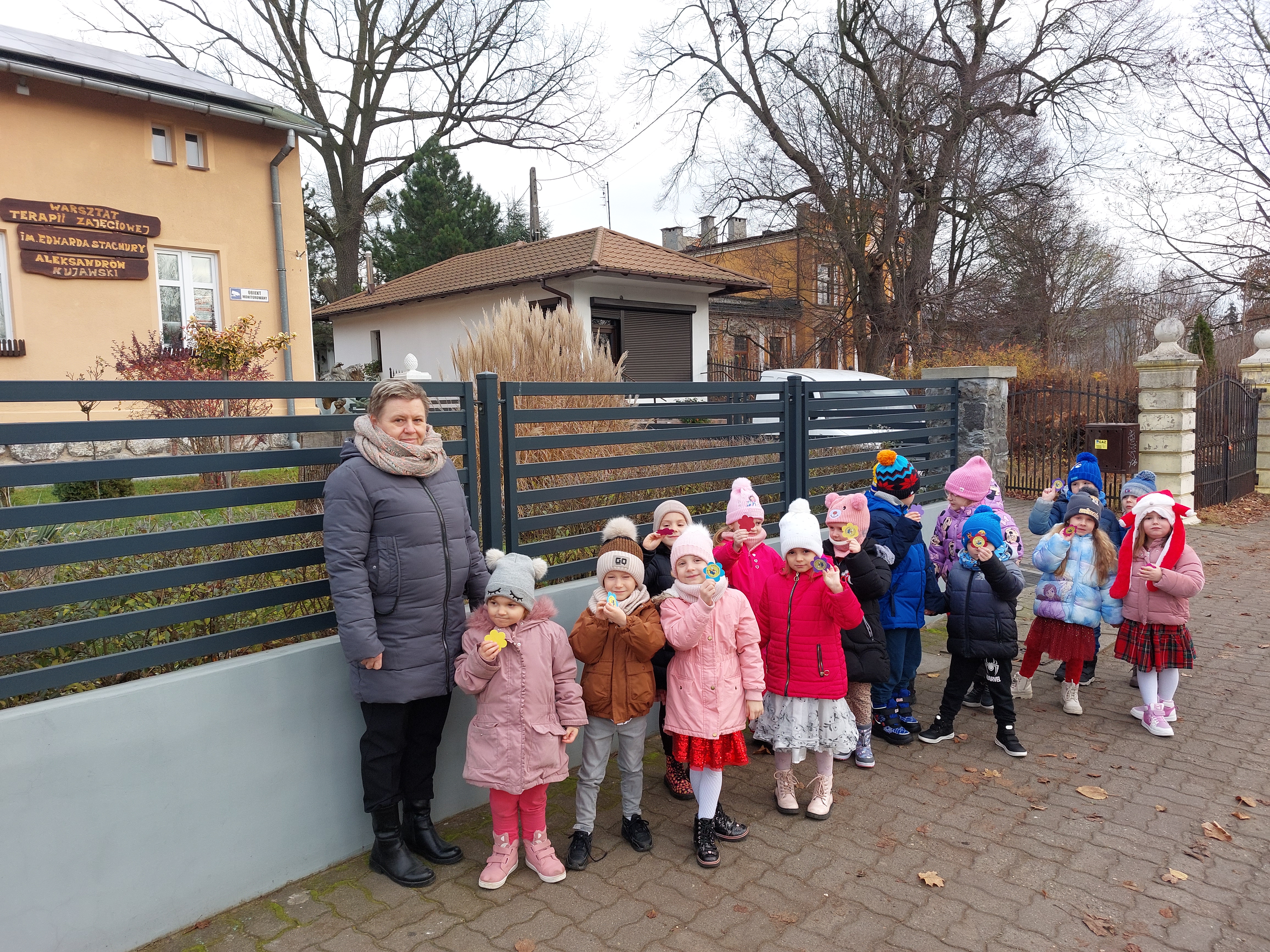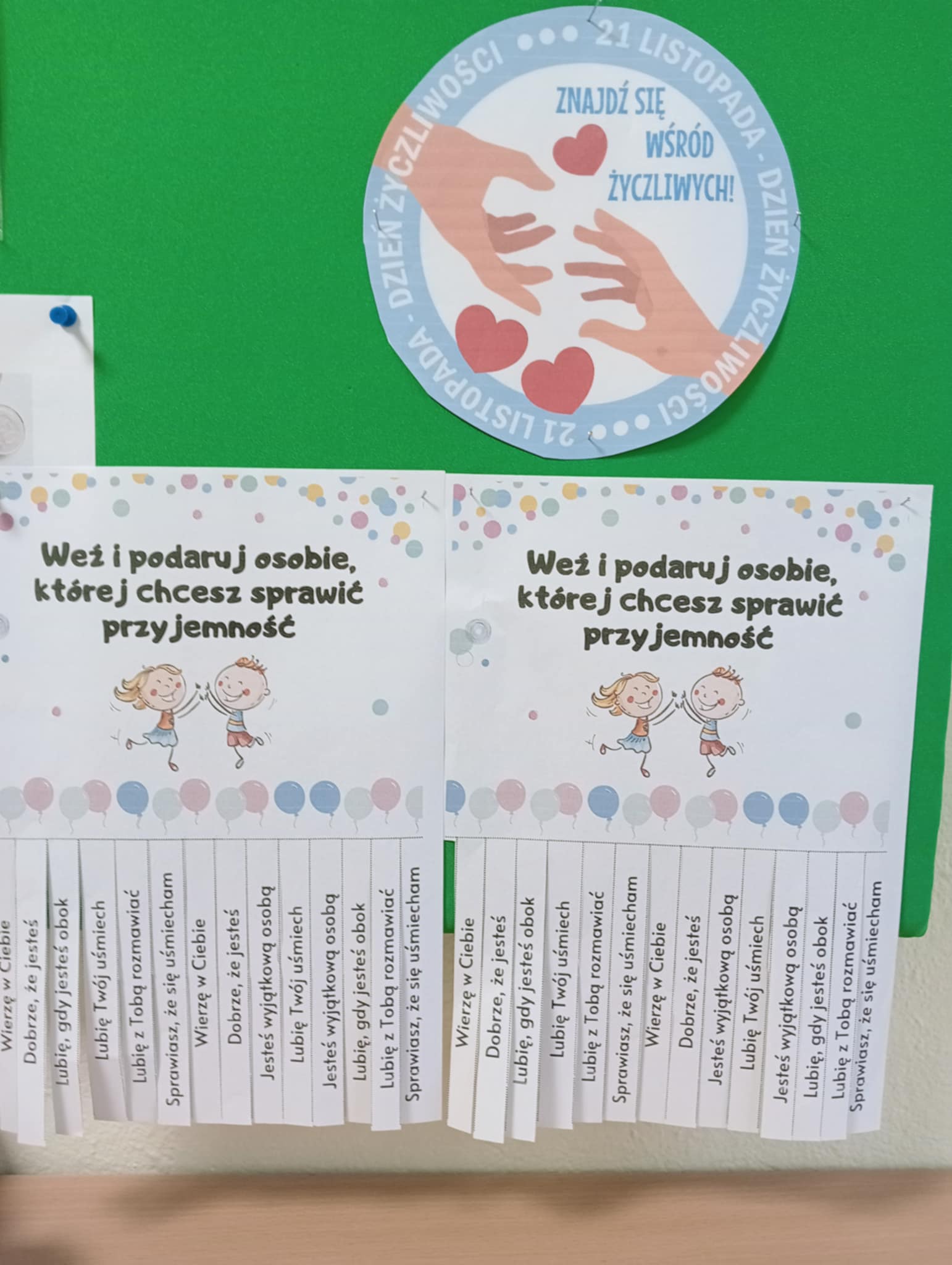 W ramach obchodów Dnia Życzliwości dzieci z grupy „Motylki” wybrały się na wyjątkowy spacer po okolicy, aby szerzyć uśmiech i dobre słowo. Przedszkolaki odwiedziły Warsztaty Terapii Zajęciowej, gdzie z radością przekazały własnoręcznie przygotowane kartki z życzliwymi hasłami. Następnie udały się do sklepu Netto, pobliskiego sklepu spożywczego oraz Apteki „Aspirynki”, aby obdarować pracowników miłymi życzeniami i symbolicznymi upominkami wykonanymi w przedszkolu.