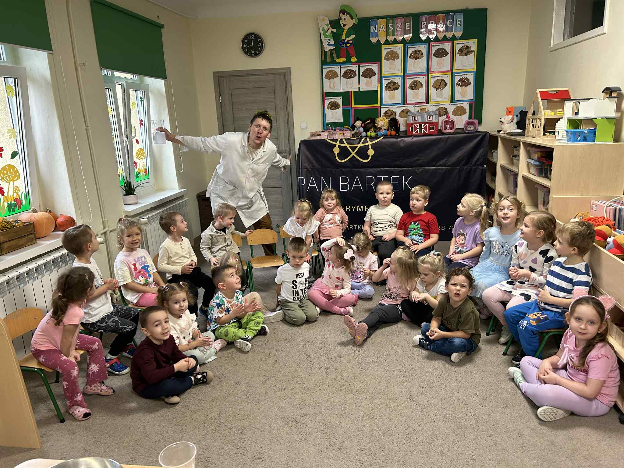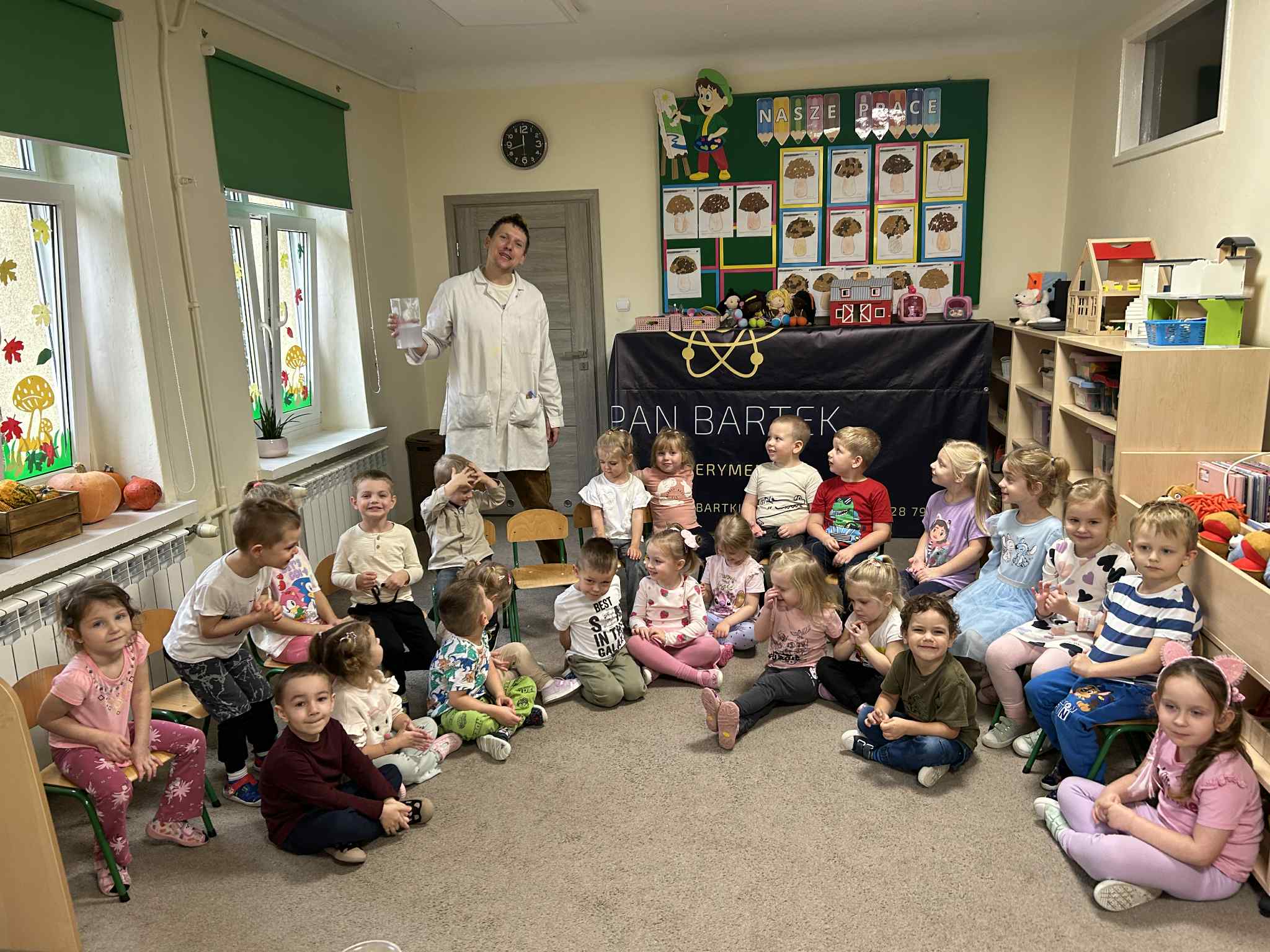 Dzisiejszy dzień był pełen emocji i niezapomnianych wrażeń. Odbyły się niezwykle ciekawe eksperymenty prowadzone przez pana Bartka Pałuckiego. Dzieci mogły nie tylko obserwować, ale również aktywnie uczestniczyć w doświadczeniach, samodzielnie próbując i odkrywając tajemnice nauki.
