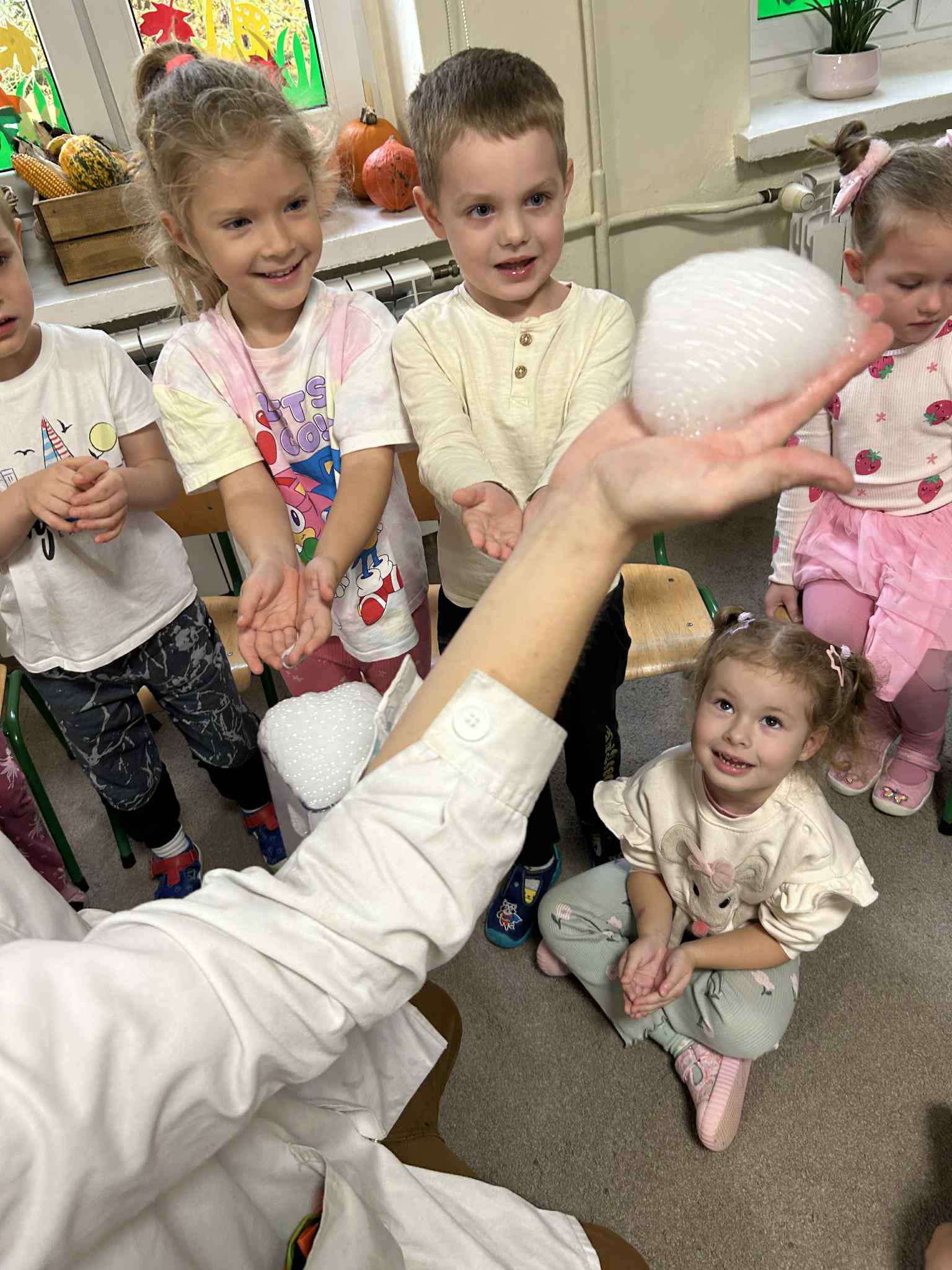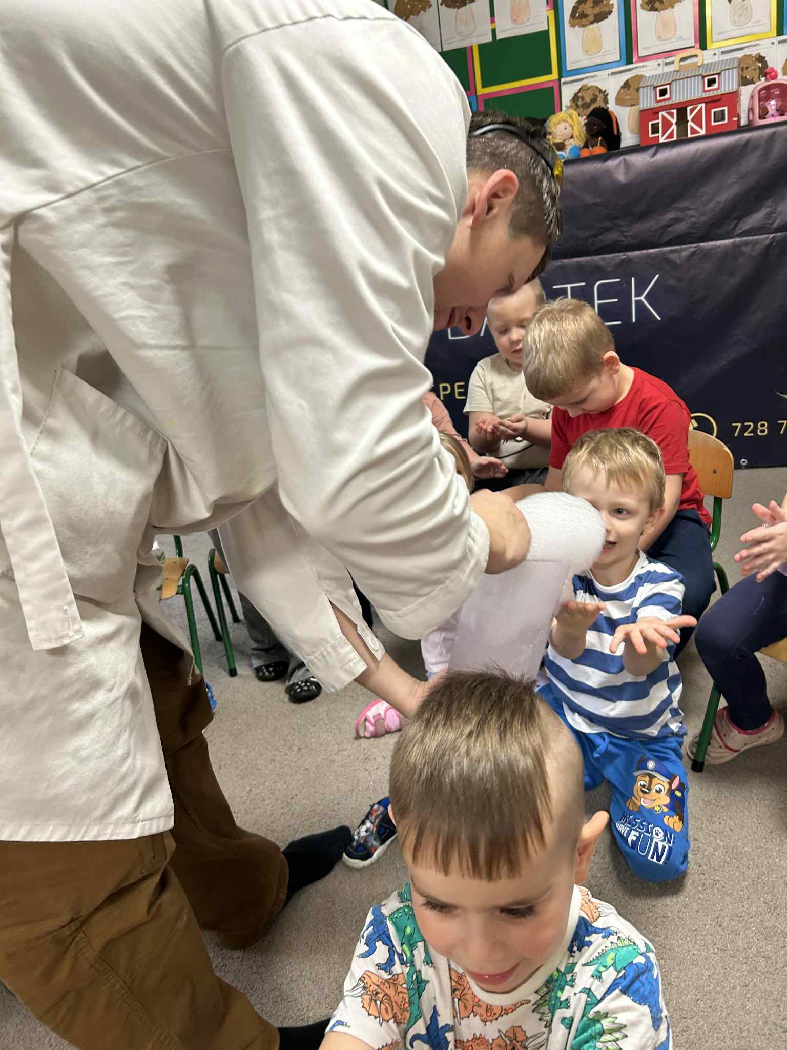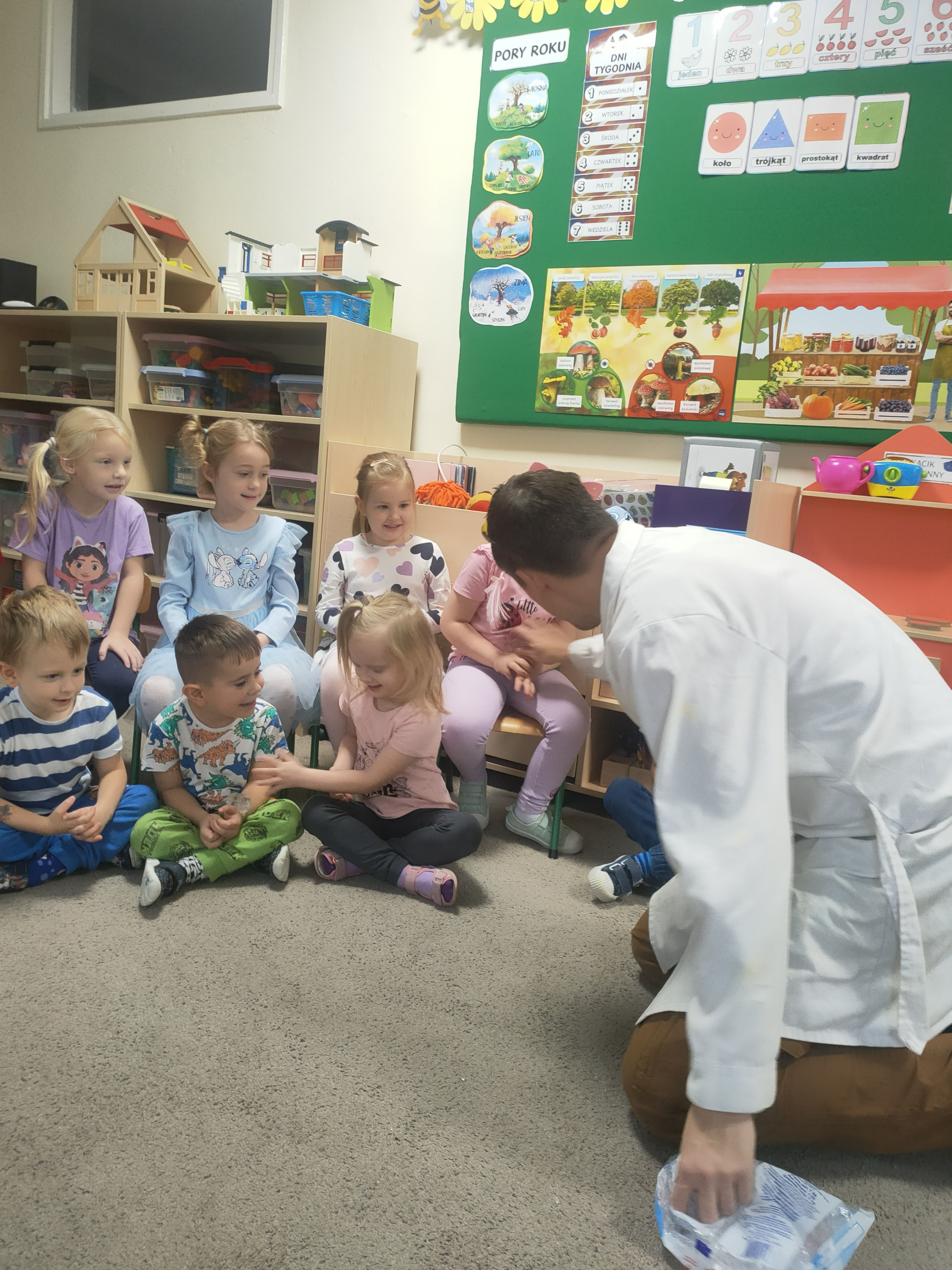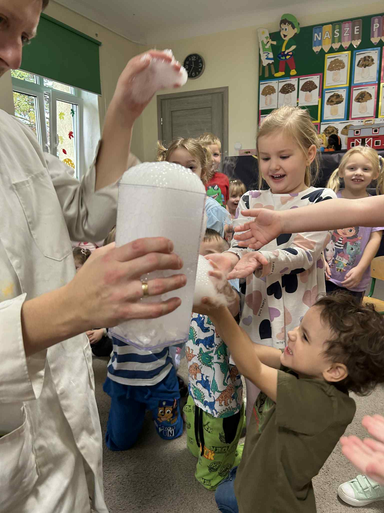 Był to naprawdę niezwykły dzień, pełen ciekawości, śmiechu i zdumienia. Eksperymenty bardzo spodobały się dzieciom — z ogromnym zaangażowaniem dotykały i doświadczały. Zajęcia rozbudziły w nich chęć poznawania świata i pokazały, że nauka może być fascynującą przygodą.