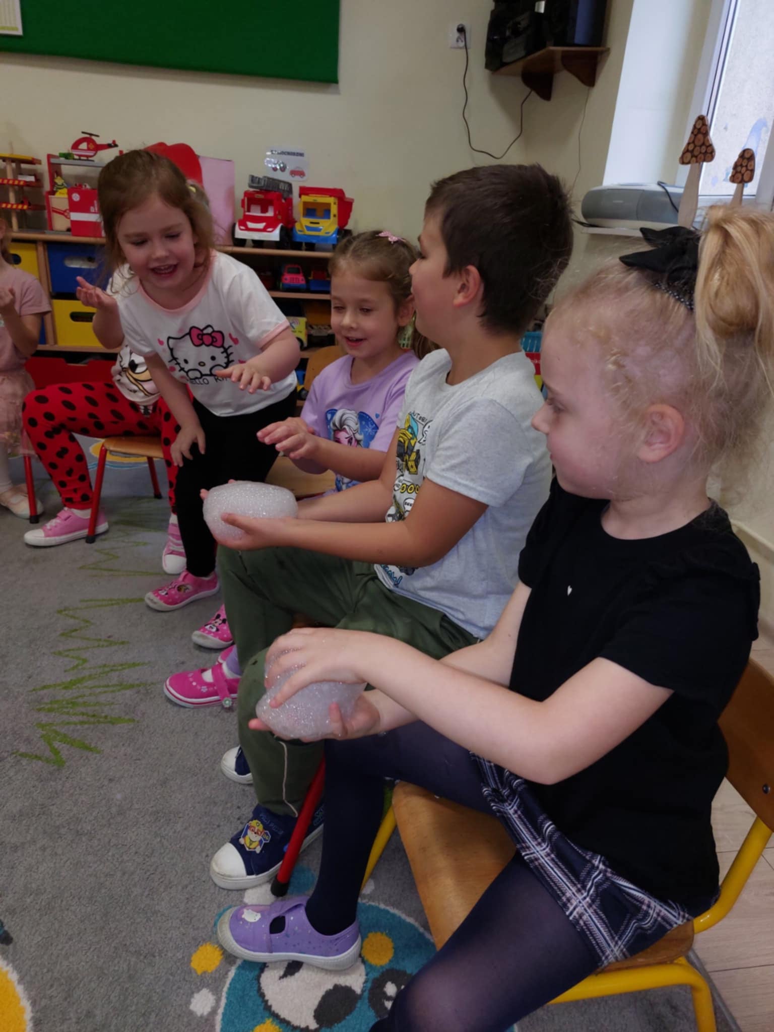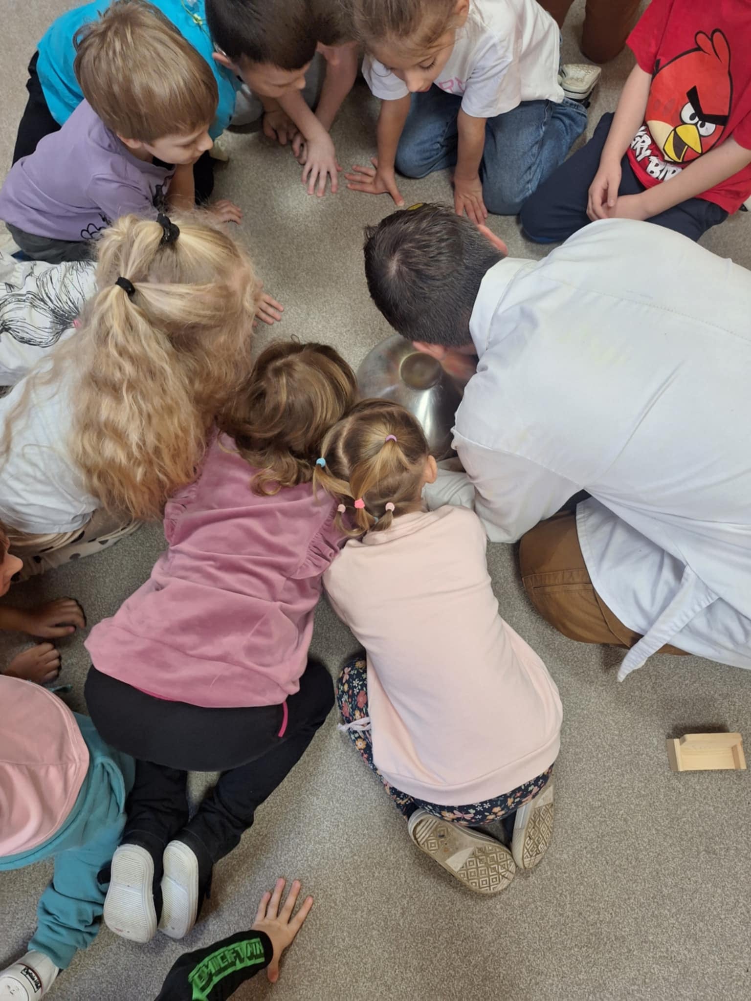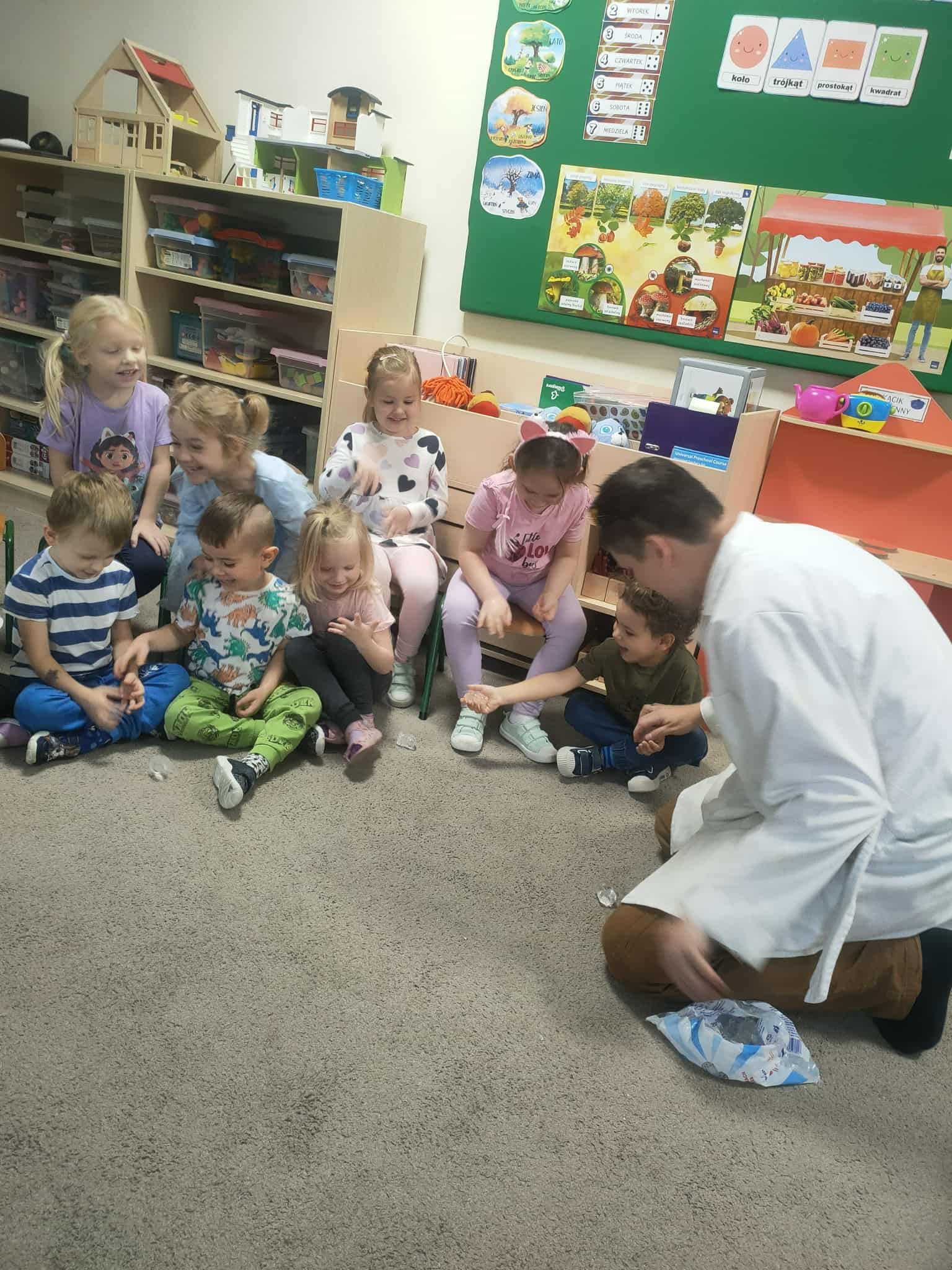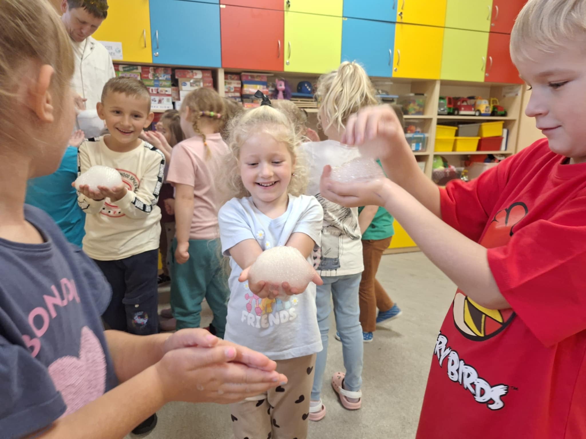 Dzisiejszy dzień był pełen emocji i niezapomnianych wrażeń. W naszym przedszkolu mieliśmy niezwykłego gościa – pana Bartka Pałuckiego, pasjonata nauki, który w fascynujący sposób wprowadził dzieci w świat fizyki i chemii poprzez zabawę. Dzieci mogły nie tylko obserwować, ale również aktywnie uczestniczyć w doświadczeniach, samodzielnie próbując i odkrywając tajemnice nauki. Był to naprawdę niezwykły dzień, pełen ciekawości, śmiechu i zdumienia. Eksperymenty bardzo spodobały się dzieciom — z ogromnym zaangażowaniem dotykały i doświadczały. Zajęcia rozbudziły w nich chęć poznawania świata i pokazały, że nauka może być fascynującą przygodą.