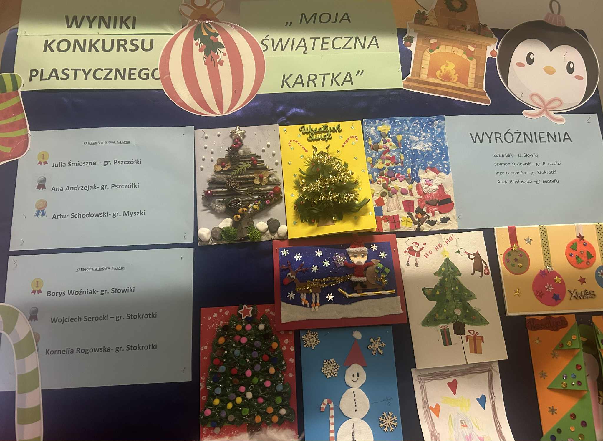Mamy przyjemność ogłosić , że zwycięzcami konkursu plastycznego „Moja świąteczna kartka” w Przedszkolu im. Juliana Tuwima zostali: