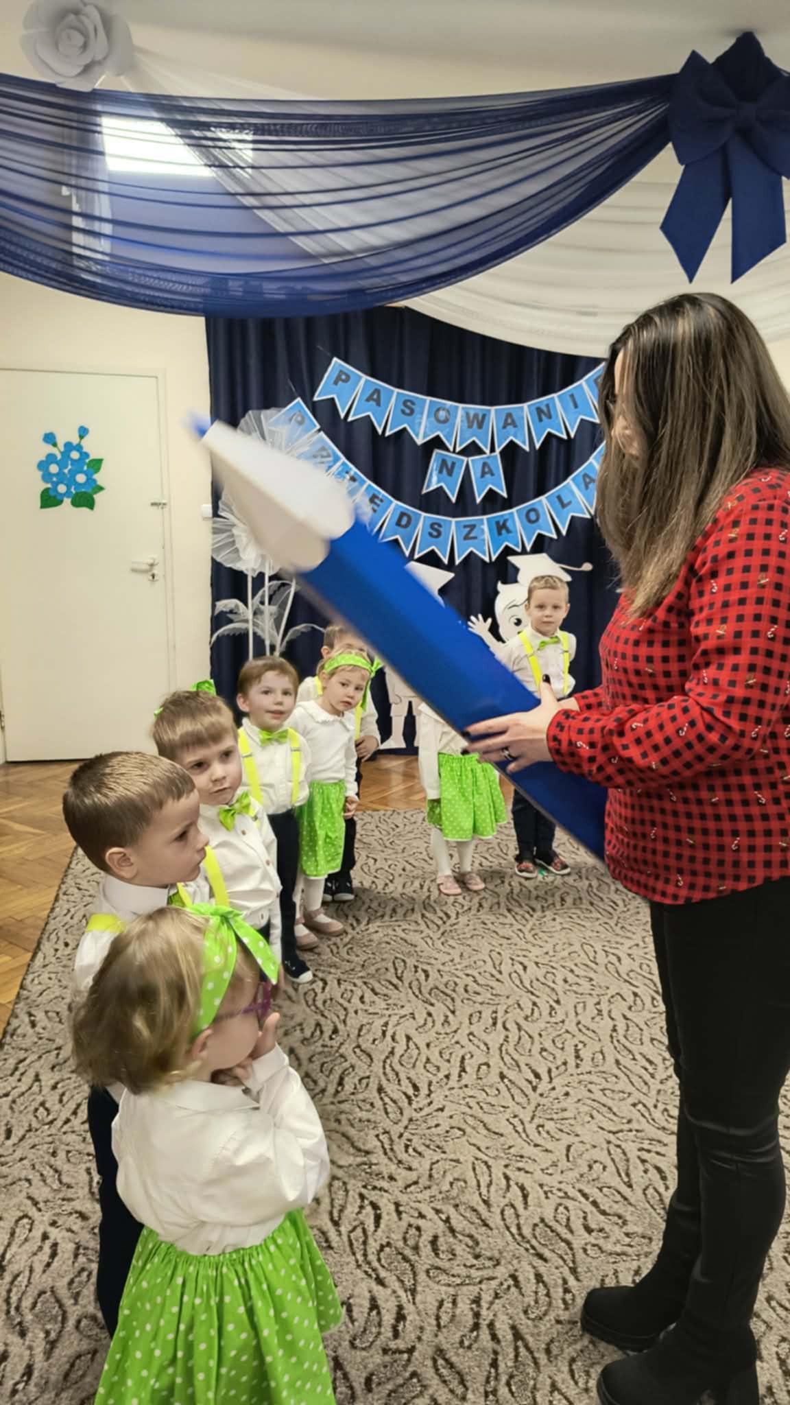 W dniu 4 grudnia w naszym przedszkolu miała miejsce wyjątkowa uroczystość - Pasowanie na przedszkolaka w grupie "Żabki". To dzień, na który czekają rodzice, nauczyciele a przede wszystkim dzieci. Dla każdego maluszka zaczyna się piękna przyroda, która będzie trwała przez 4 lata. To tu w przedszkolu dzieci uczą się liczyć, śpiewać, tańczyć, nawiązywać nowe znajomości. To tu rodzą się nowe przyjaźnie, które będą trwały całe życie. Przedszkole to najpiękniejszy okres w życiu każdego dziecka.
