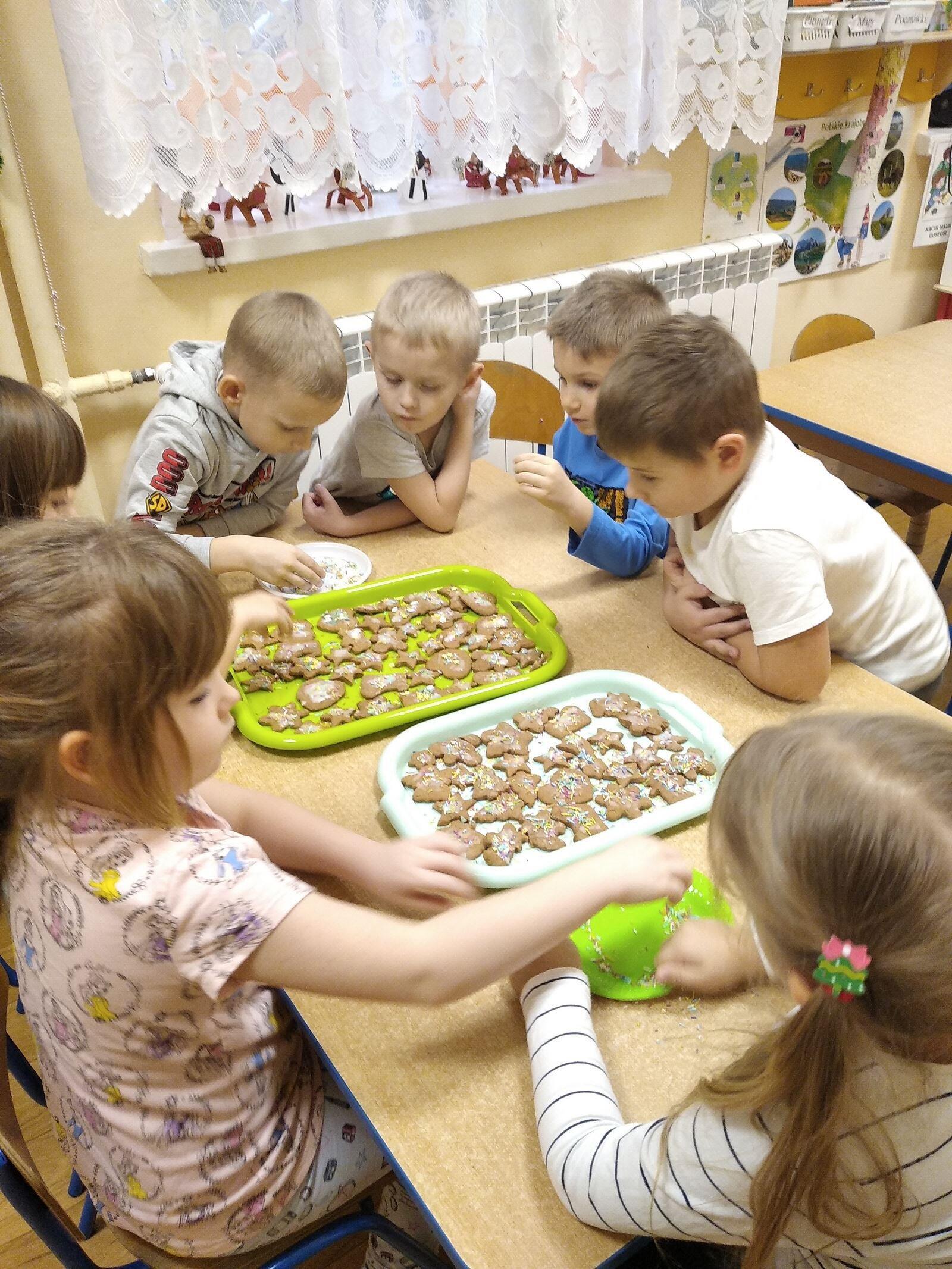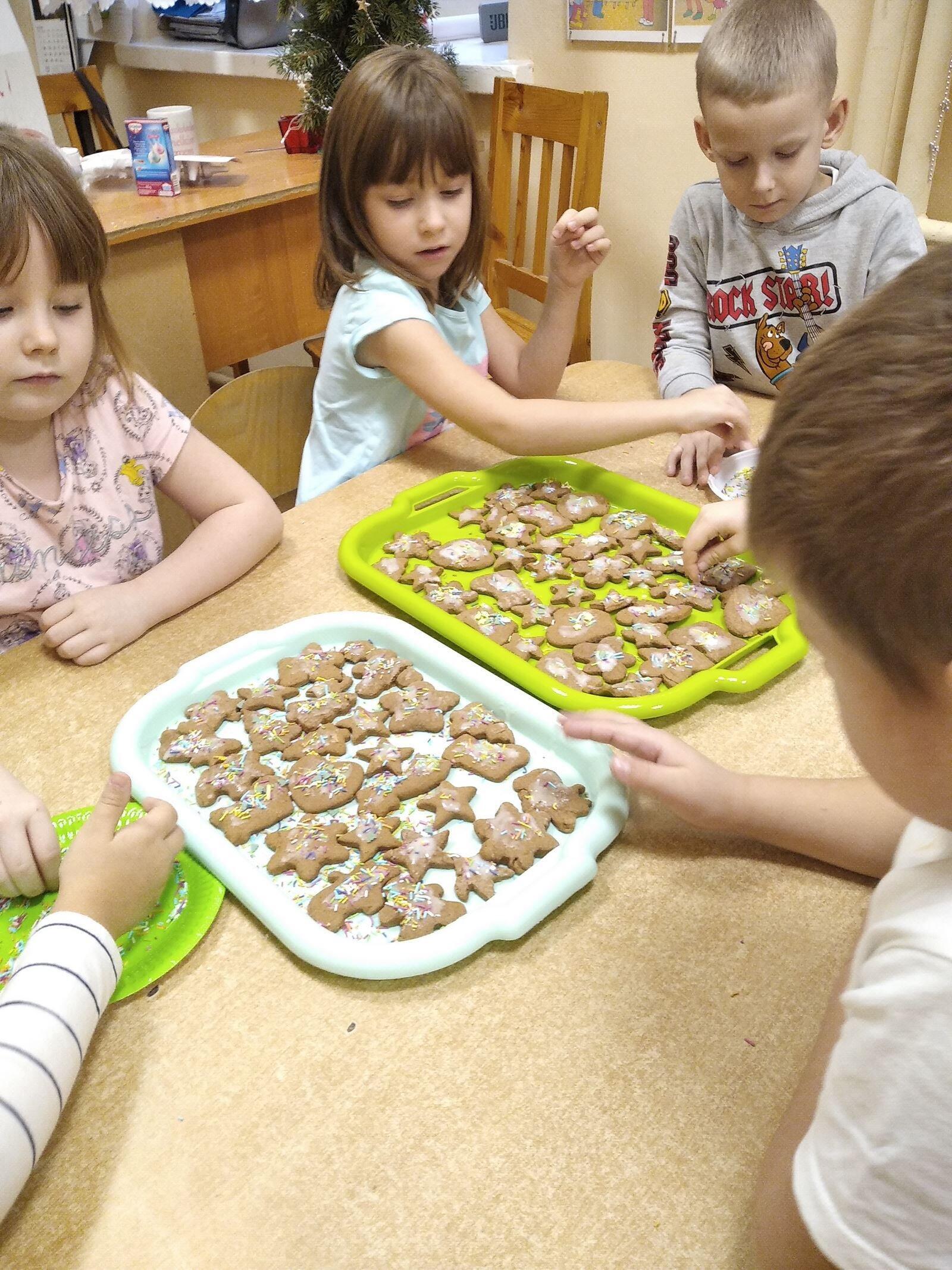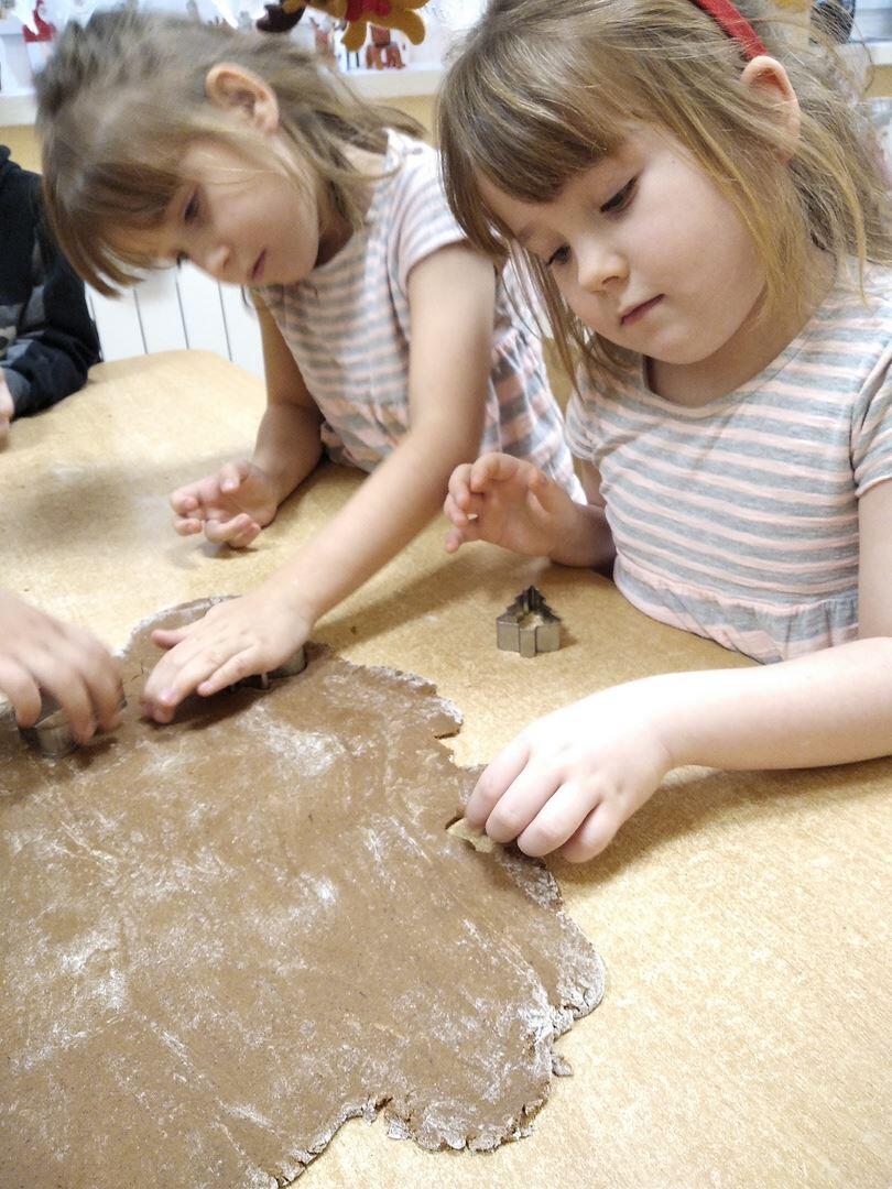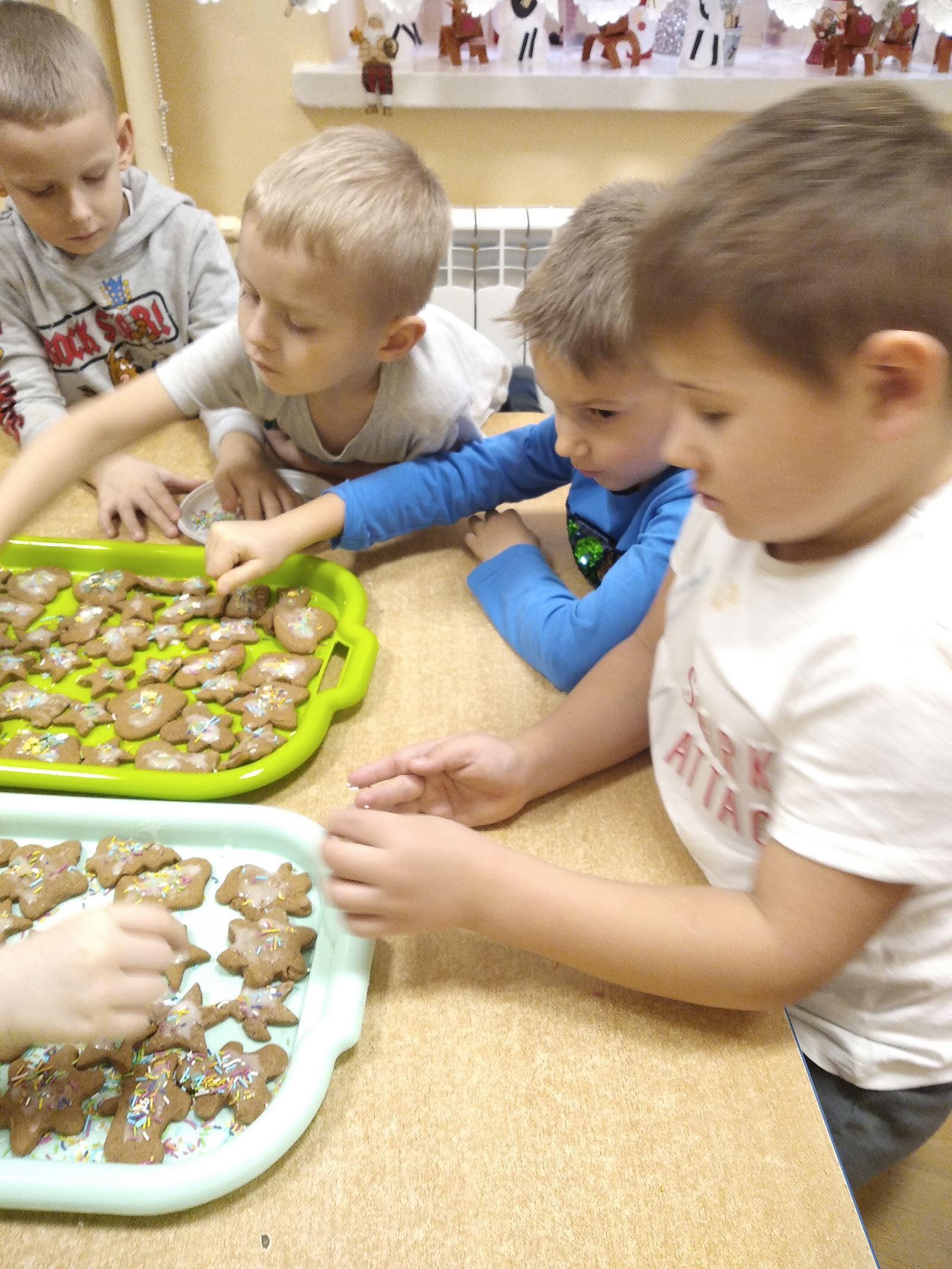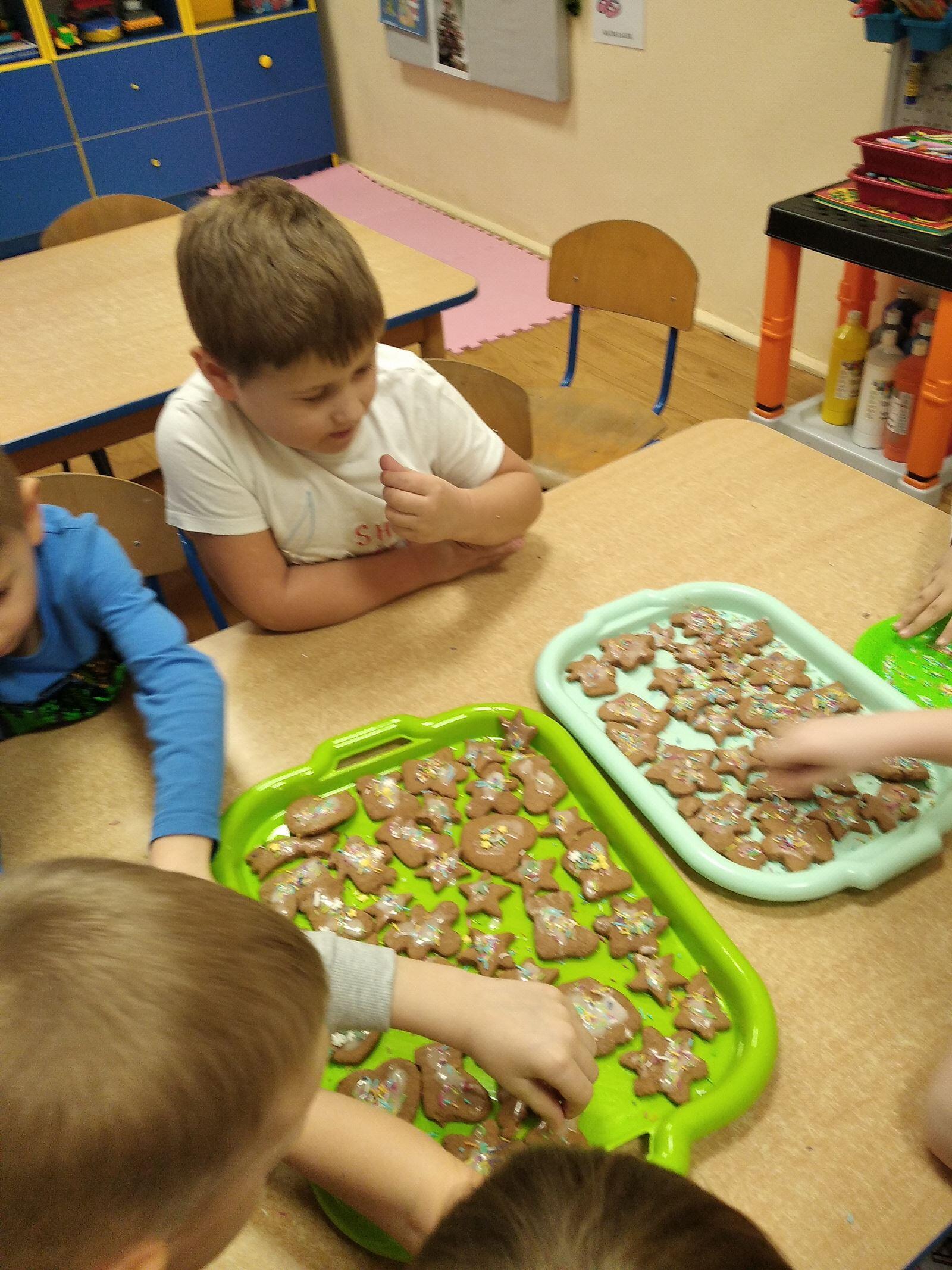 14 grudnia w naszym przedszkolu zapachniało świętami, ponieważ unosił się zapach cynamonu, wanilii, miodu i przypraw korzennych. Nasze "myszki" robiły świąteczne pierniki. Każde dziecko pracowało wytrwale wycinająć za pomocą foremek ciasto na pierniki. Kolejnym etapem było zdobienie pierników za pomocą lukru i kolorowych posypek.
