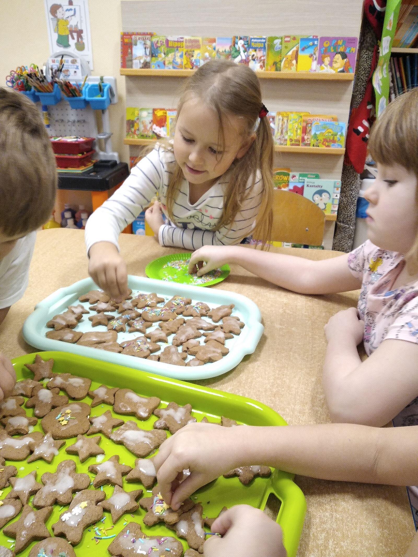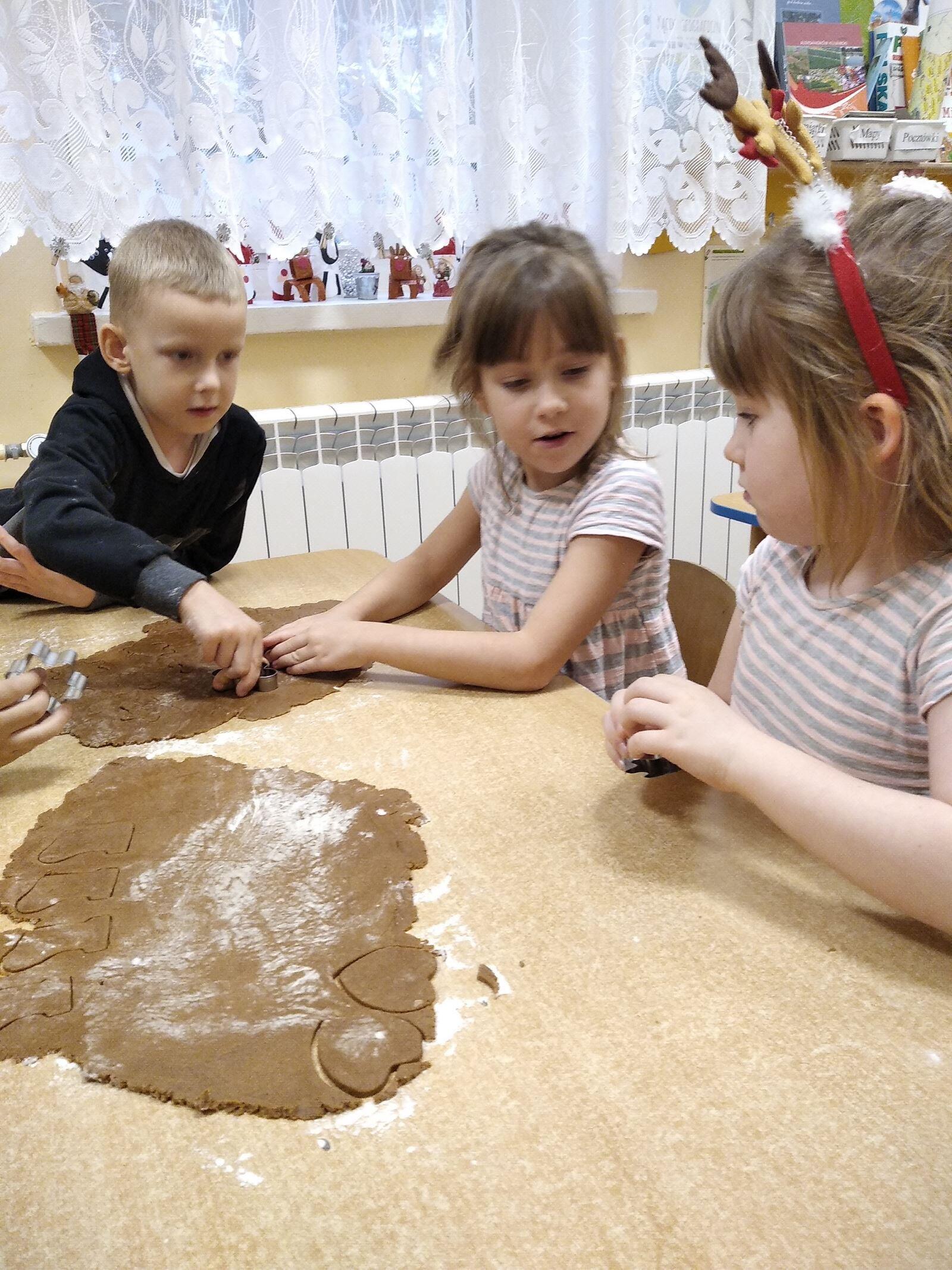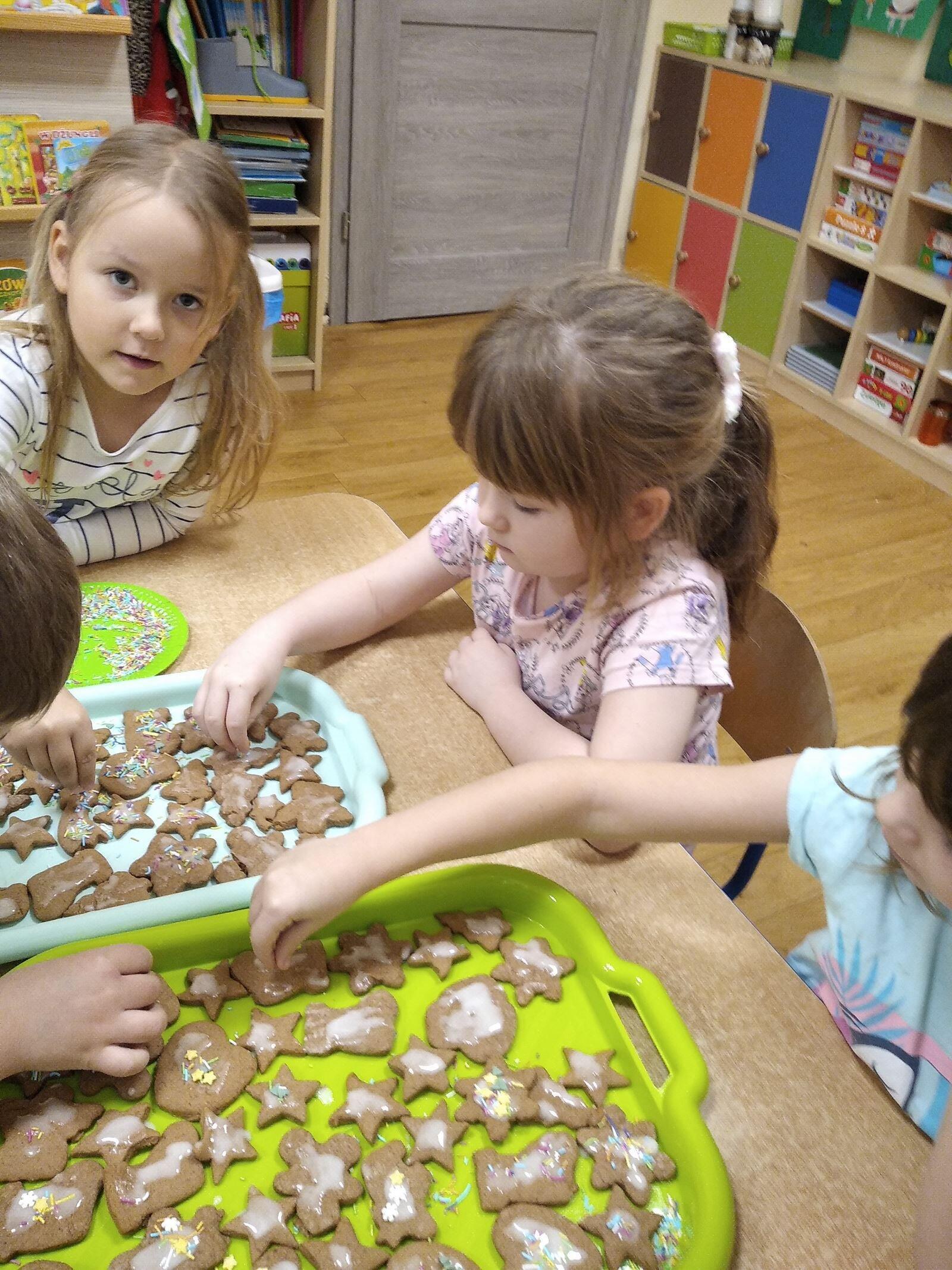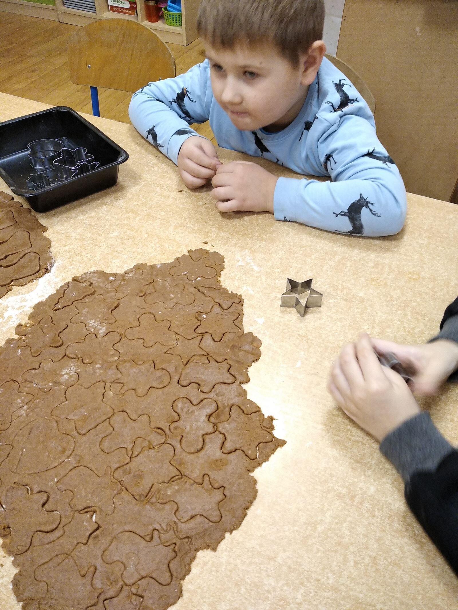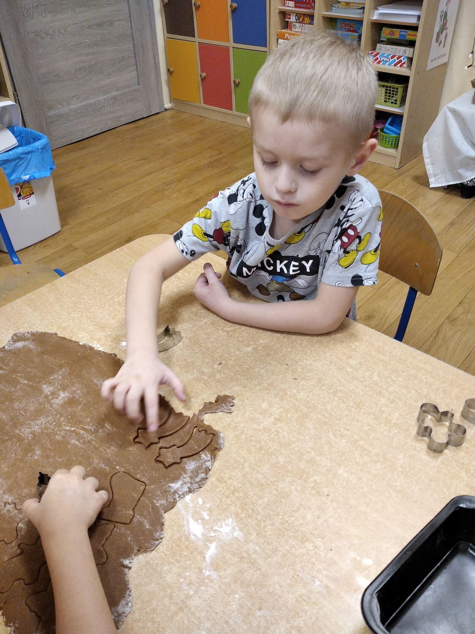 14 grudnia w naszym przedszkolu zapachniało świętami, ponieważ unosił się zapach cynamonu, wanilii, miodu i przypraw korzennych. Nasze "myszki" robiły świąteczne pierniki. Każde dziecko pracowało wytrwale wycinająć za pomocą foremek ciasto na pierniki. Kolejnym etapem było zdobienie pierników za pomocą lukru i kolorowych posypek.