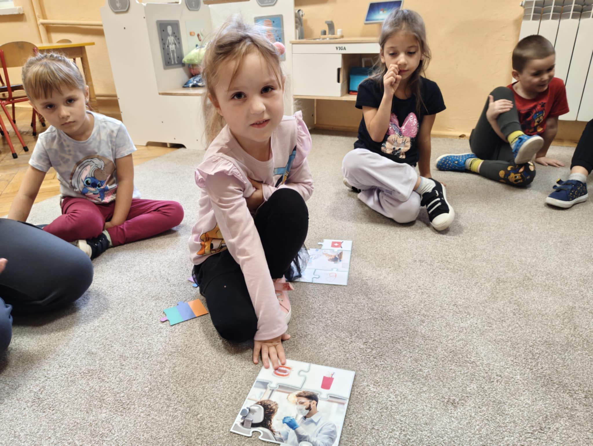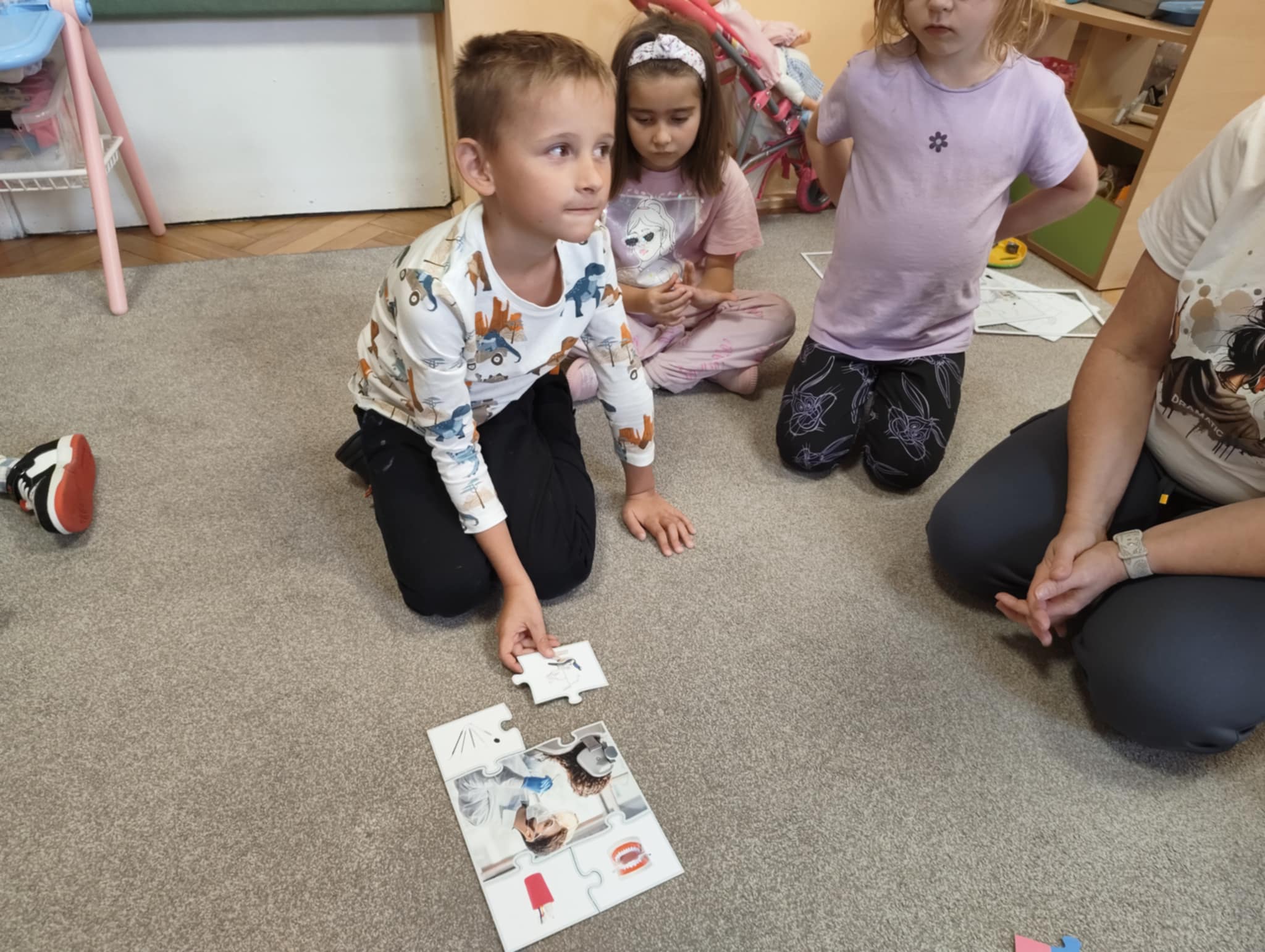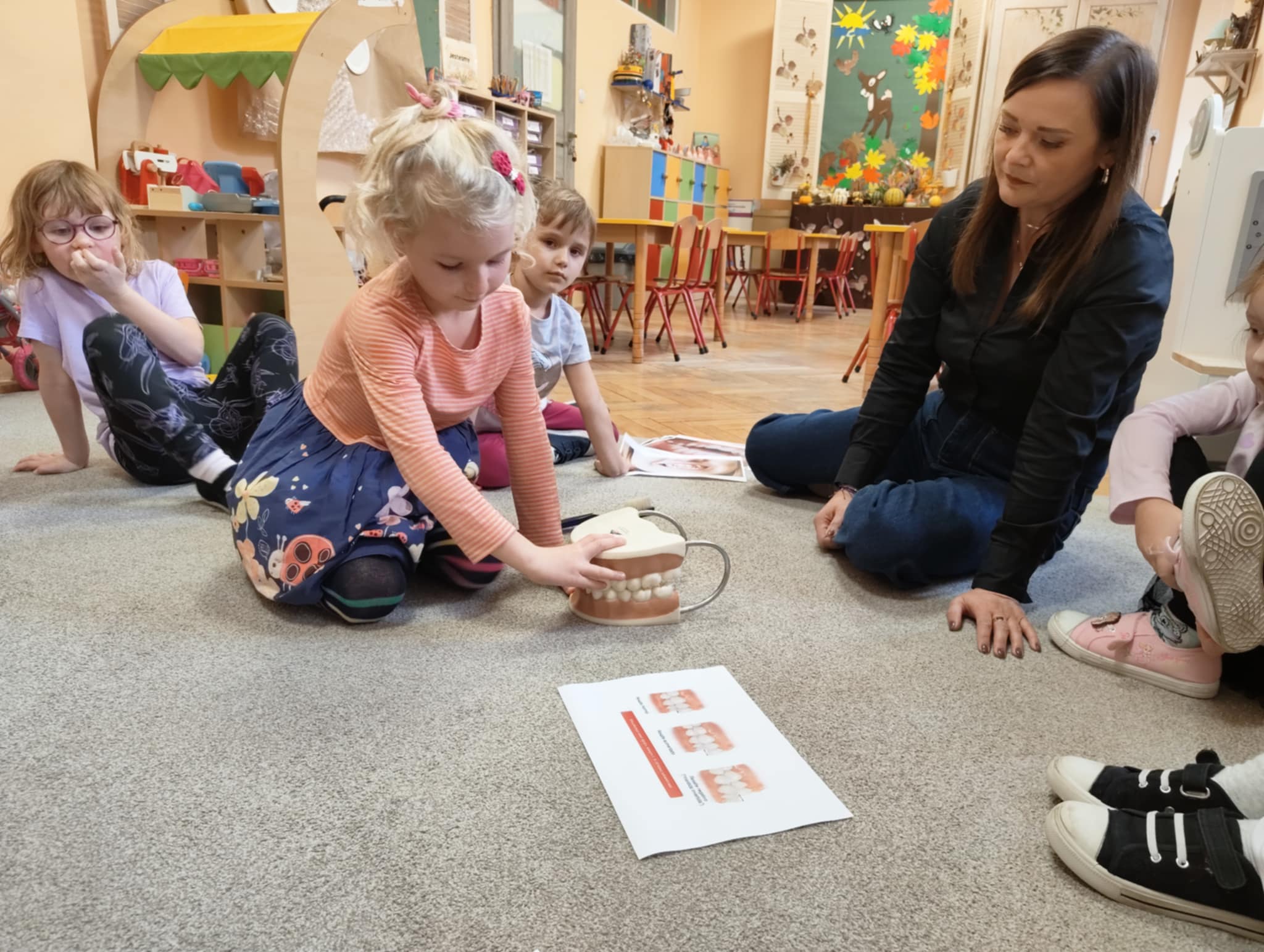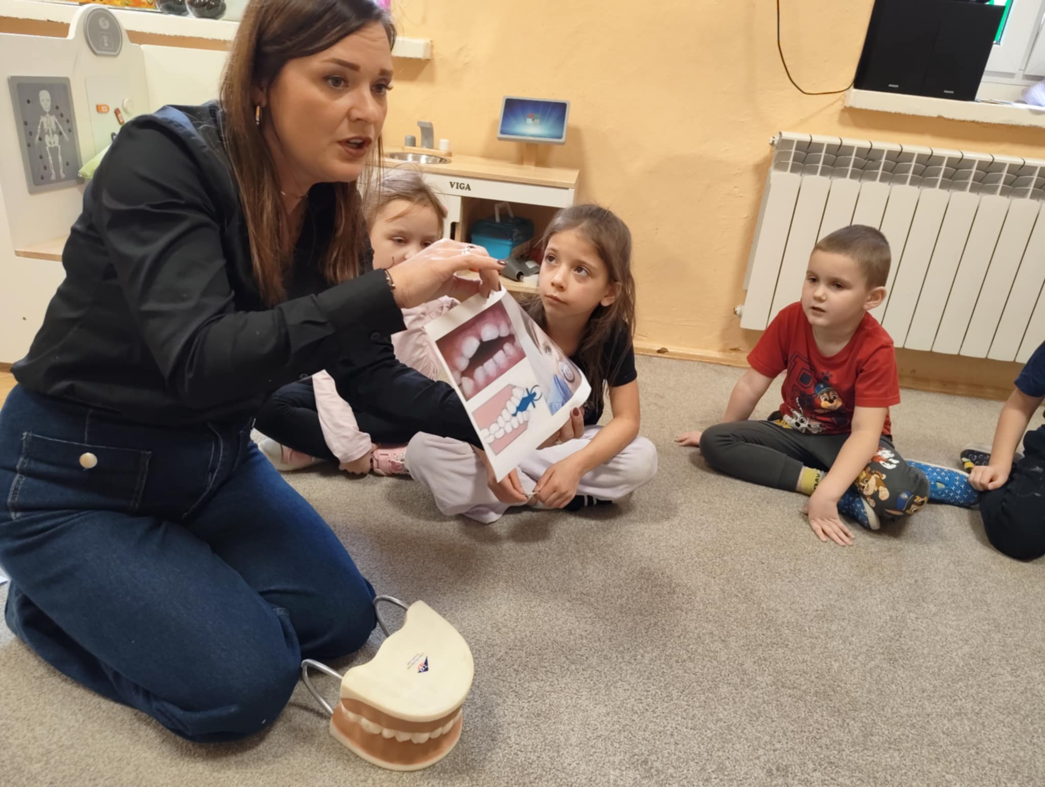W związku z tym wychowawczyni z logopedą przedszkolnym przekazały dzieciom informacje, jak ważnym zadaniem jest dbanie o higienę zębów, przybliżyły co dają systematyczne wizyty kontrolne u stomatologa oraz jak istotne jest dla prawidłowego zgryzu eliminowanie złych nawyków związanych ze zdrowiem. Po pogadance dzieci tworzyły prace plastyczne wg. własnych pomysłów przedstawiające tematykę zdrowia zębów i jamy ustnej. Najładniejsze prace konkursowe zostaną wysłane do Organizatora
