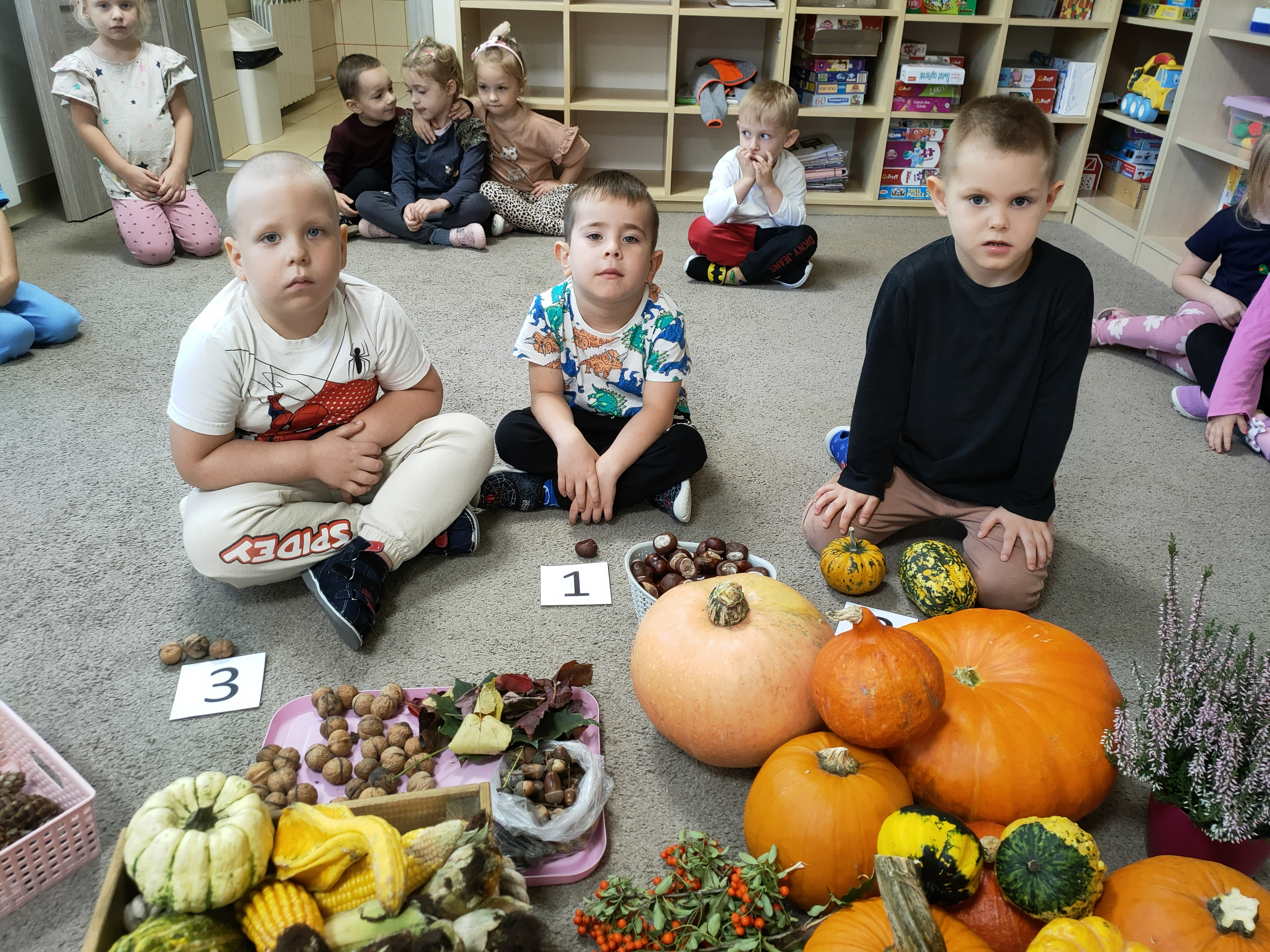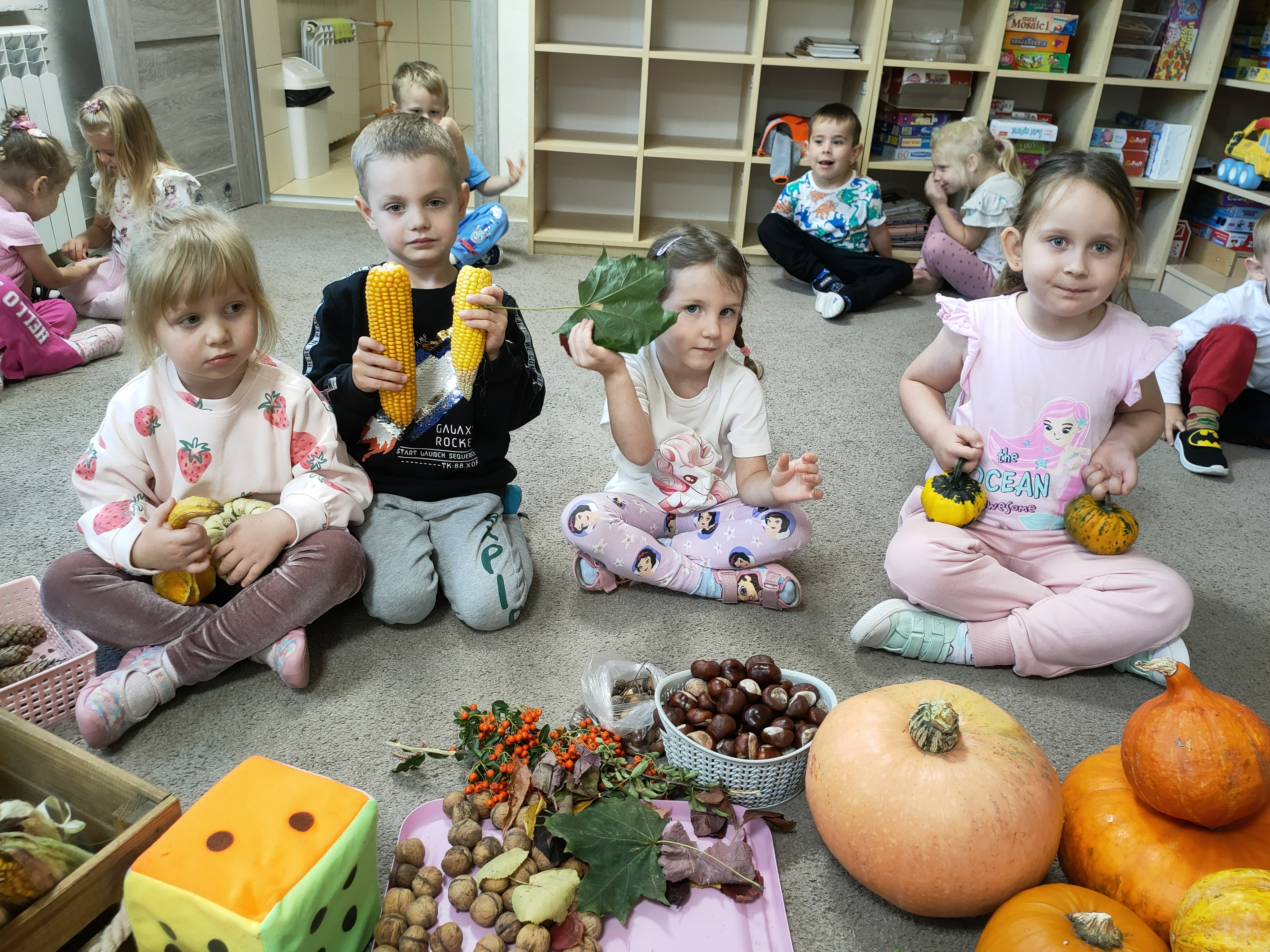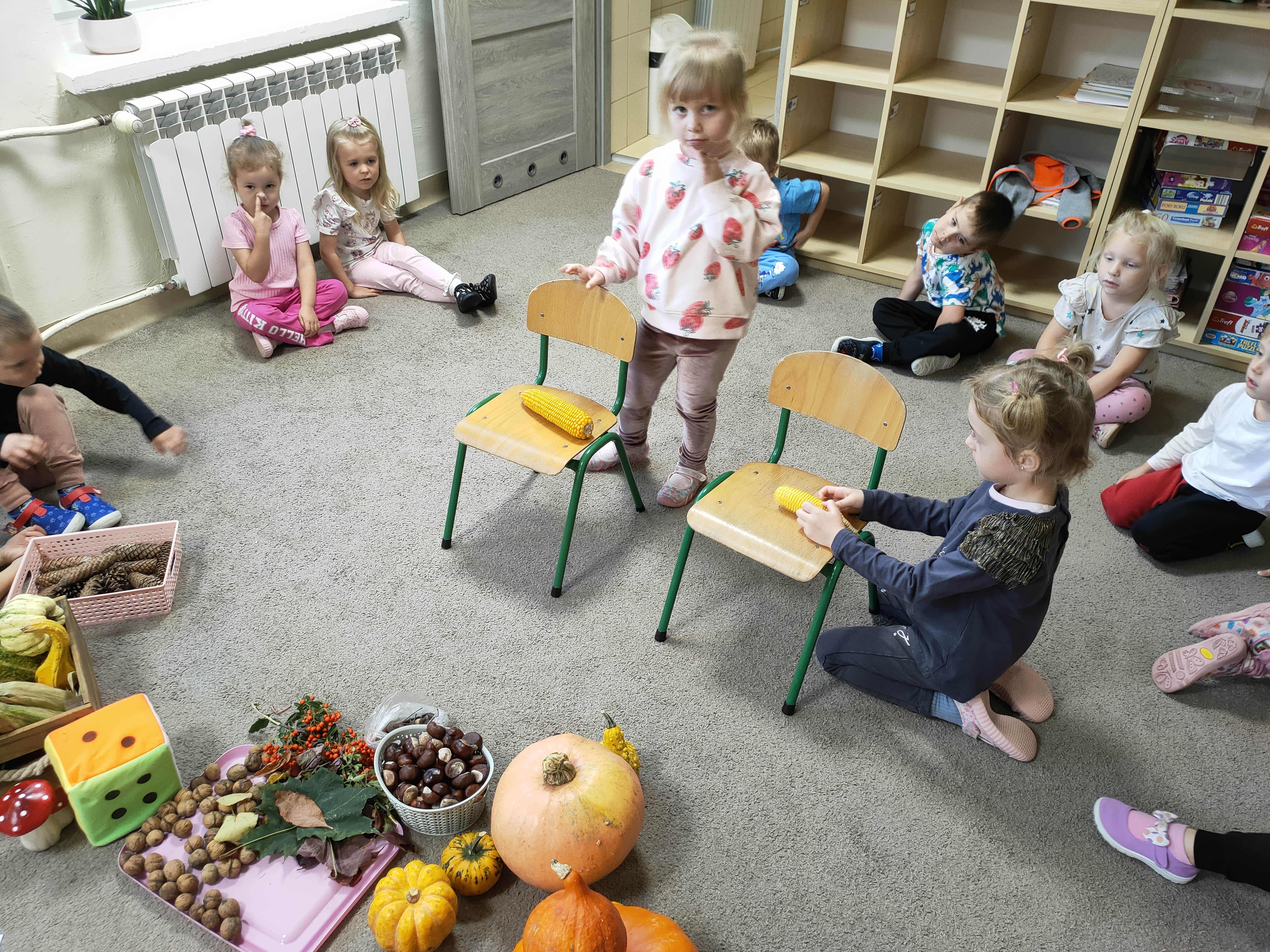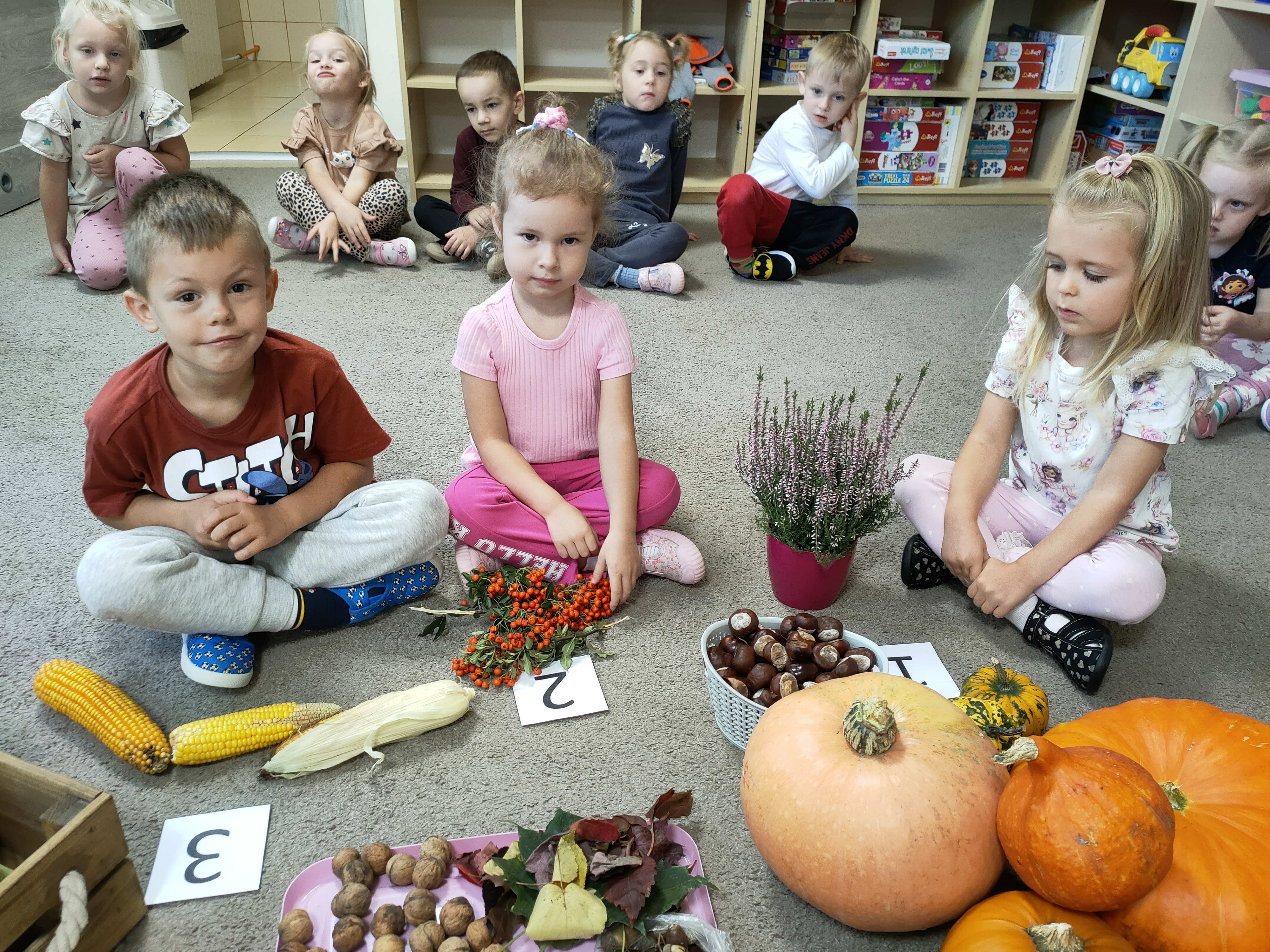 Po skończonych zajęciach wspólnie stworzyliśmy także kącik jesienny, w którym znalazły się wszystkie dary przyniesione przez dzieci.