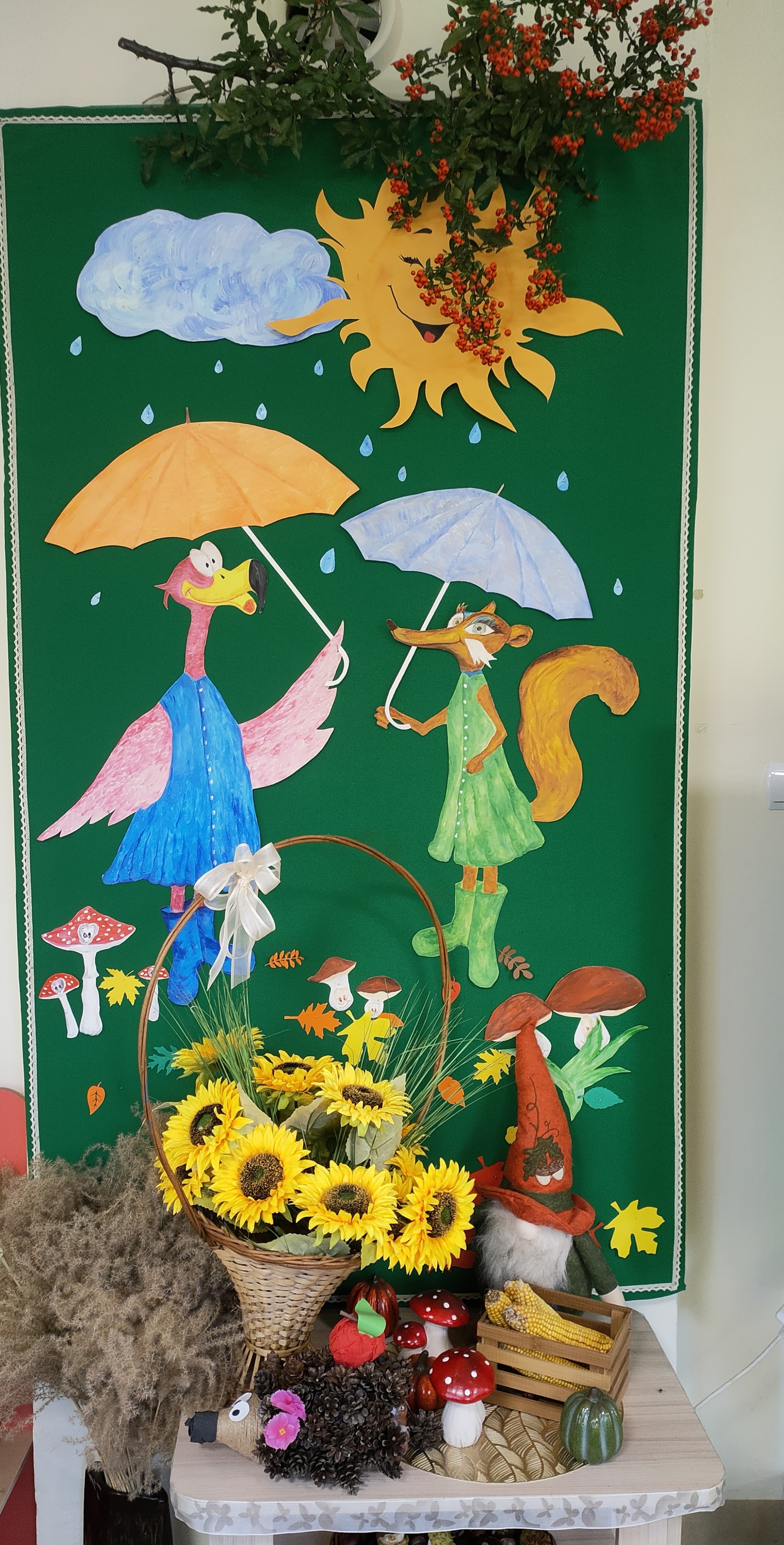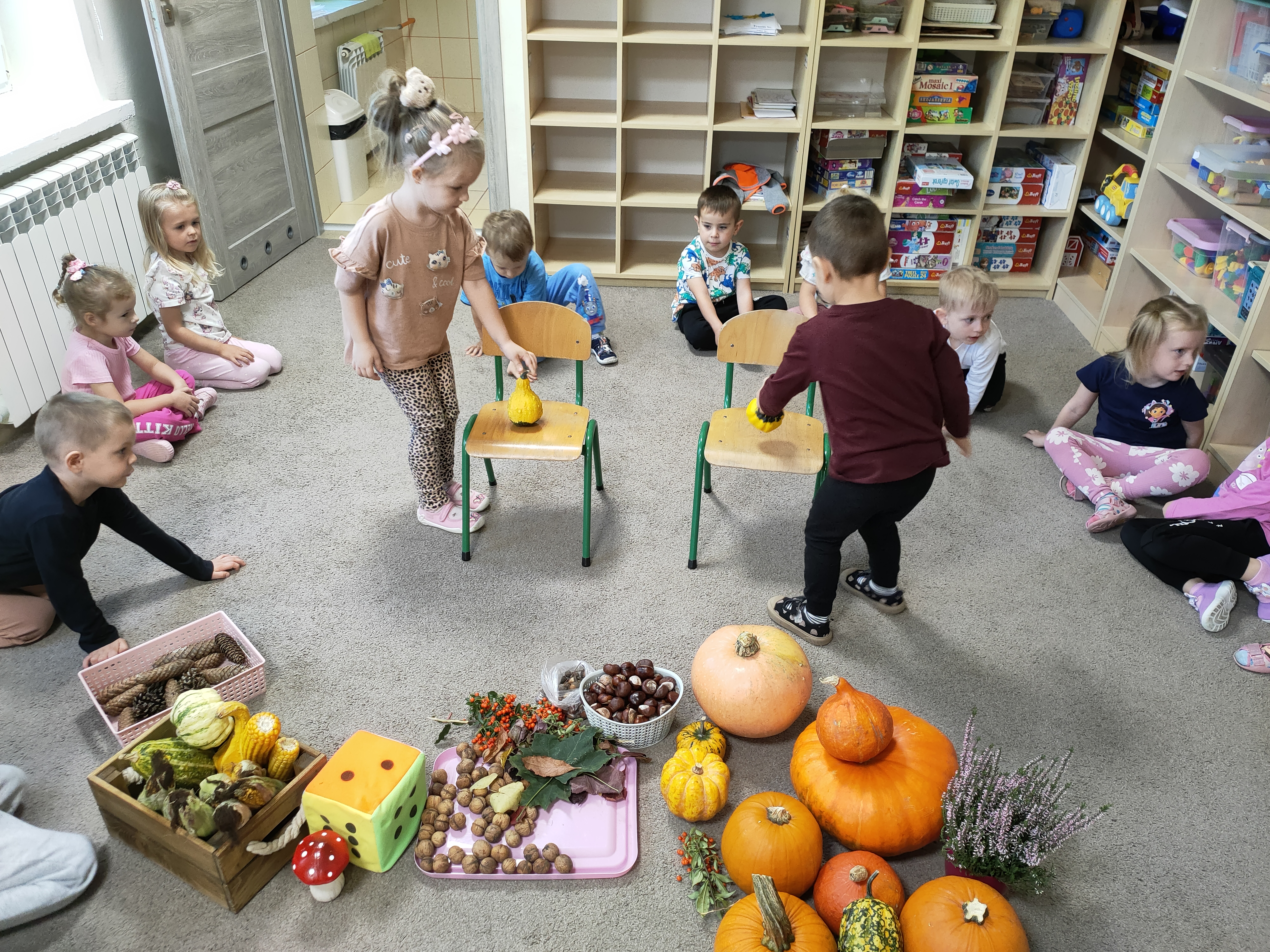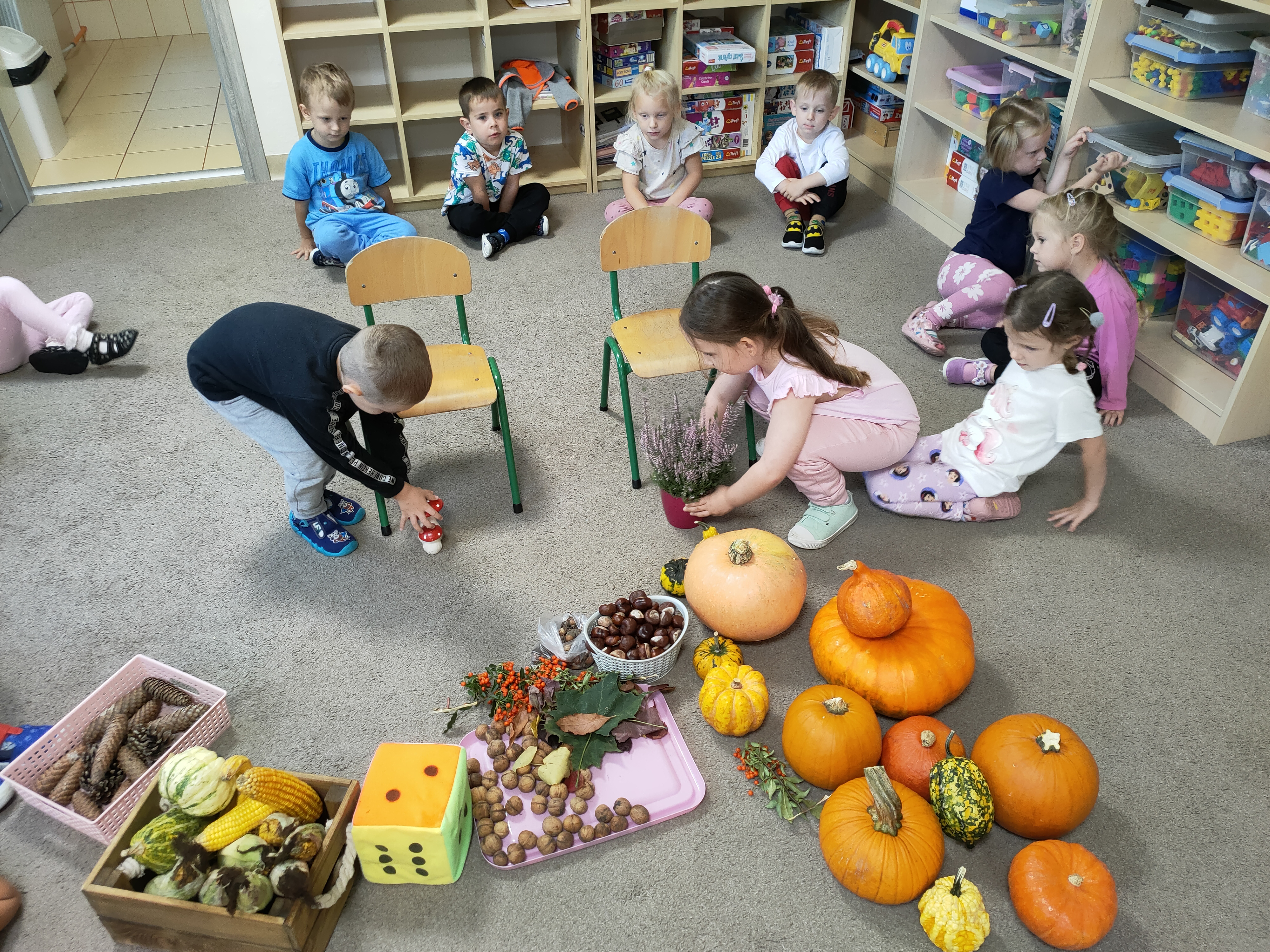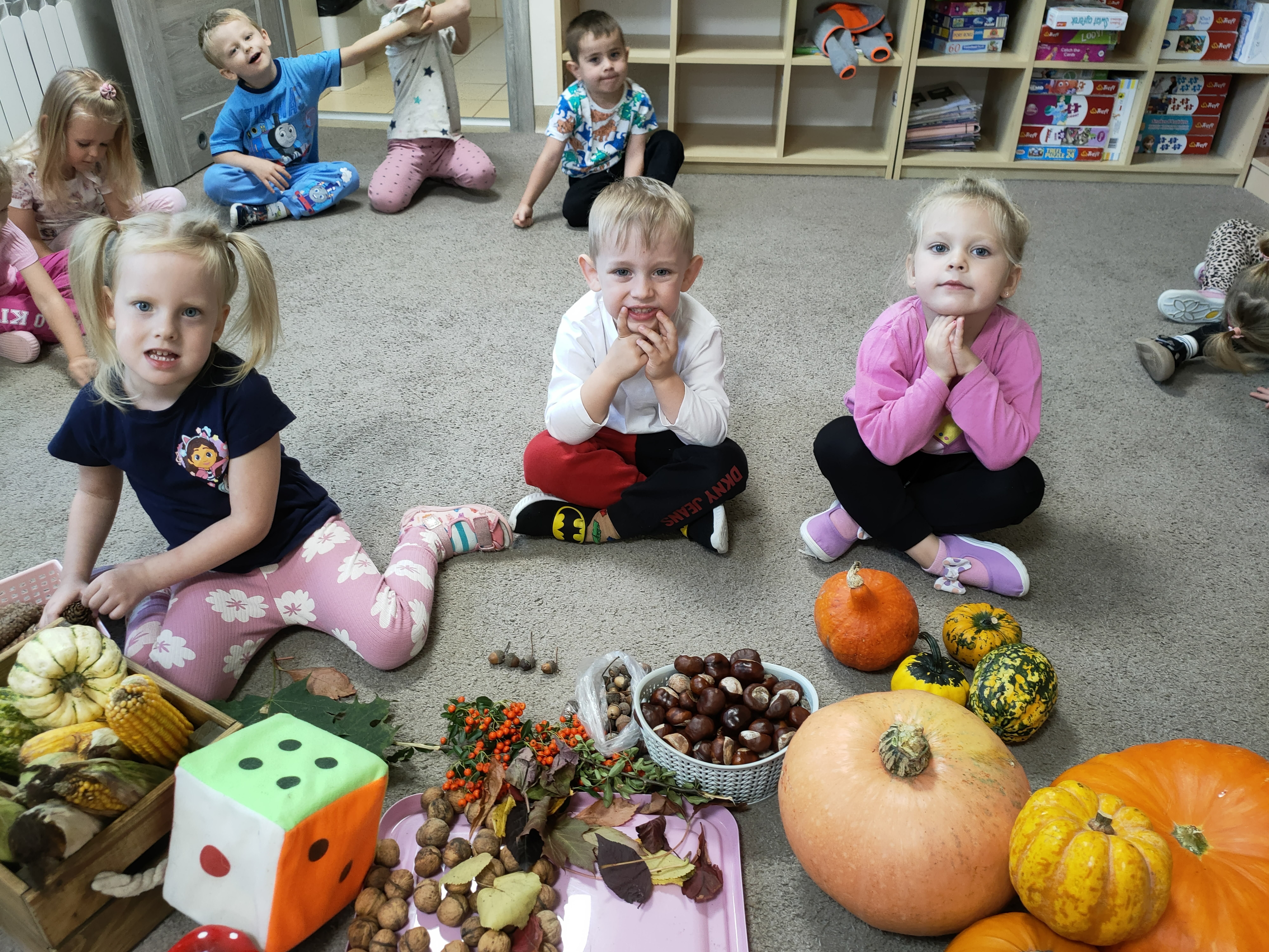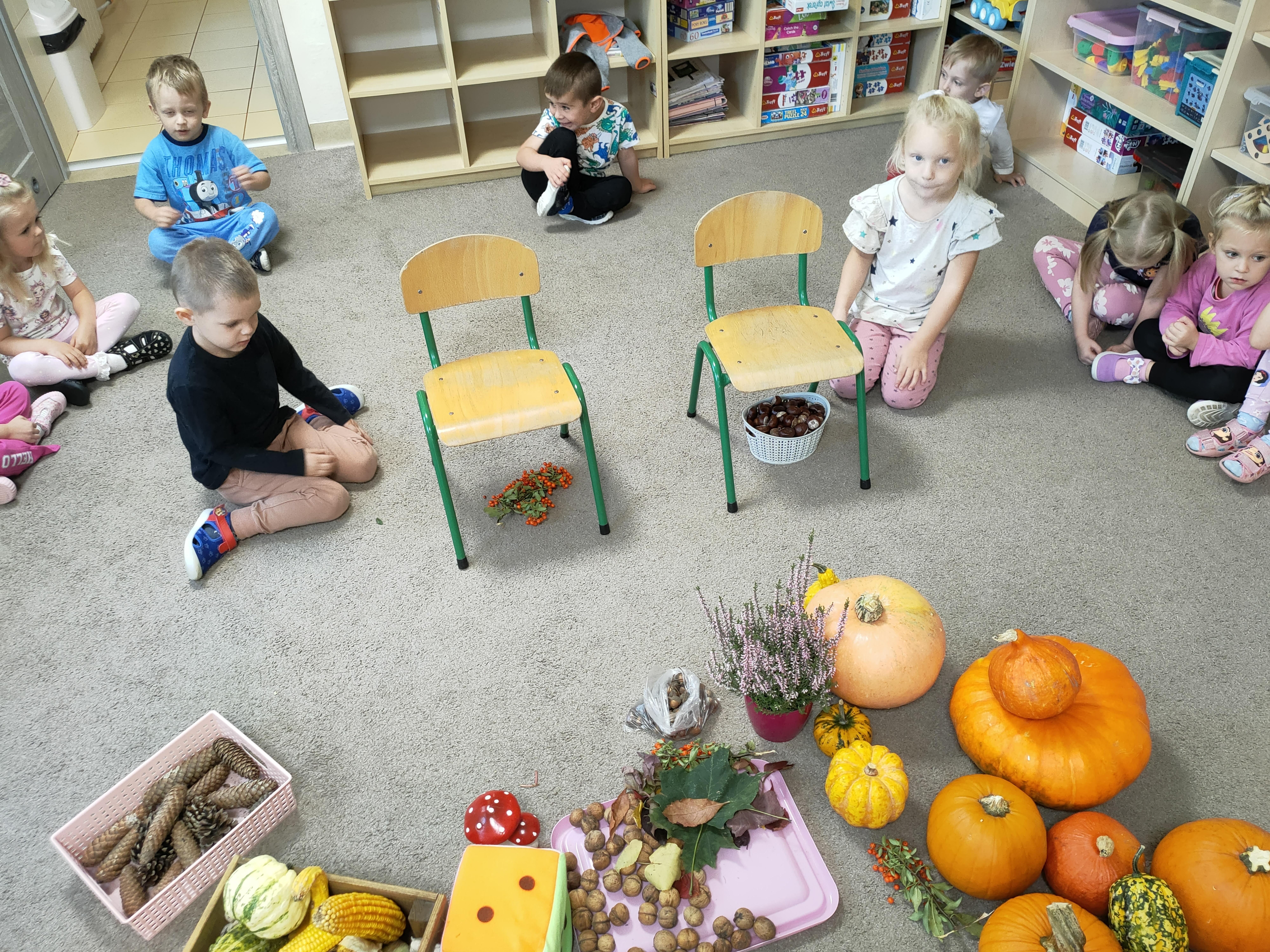 Po skończonych zajęciach wspólnie stworzyliśmy także kącik jesienny, w którym znalazły się wszystkie dary przyniesione przez dzieci.