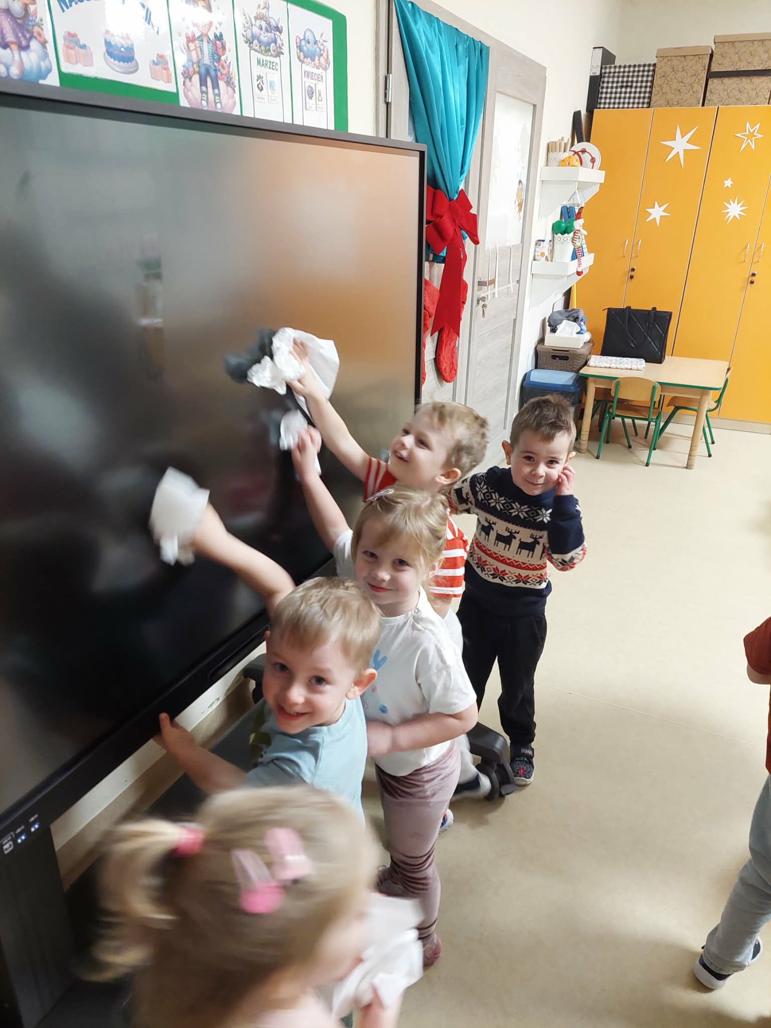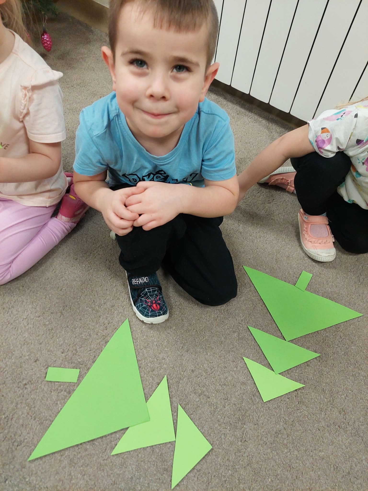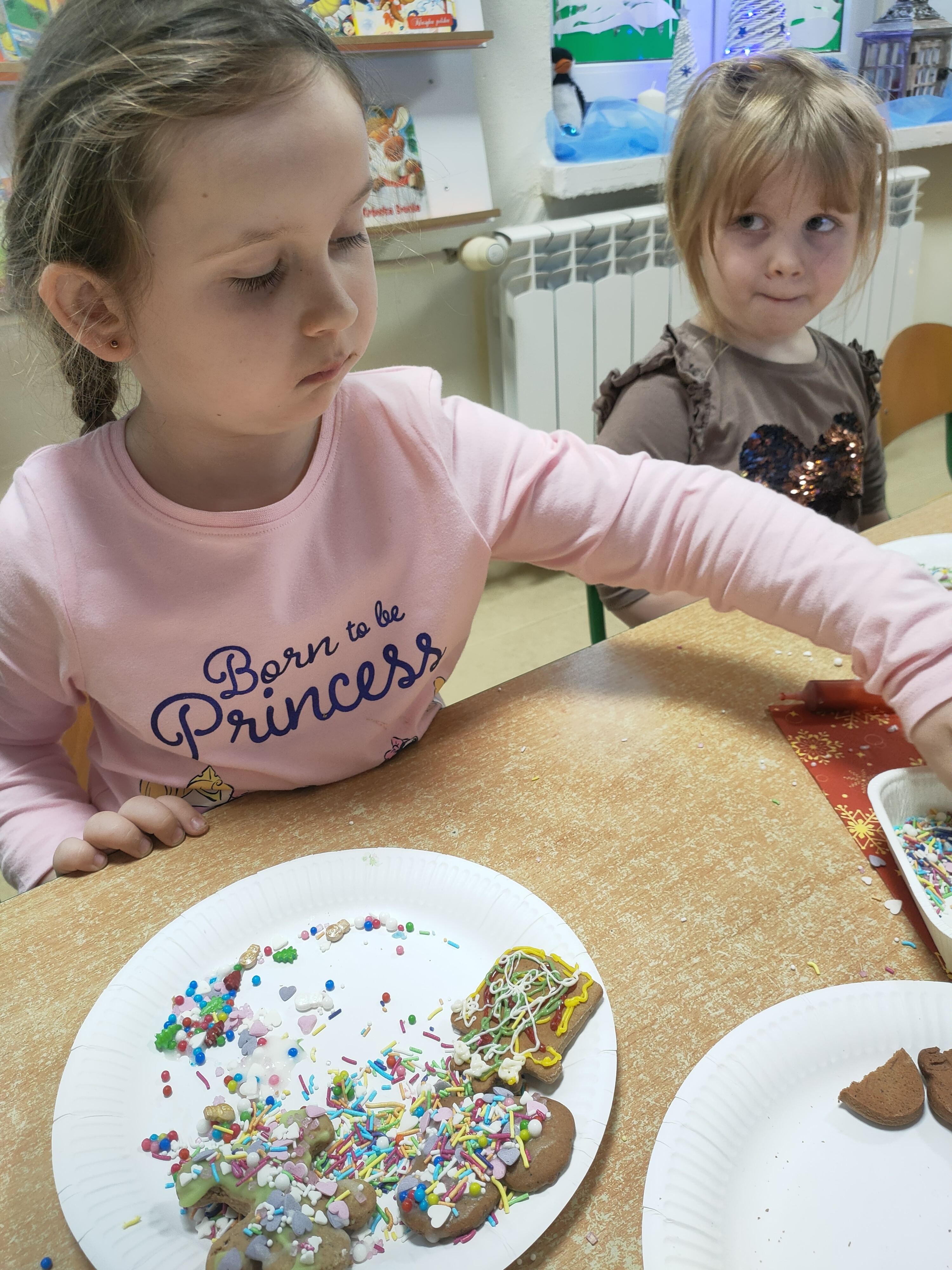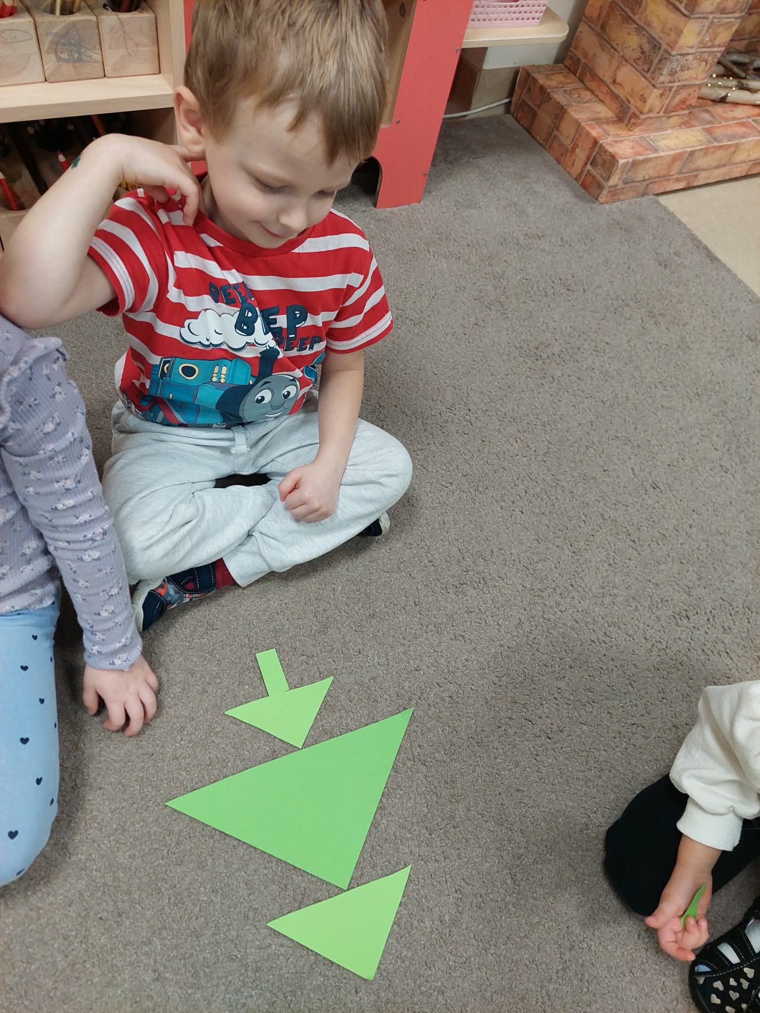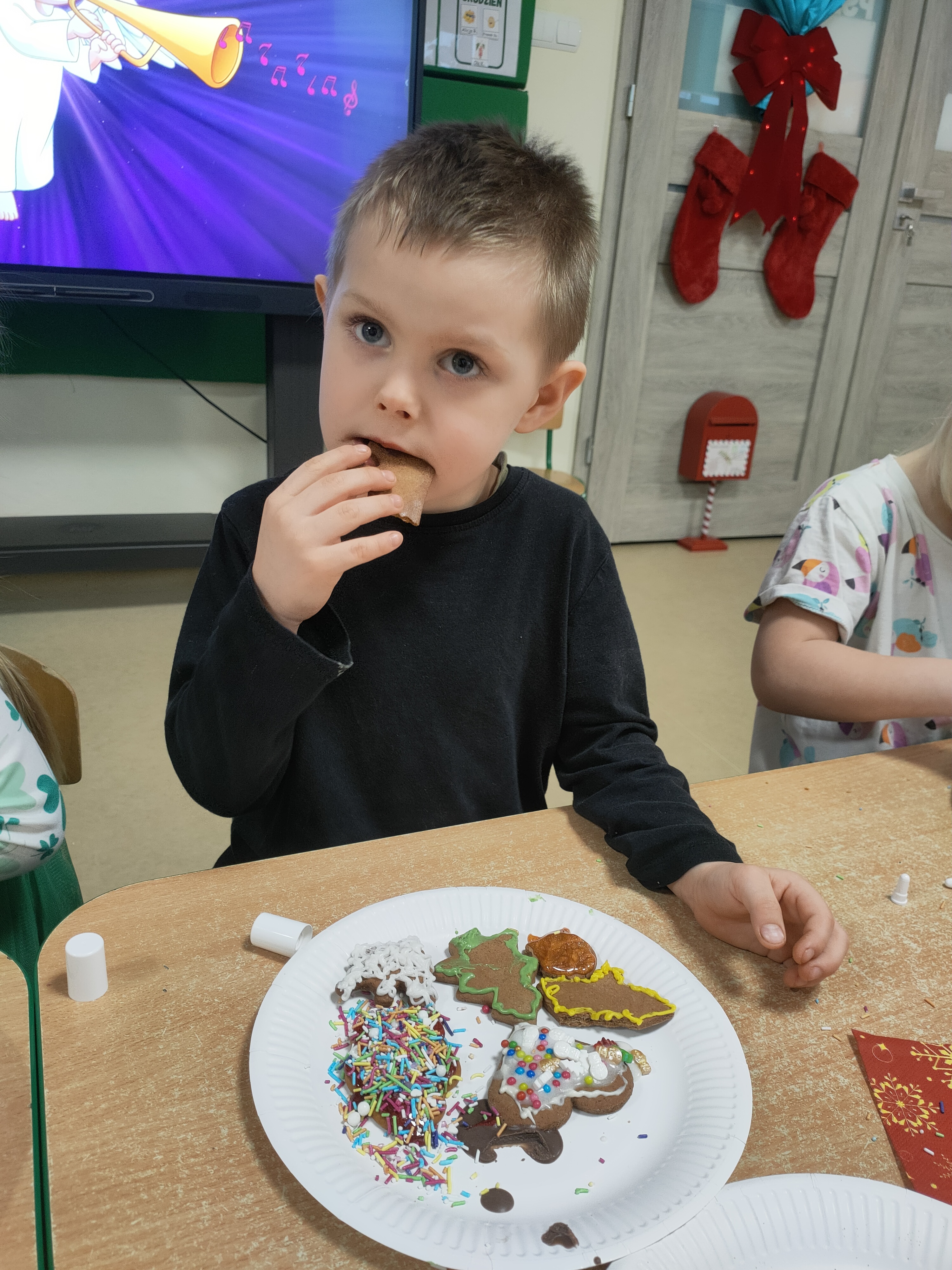 Nasza grupa przygotowywała się do zbliżających się świąt. Z tej okazji dzieci z zaangażowaniem wzięły się za porządki w sali oraz wykonywały choinki z figur geometrycznych. Aby jeszcze bardziej poczuć magię świąt, dziś ozdabialiśmy i dekorowaliśmy pierniczki, które można podziwiać na zdjęciach.