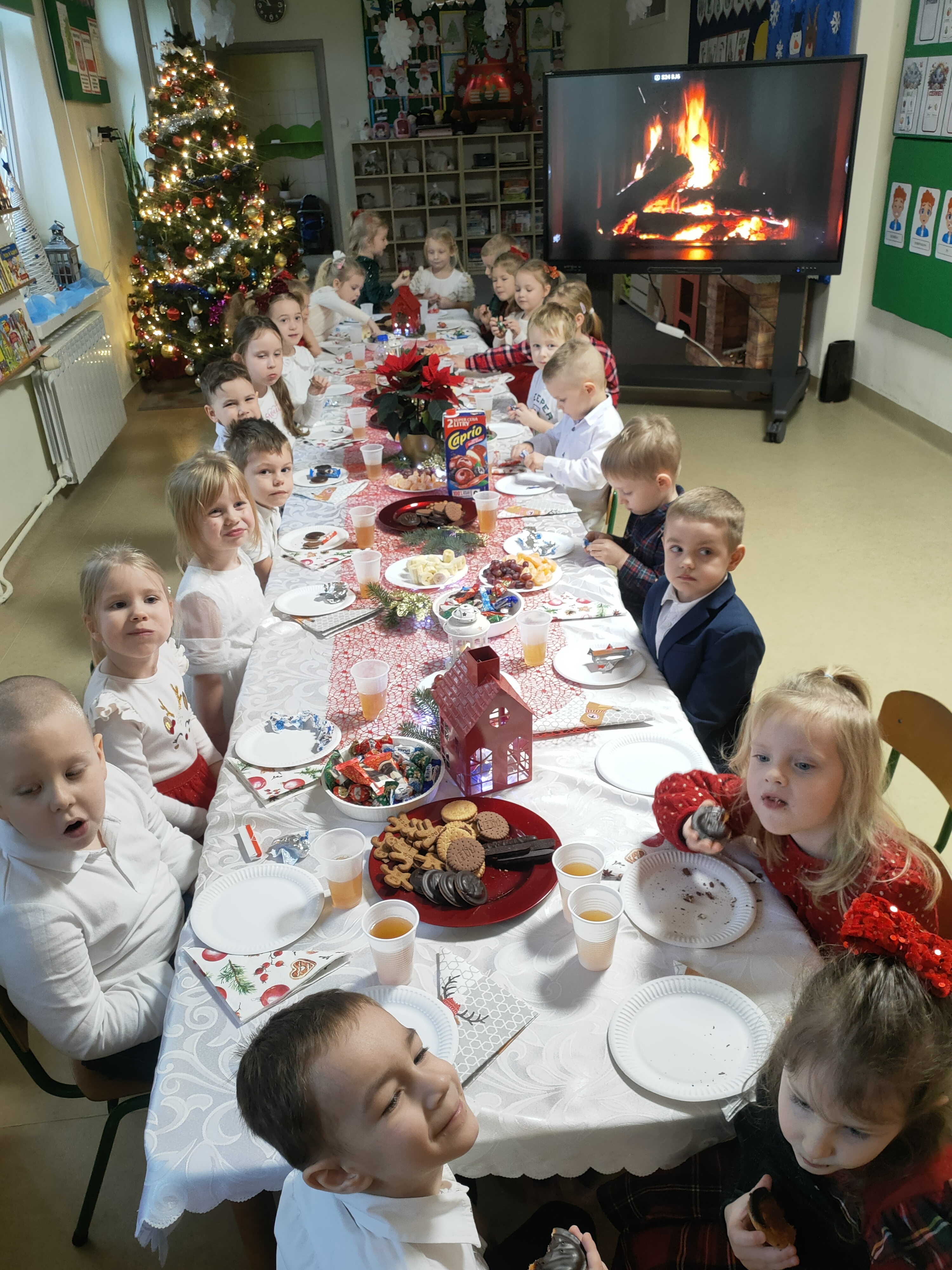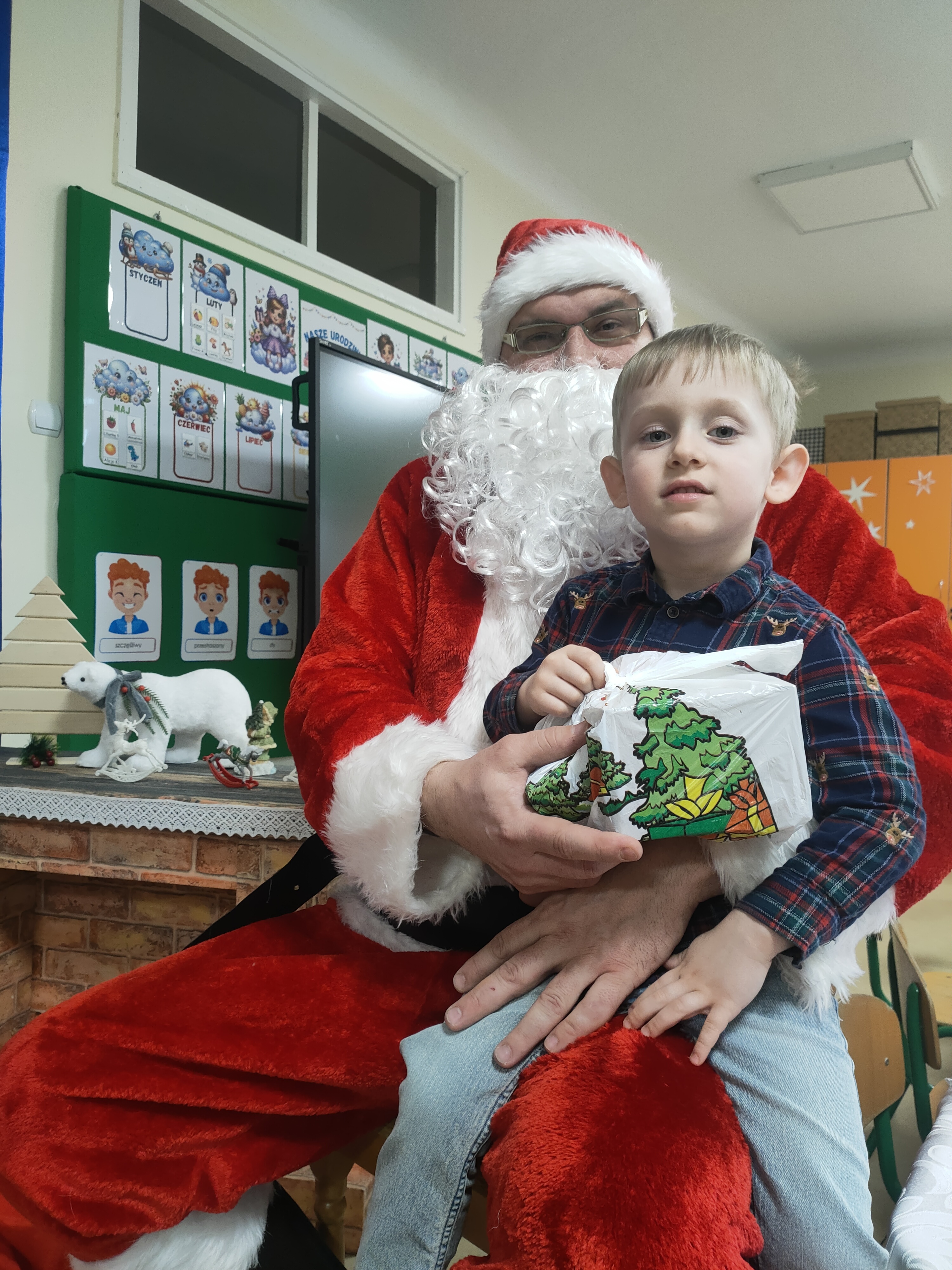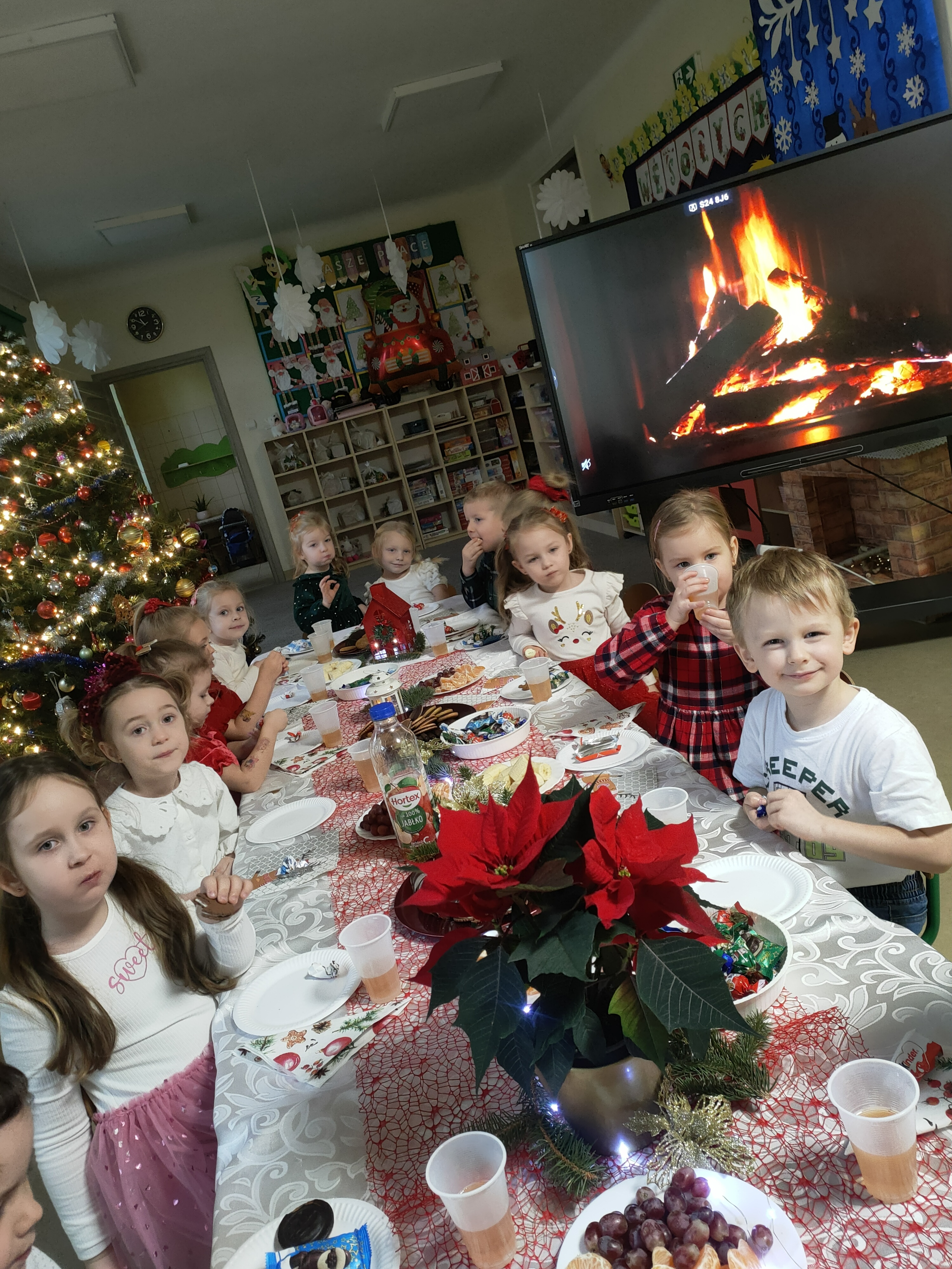 Dziś dzieci z grupy Pszczółki świętowały swoją przedszkolną Wigilię. W tym wyjątkowym dniu nie zabrakło wizyty Świętego Mikołaja, który obdarował dzieci drobnymi upominkami, wywołując wiele radości i uśmiechów.