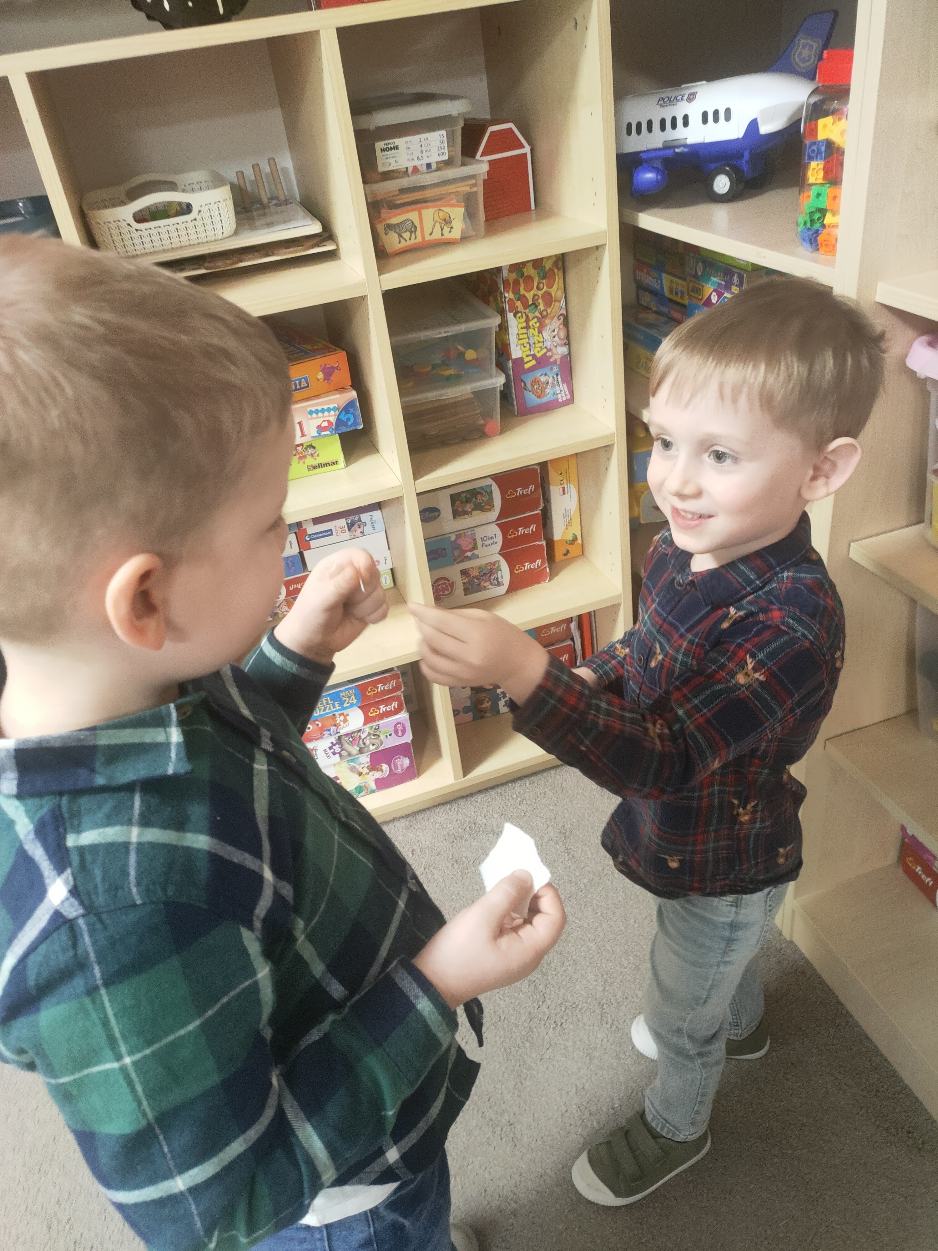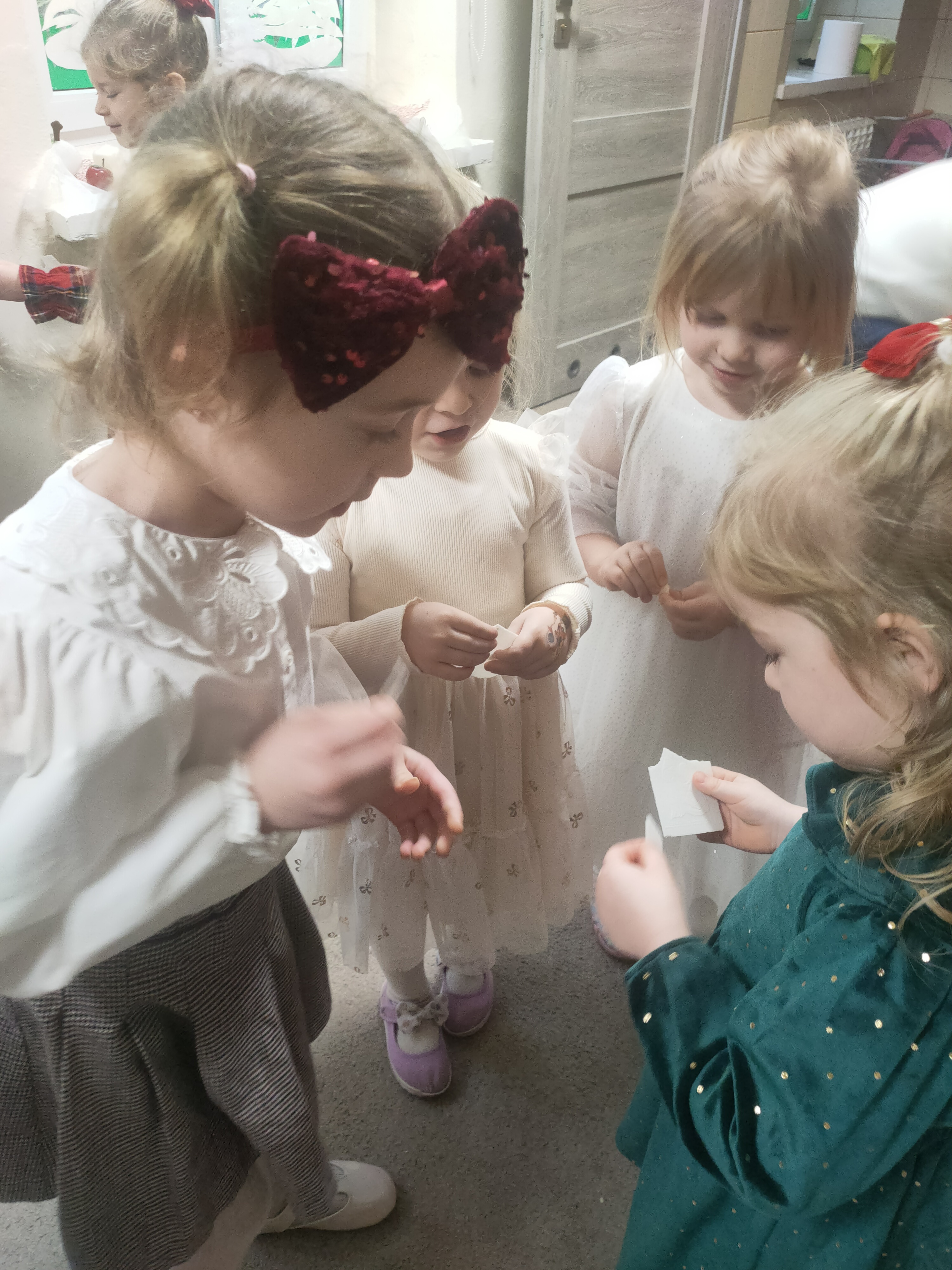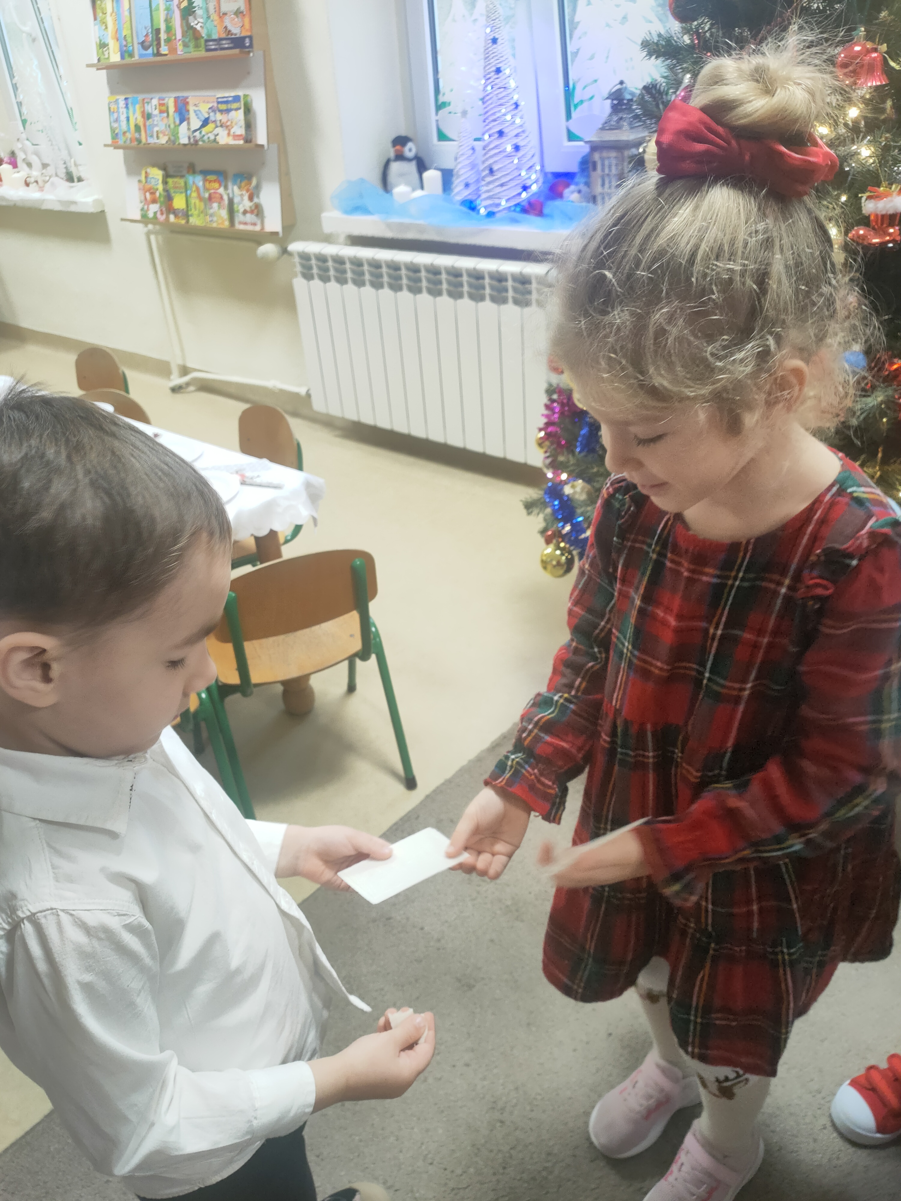Dziś dzieci z grupy Pszczółki świętowały swoją przedszkolną Wigilię. W tym wyjątkowym dniu nie zabrakło wizyty Świętego Mikołaja, który obdarował dzieci drobnymi upominkami, wywołując wiele radości i uśmiechów.
