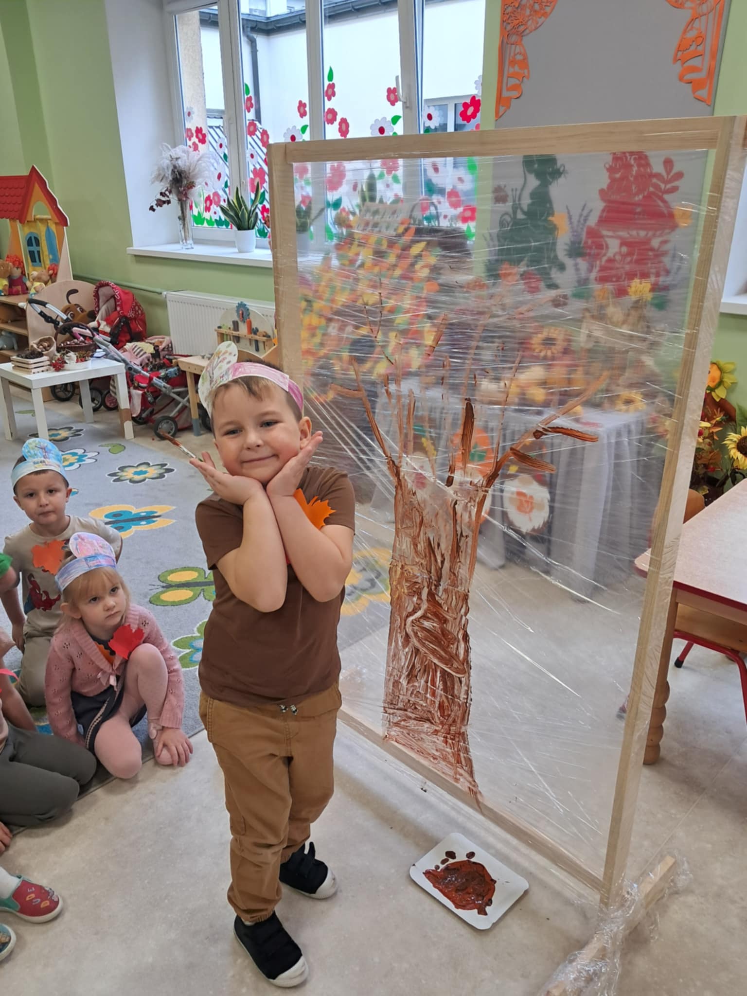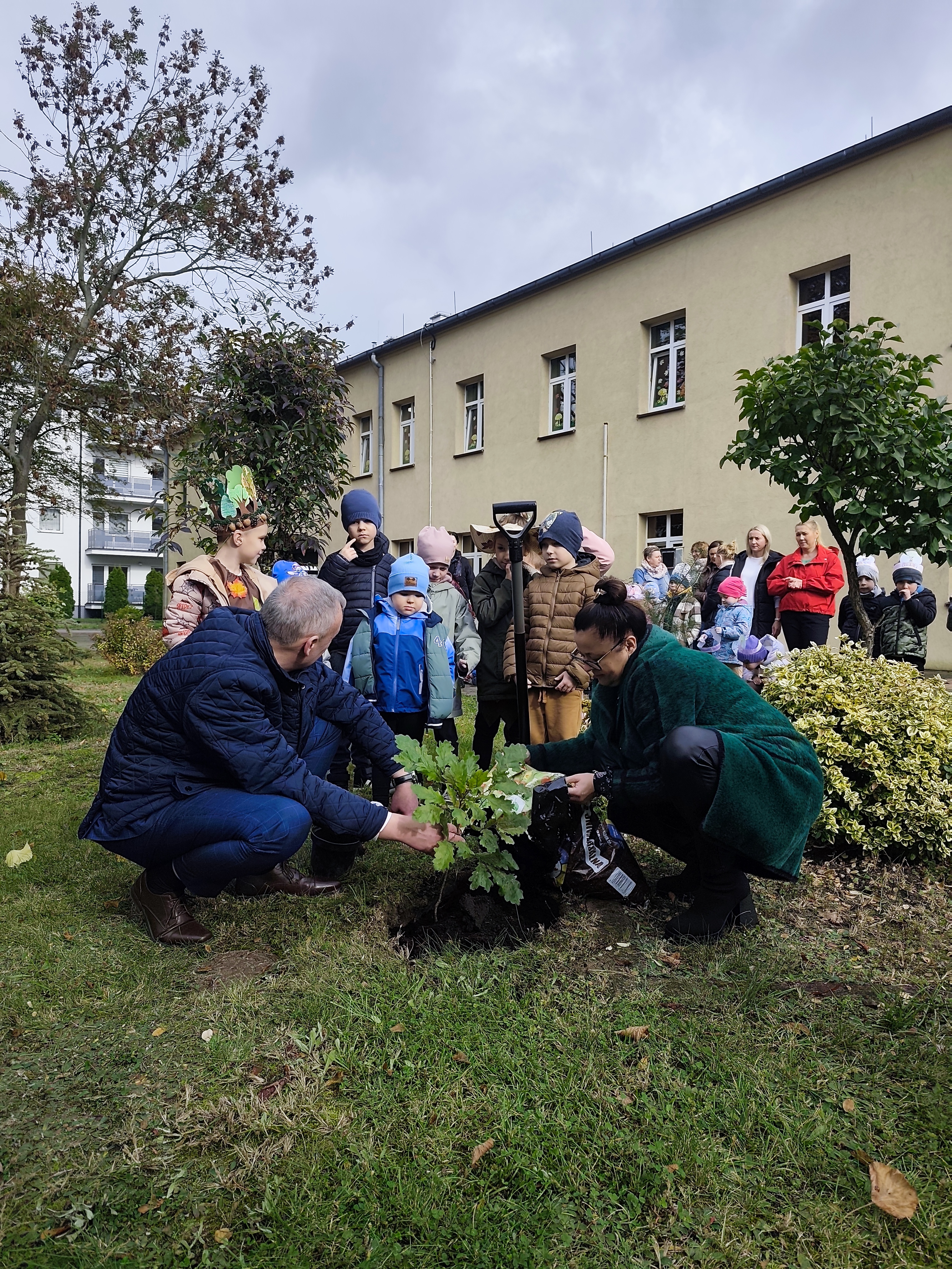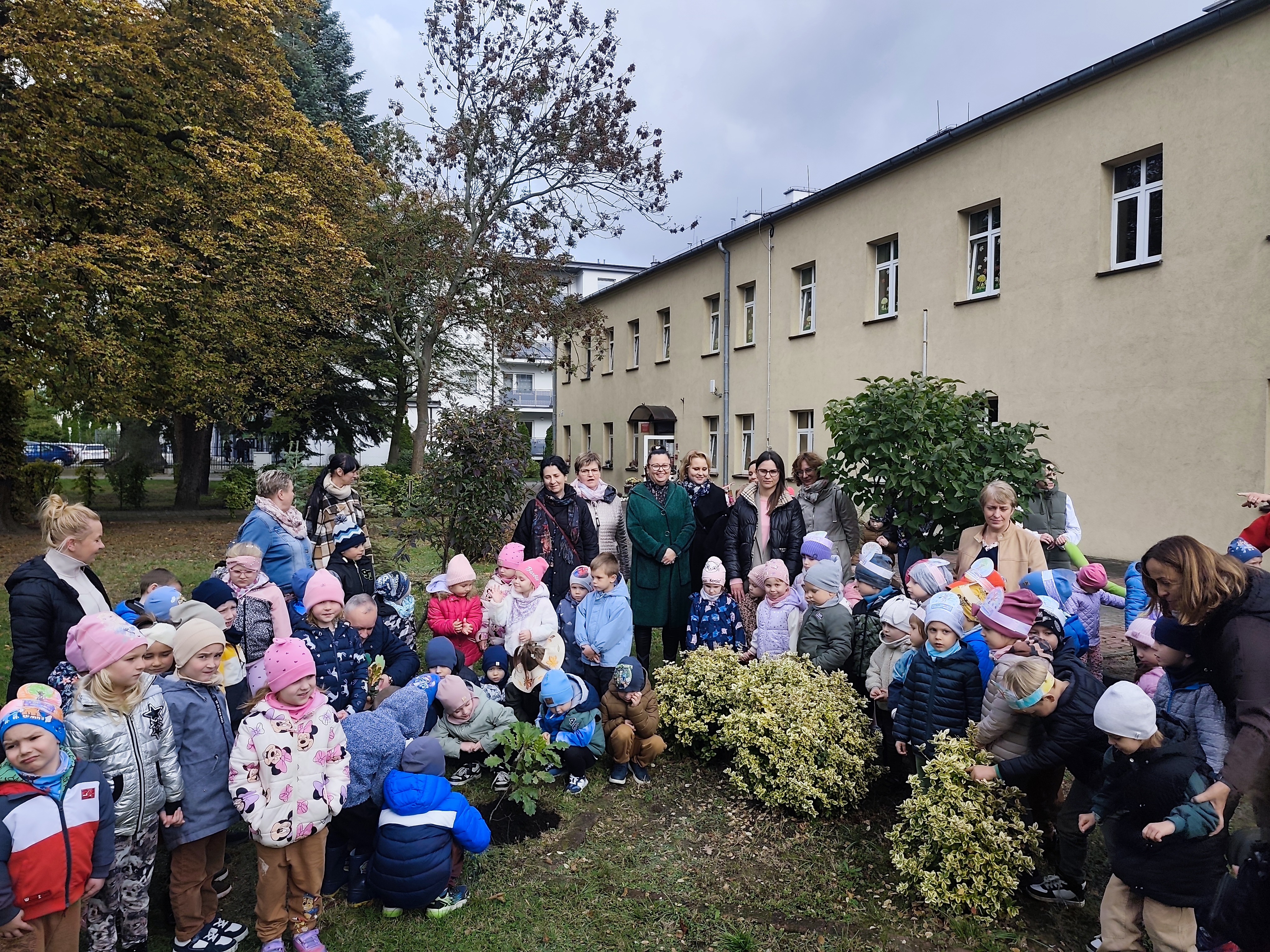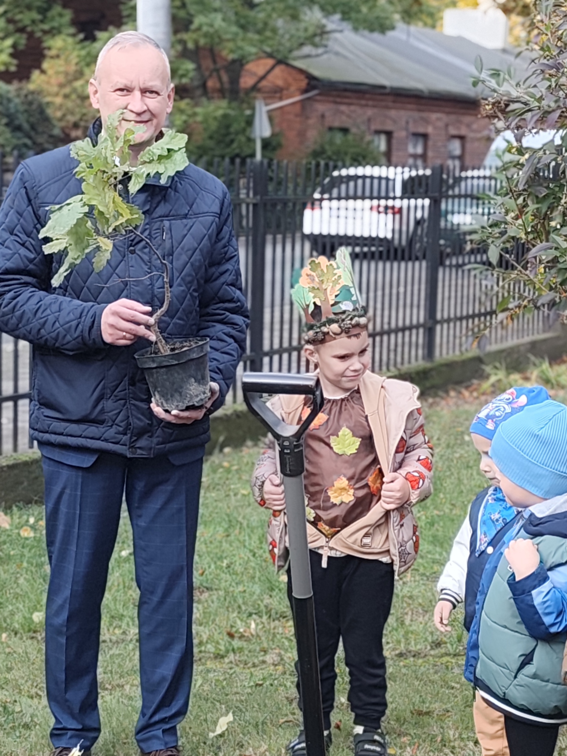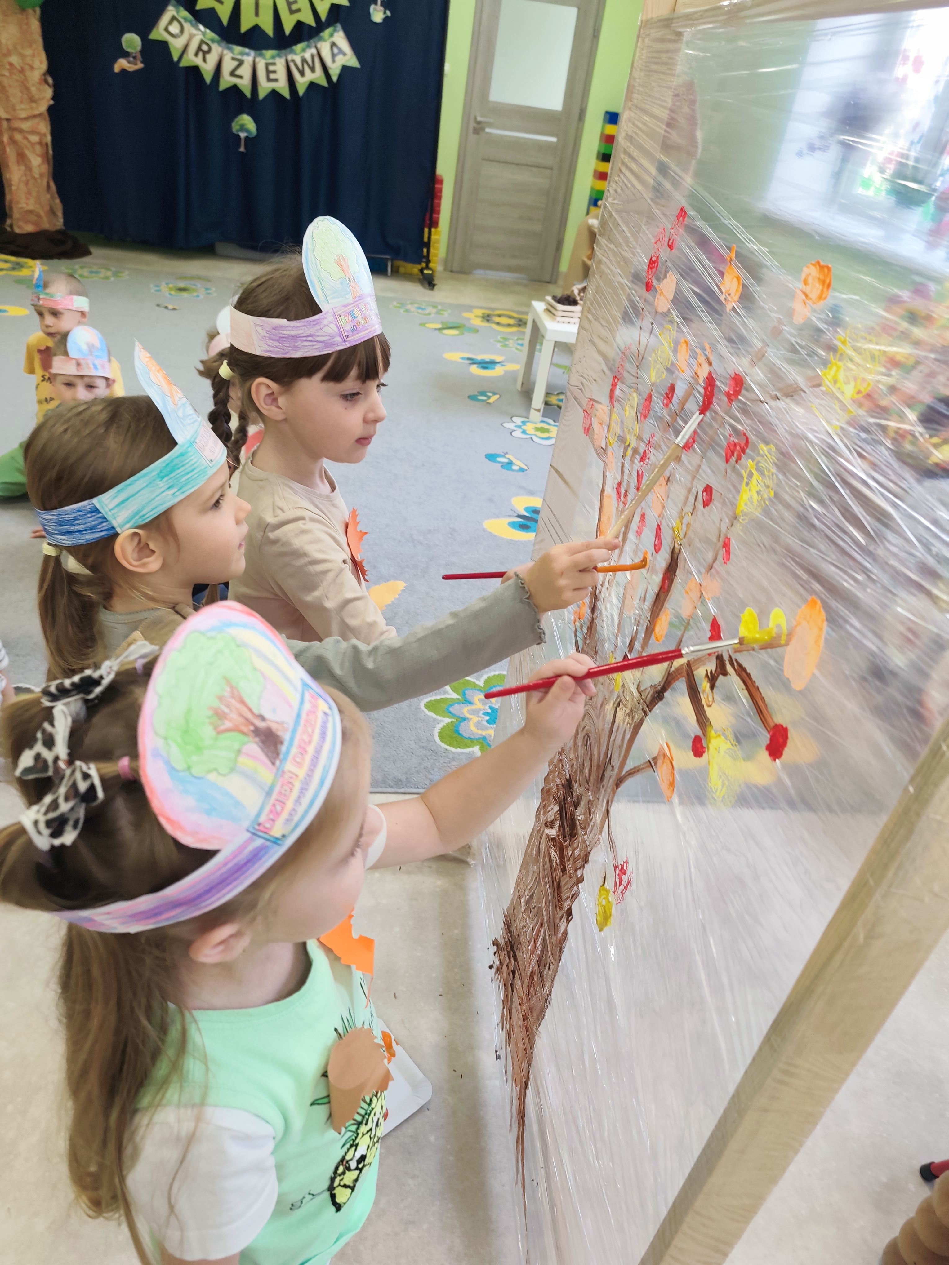 Nie zabrakło również działań plastycznych i ekologicznych – dzieci wykonały piękne prace przedstawiające kolorowe drzewa, a w ogrodzie przedszkolnym wspólnie z Panią dyrektor naszego przedszkola Moniką Brudnicką oraz z Panem Arkadiuszem Gralakiem - burmistrzem miasta Aleksandrów Kujawski, zasadziliśmy małe drzewko, które będzie rosnąć razem z nami!