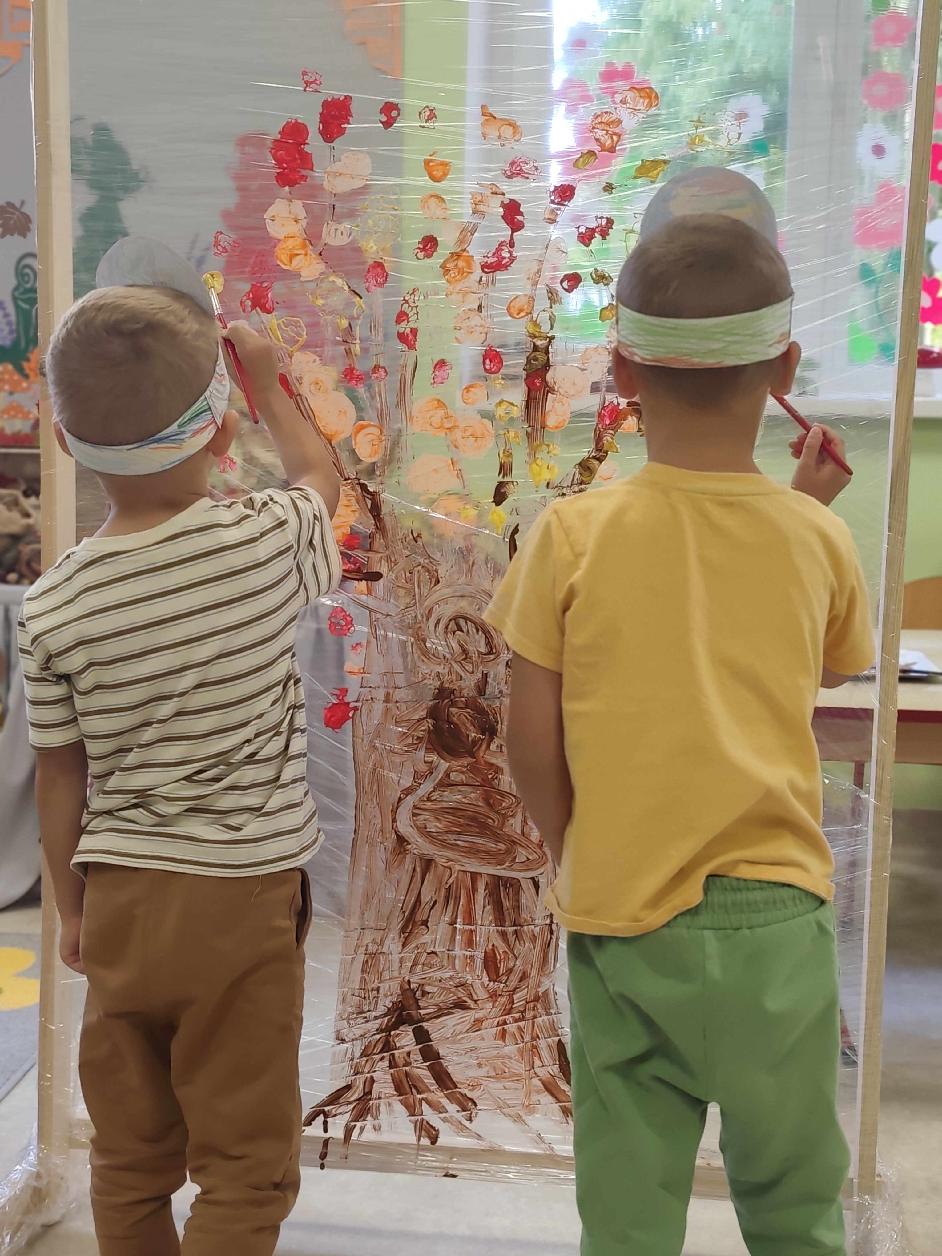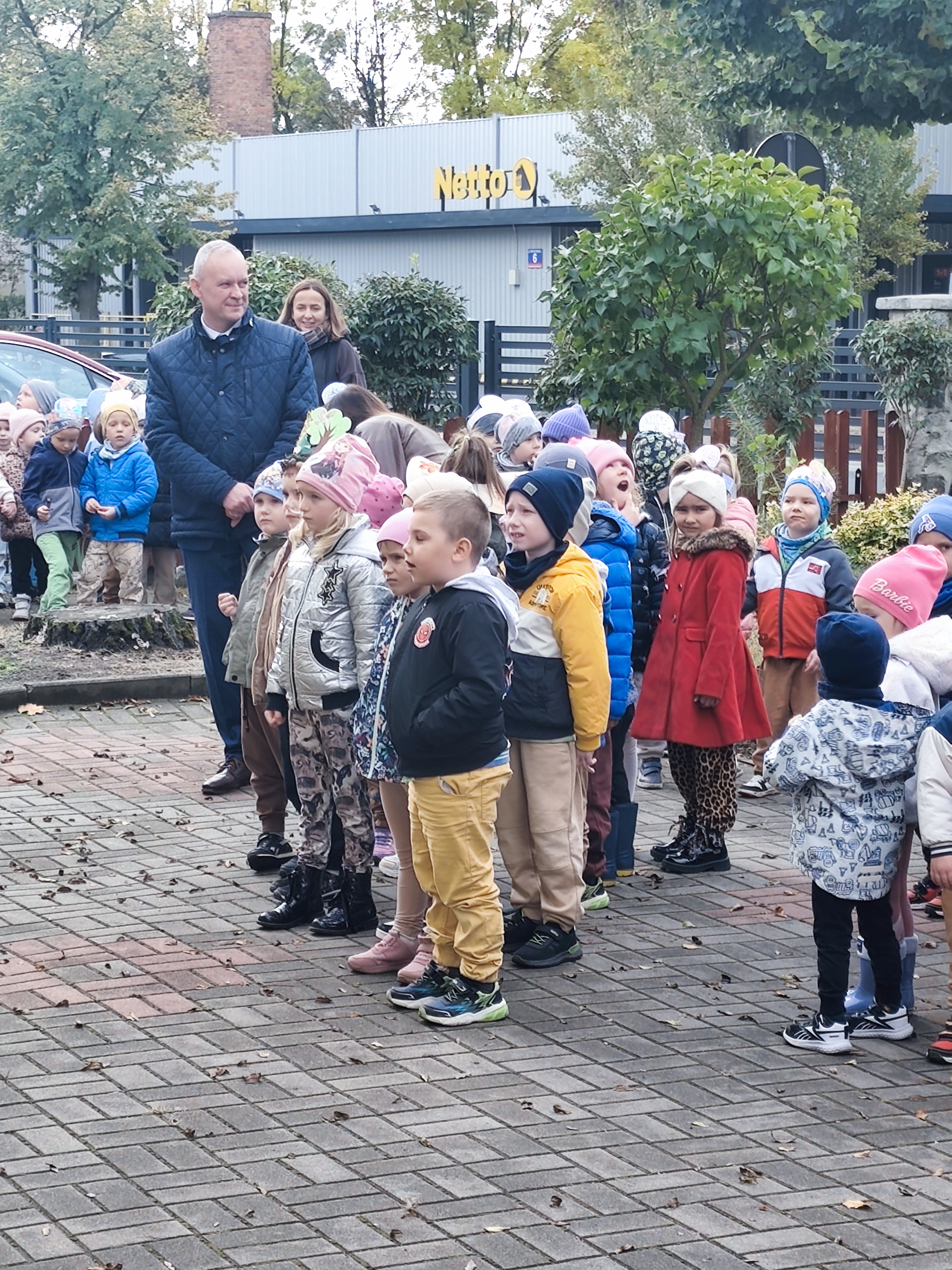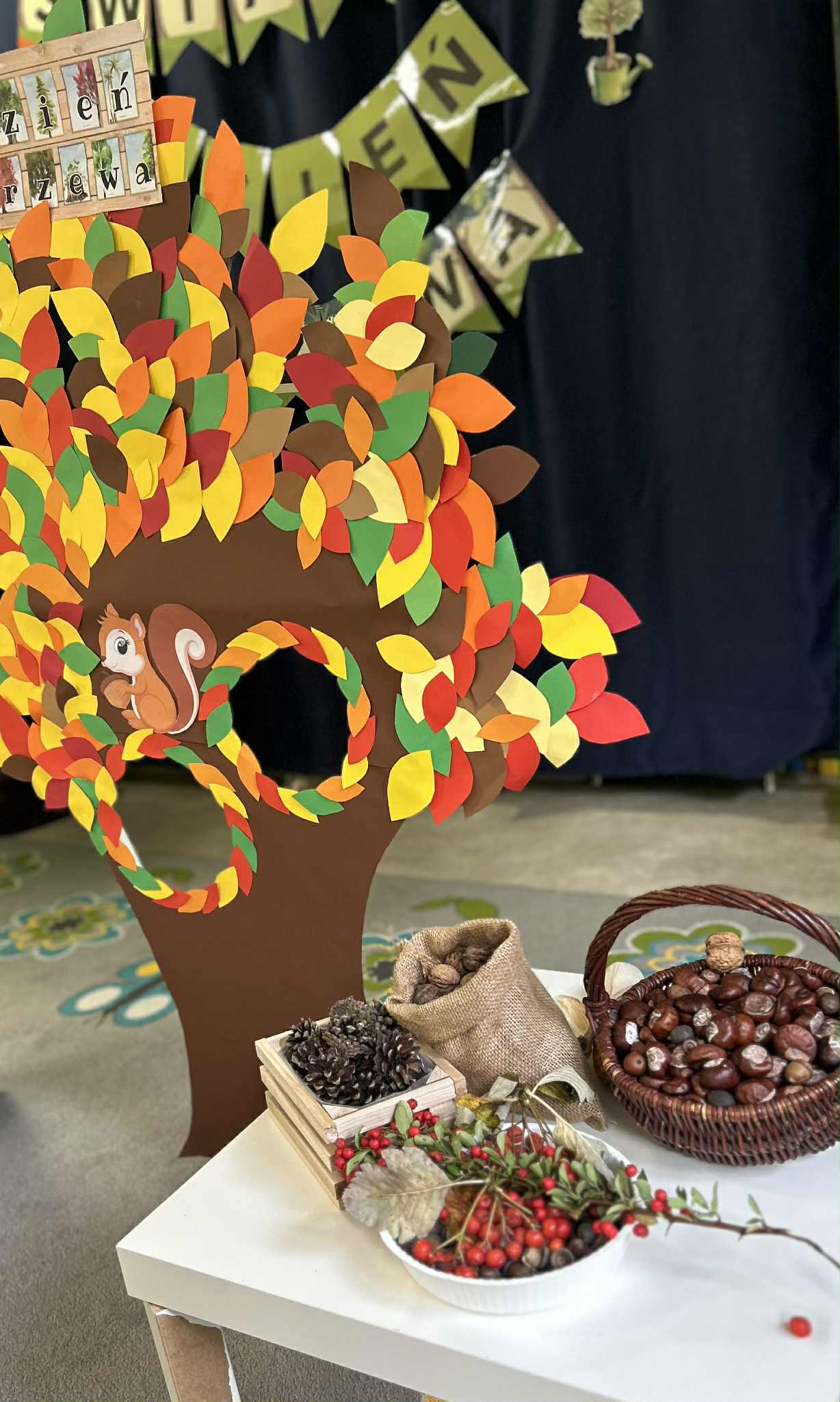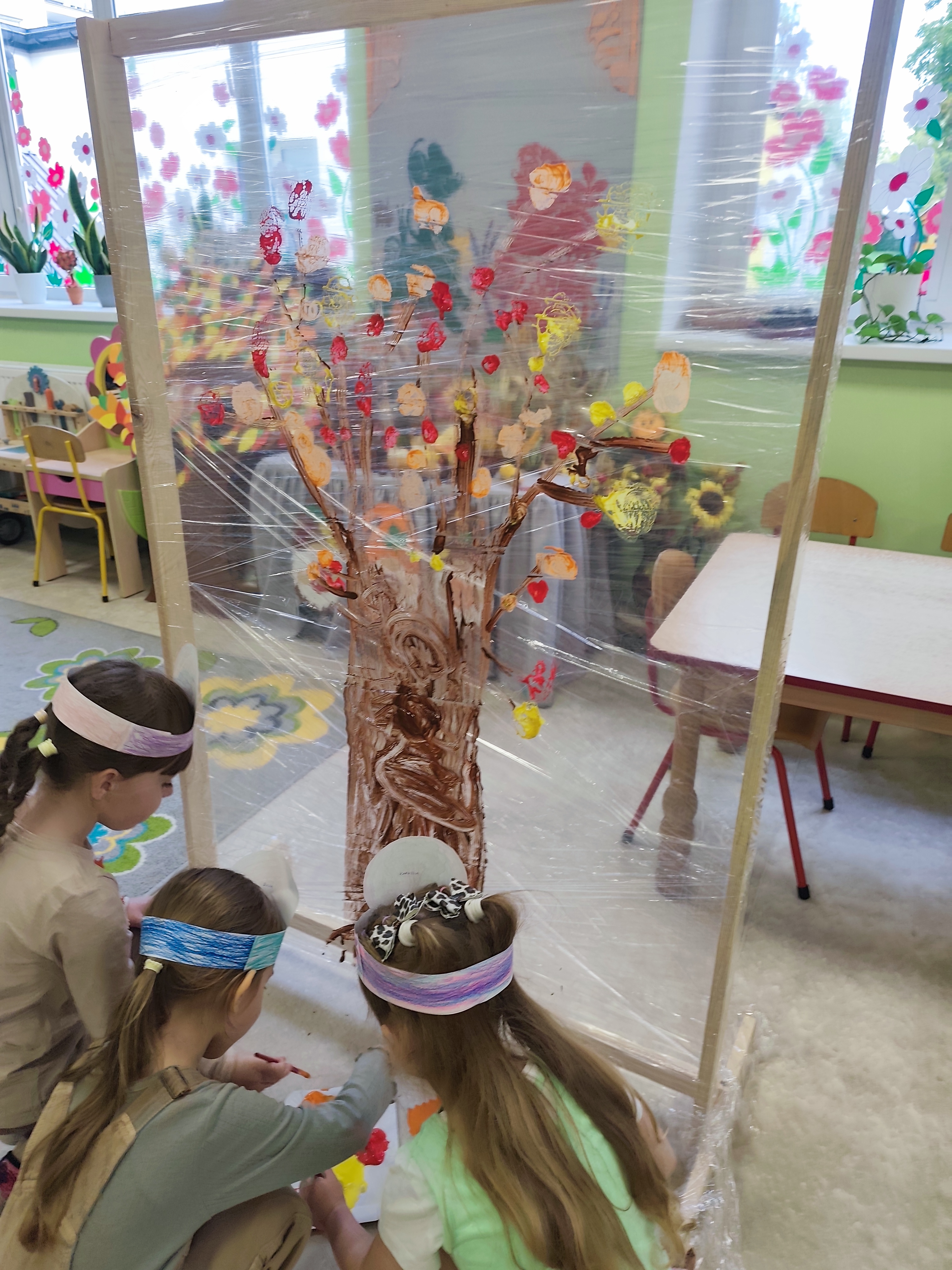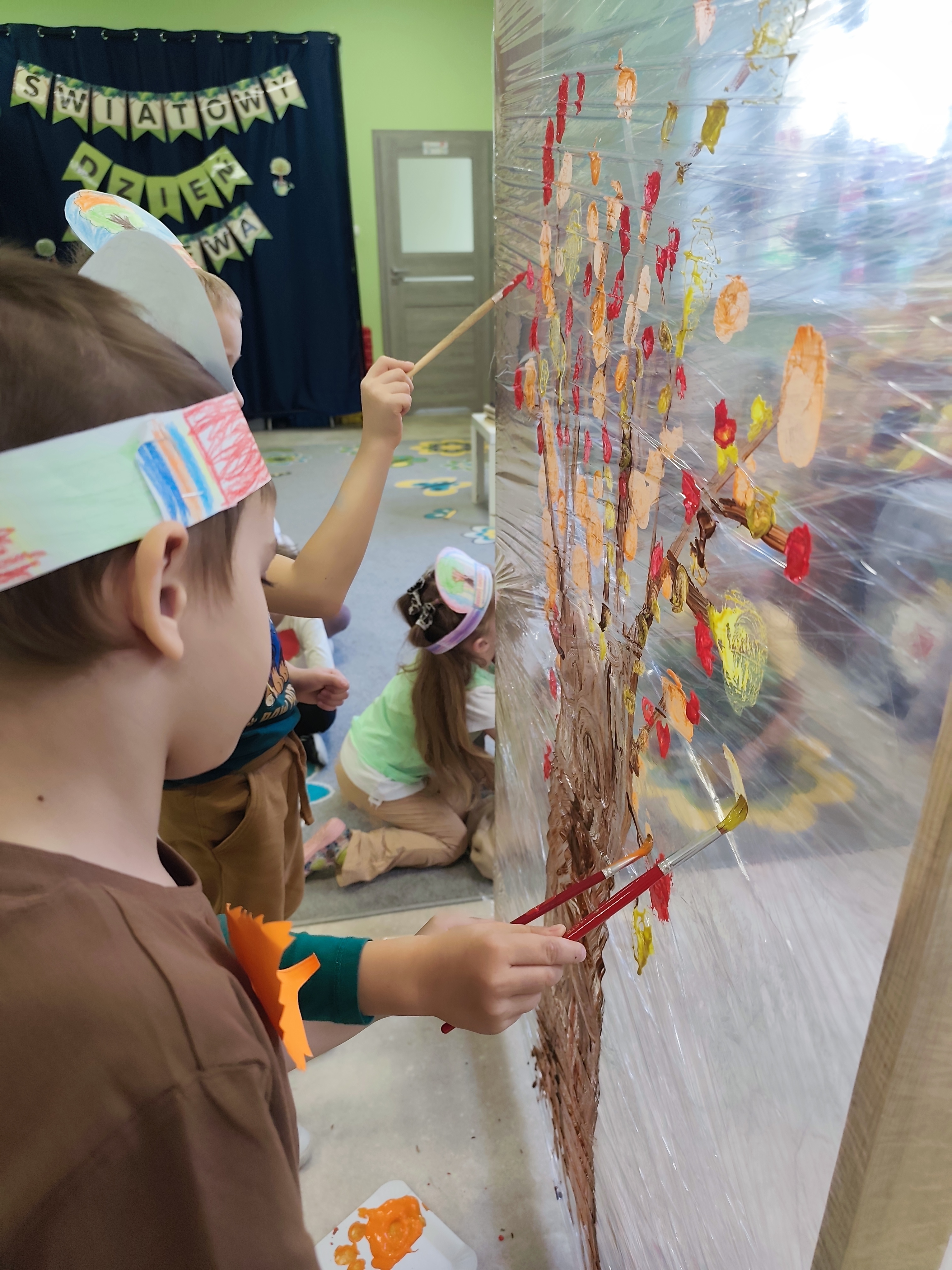 Nie zabrakło również działań plastycznych i ekologicznych – dzieci wykonały piękne prace przedstawiające kolorowe drzewa, a w ogrodzie przedszkolnym wspólnie z Panią dyrektor naszego przedszkola Moniką Brudnicką oraz z Panem Arkadiuszem Gralakiem - burmistrzem miasta Aleksandrów Kujawski, zasadziliśmy małe drzewko, które będzie rosnąć razem z nami!