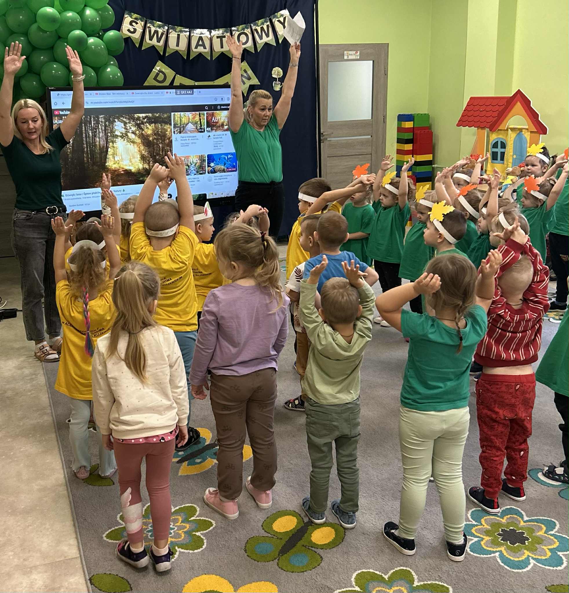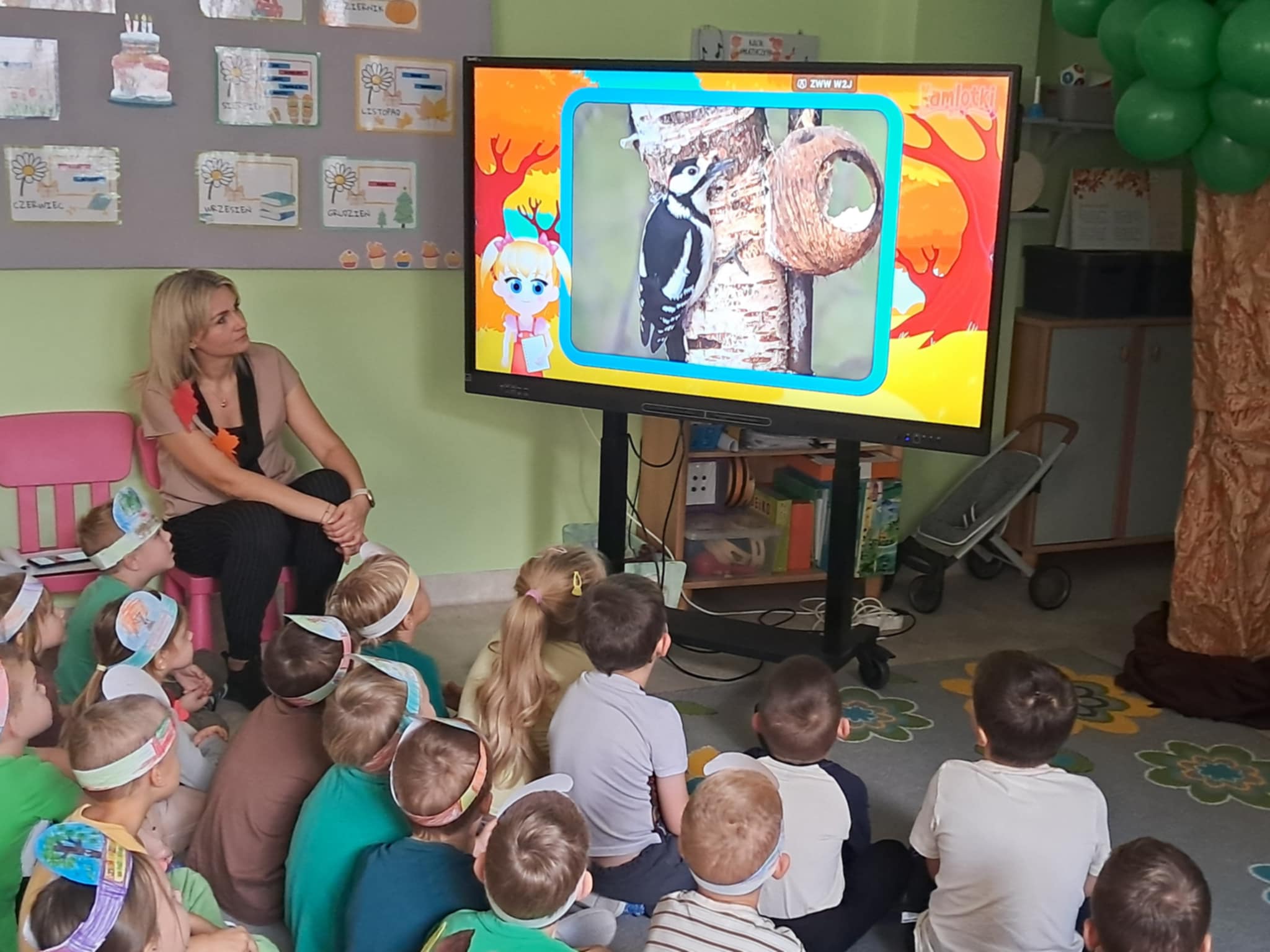 Dzieci z wielkim zainteresowaniem uczestniczyły w rozmowach o tym, dlaczego warto sadzić i chronić drzewa, a także poznały różne ich gatunki. Przedszkolaki z radością rozwiązywały zagadki przyrodnicze, oglądały film edukacyjny.