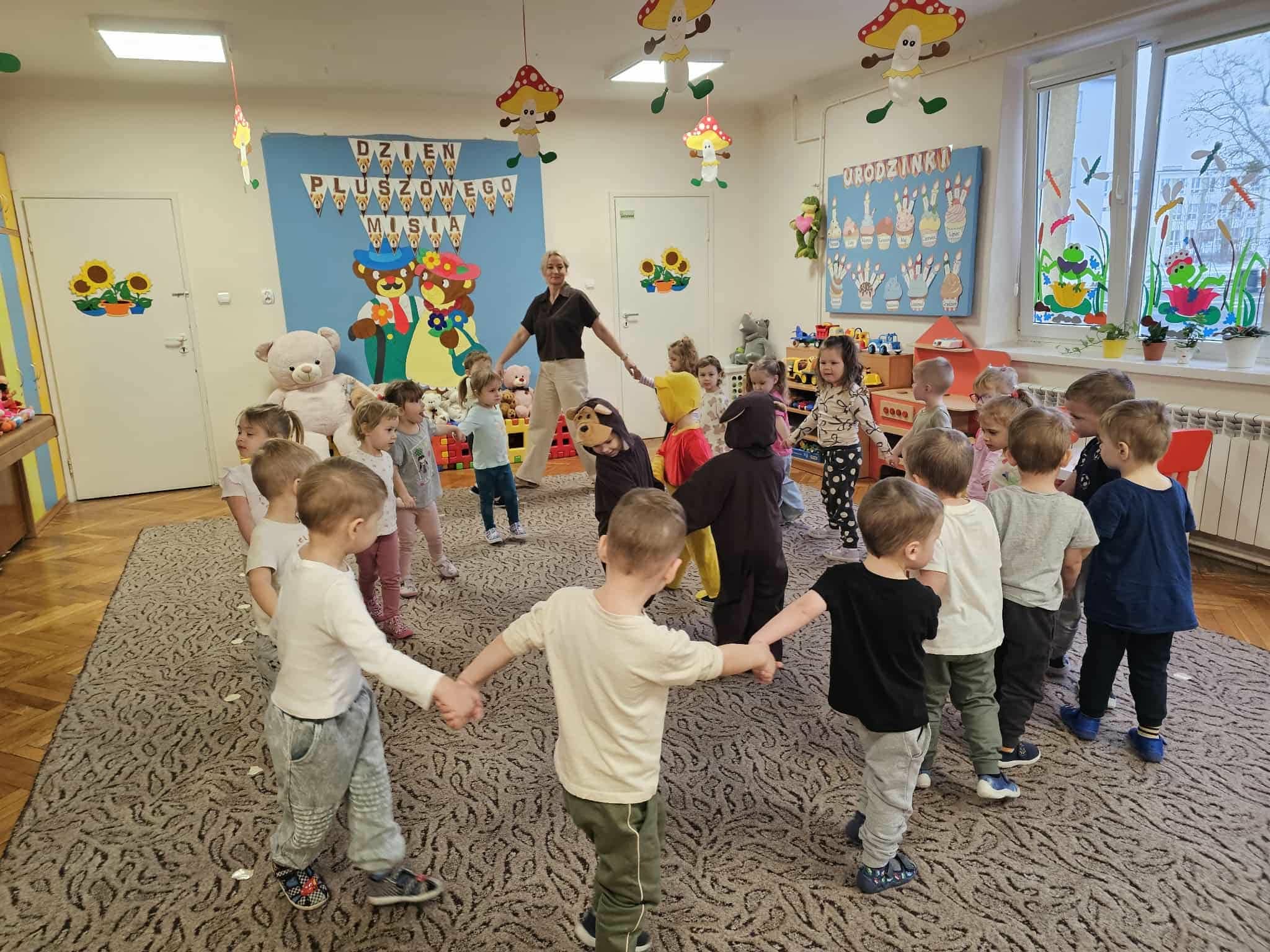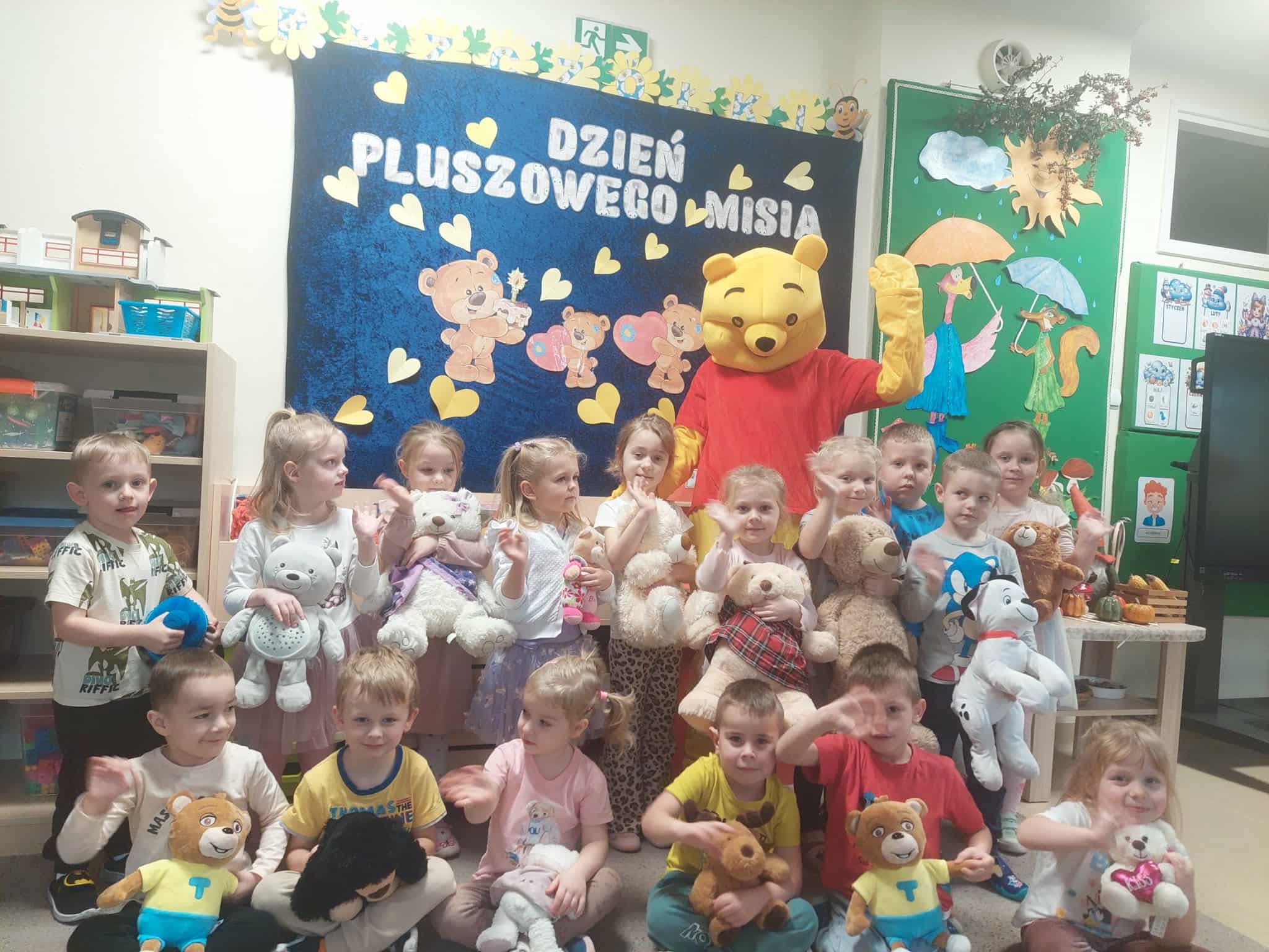 Dziś w naszym przedszkolu obchodziliśmy Światowy Dzień Pluszowego Misia. Dzieci przyniosły swoje ulubione pluszaki, które brały udział w zabawach, tańcach i wspólnym czytaniu „misiowych” opowieści. Rozmawialiśmy także o tym, skąd się wzięły pluszowe misie i dlaczego są tak ważnymi przyjaciółmi dzieci. Na zakończenie każde dziecko wykonało pracę plastyczną związaną z misiem a nawet misiowe kanapki.