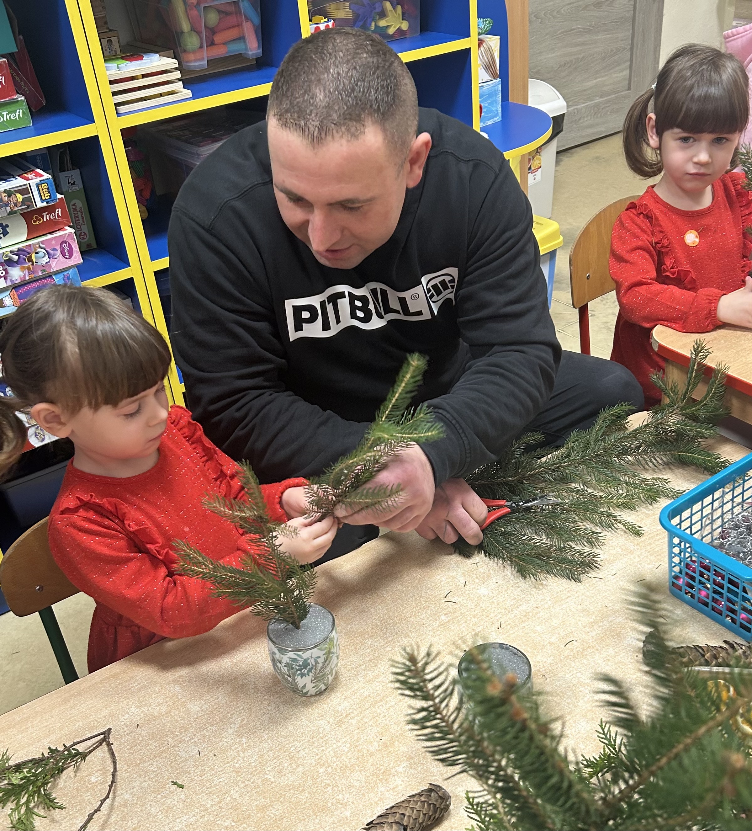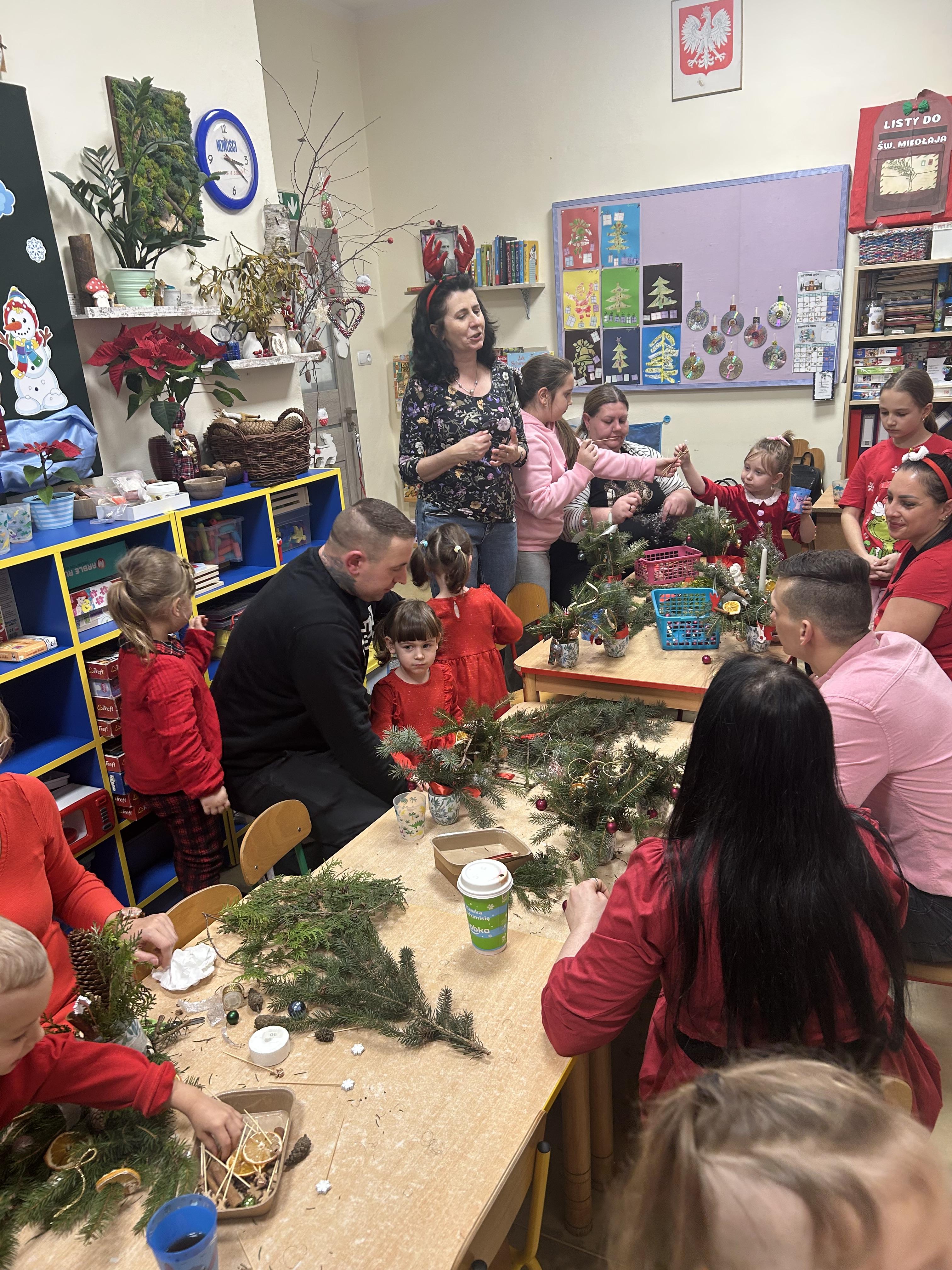 W grupie Myszki odbyły się wyjątkowe warsztaty świąteczne, które wypełniły salę ciepłem, radością i bożonarodzeniową atmosferą. Dzieci wraz z rodzicami wspólnie tworzyły świąteczne dekoracje, dzieląc się uśmiechem, zaangażowaniem i magią nadchodzących Świąt. Był to piękny czas wspólnego bycia razem, pełen serdeczności, twórczej pracy i świątecznego nastroju.
