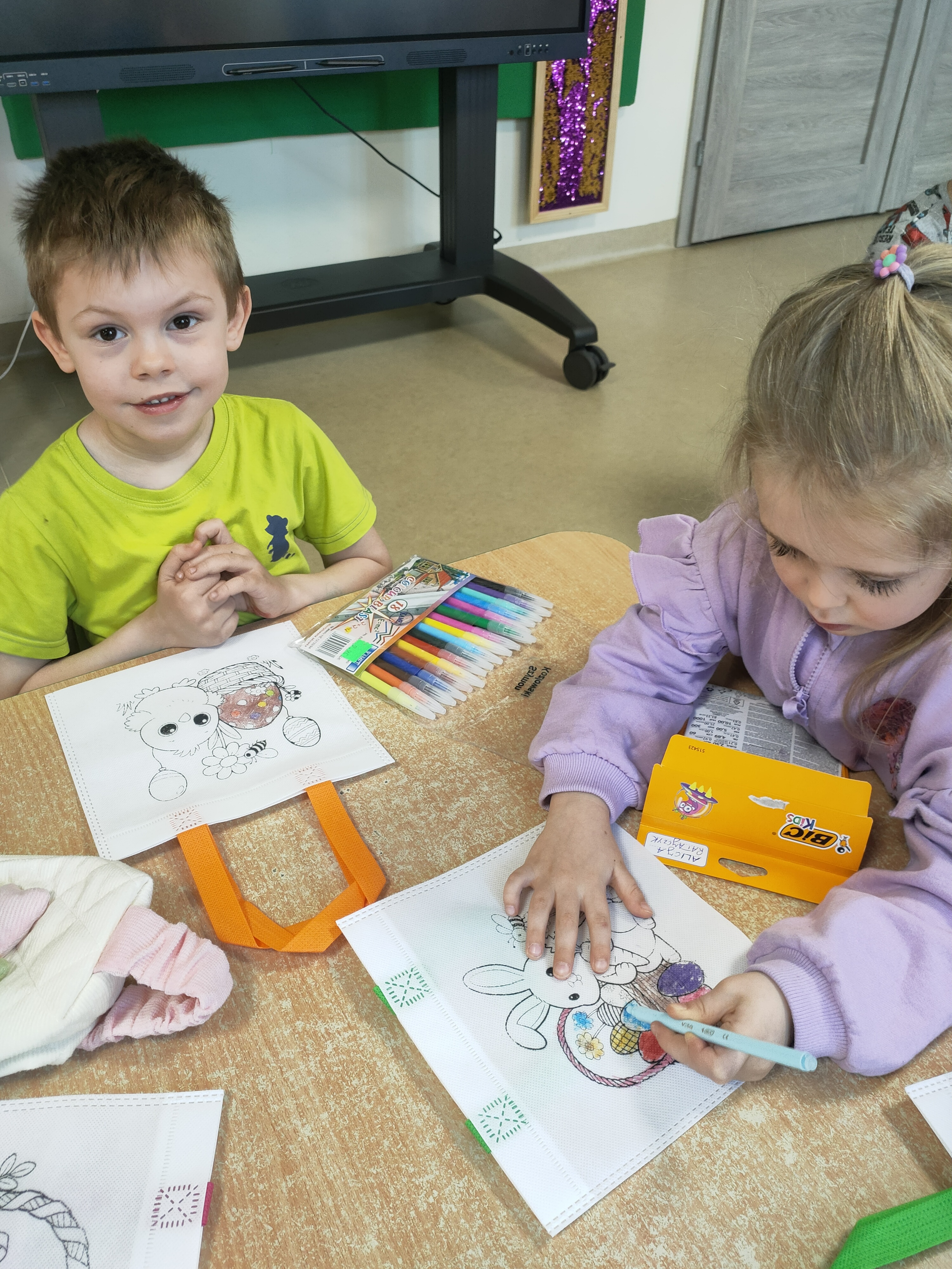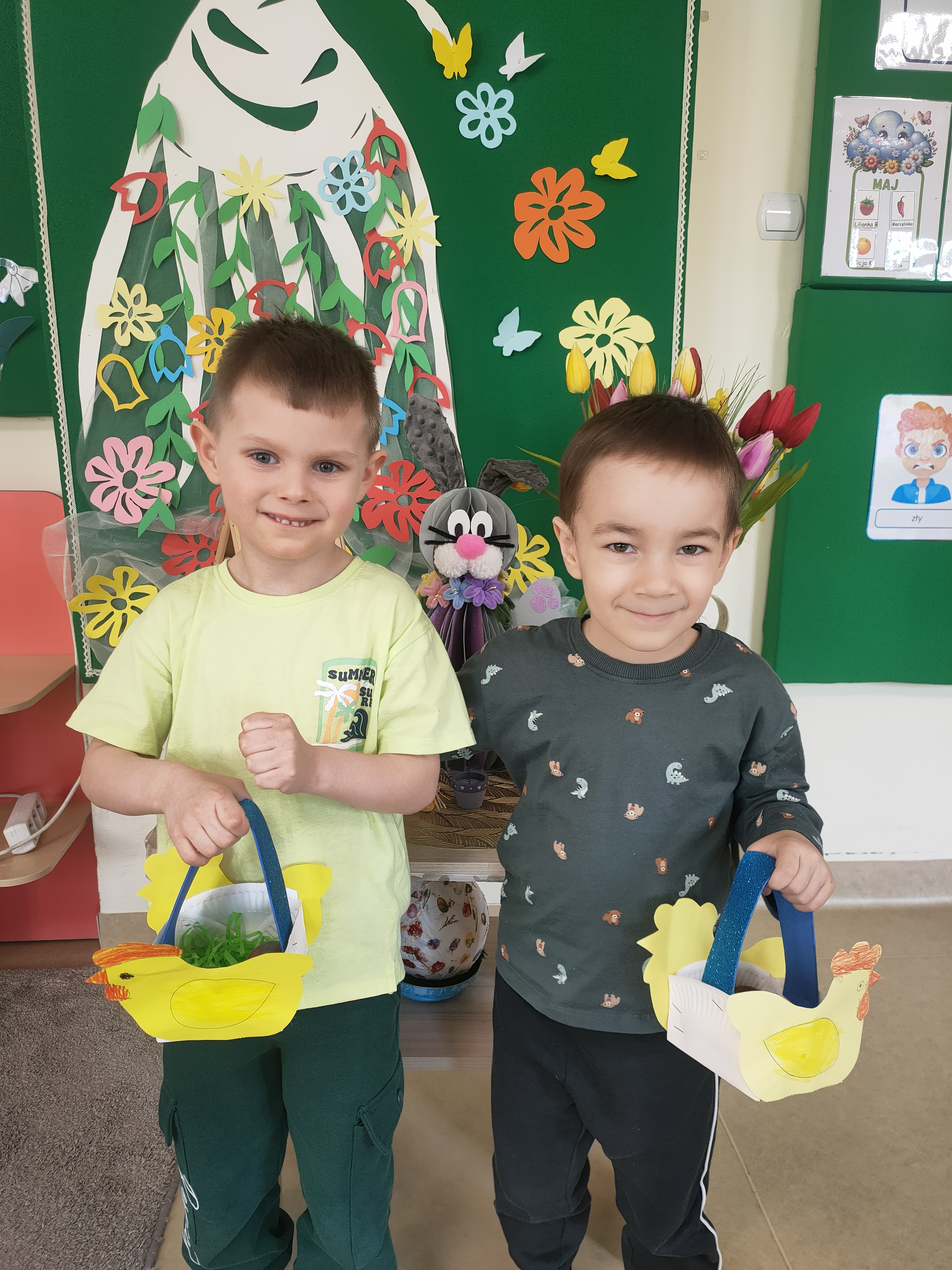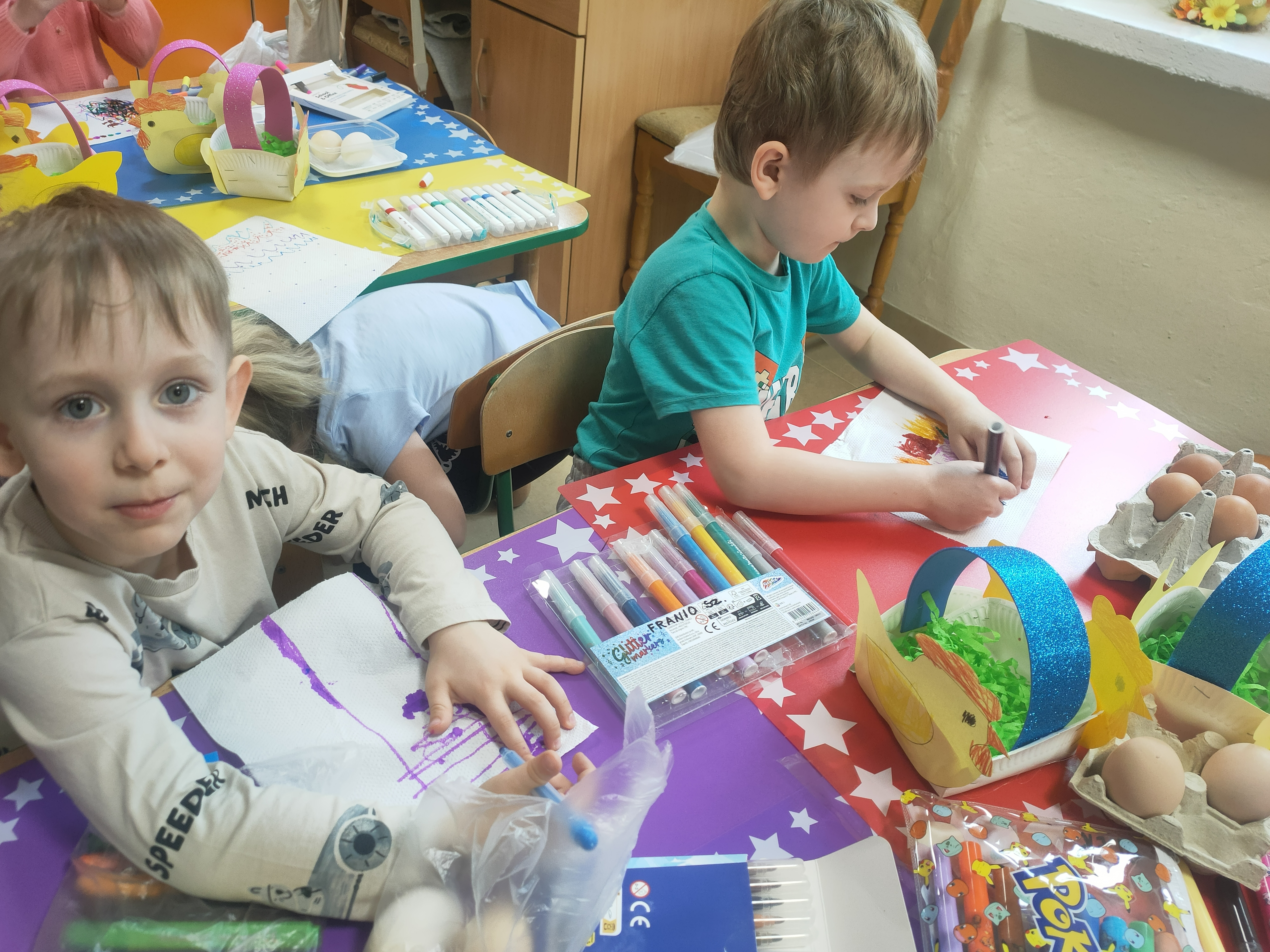 W tym tygodniu nasza grupa poświęciła czas tematyce związanej z Wielkanocą. Rozmawialiśmy o tradycjach wielkanocnych oraz o symbolach związanych z tym wyjątkowym świętem. Dzieci z dużym zaangażowaniem brały udział w różnych aktywnościach plastycznych. Wspólnie wykonywaliśmy wielkanocne torby, które dzieci ozdabiały według własnych pomysłów, a także malowaliśmy kolorowe pisanki. Zajęcia sprawiły dzieciom wiele radości i pozwoliły rozwijać ich kreatywność oraz zdolności manualne.