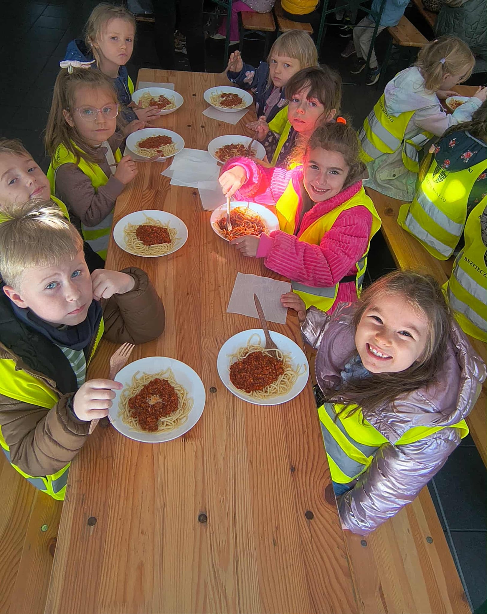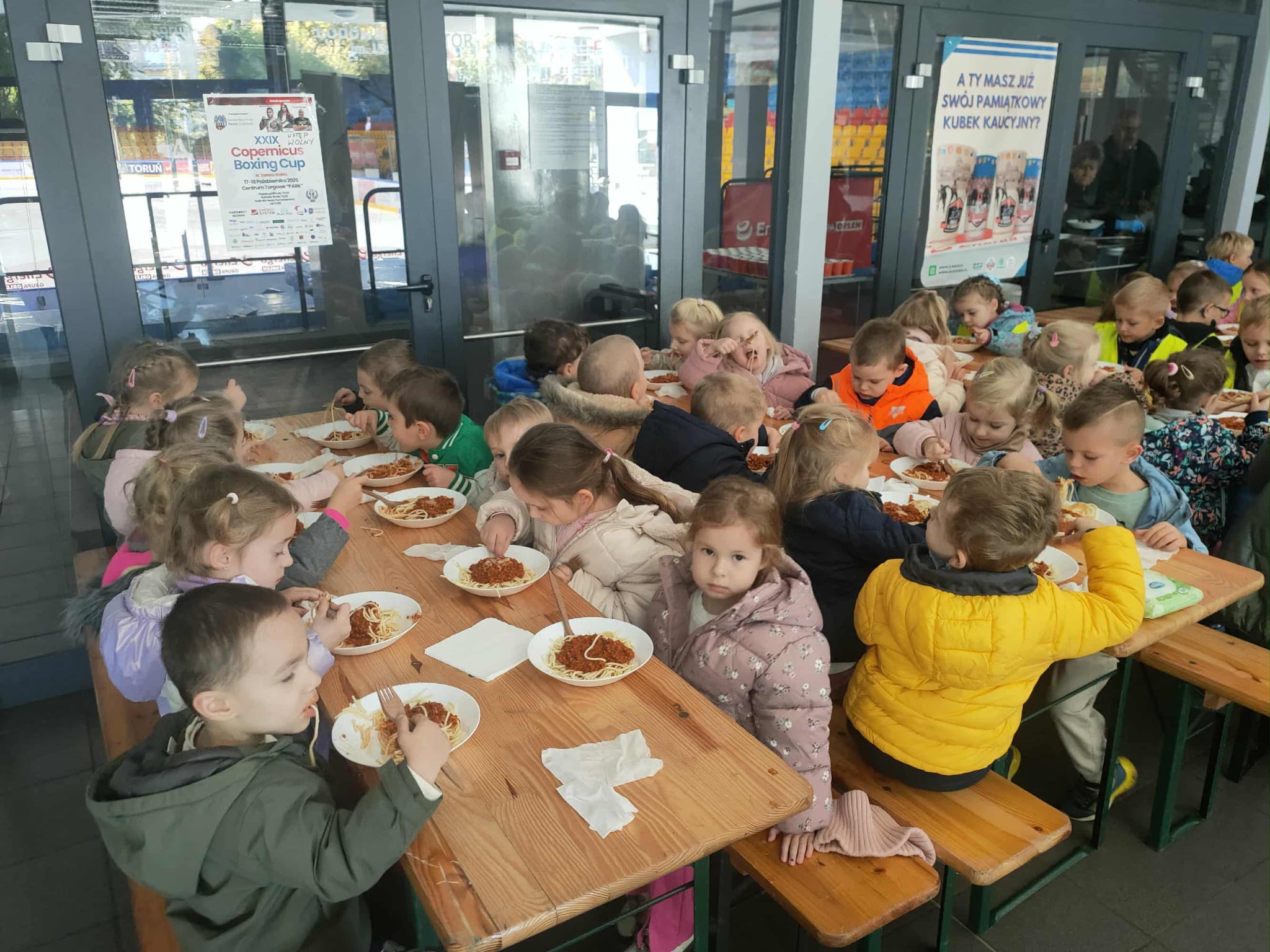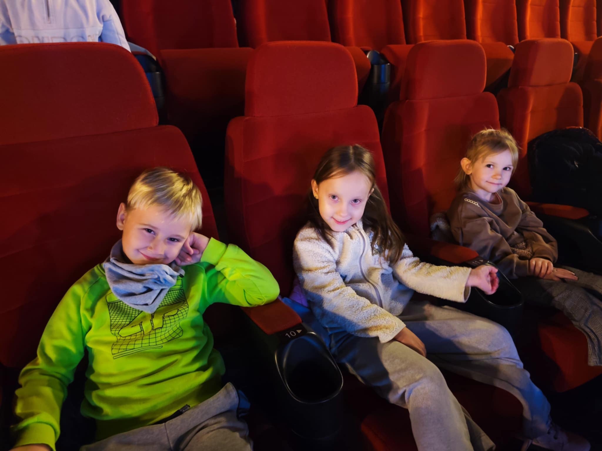 Dziś dzieci z grup Pszczółki, Stokrotki i Słowiki, biorące udział w projekcie „Dwujęzyczne Przedszkolaki Kujaw i Pomorza”, wybrały się na wycieczkę do Toruńskiego kina na bajkę pt. „Bluey – pobawimy się w szefa kuchni”. Przed rozpoczęciem seansu przedszkolaki wzięły udział w krótkich warsztatach z języka angielskiego, podczas których chętnie uczestniczyły w zabawach i utrwalały podstawowe słówka. Po obejrzeniu bajki dzieci udały się do bistro Mals, gdzie czekał na nie pyszny obiad. Był to dzień pełen radości, zabawy i fantastycznych atrakcji.